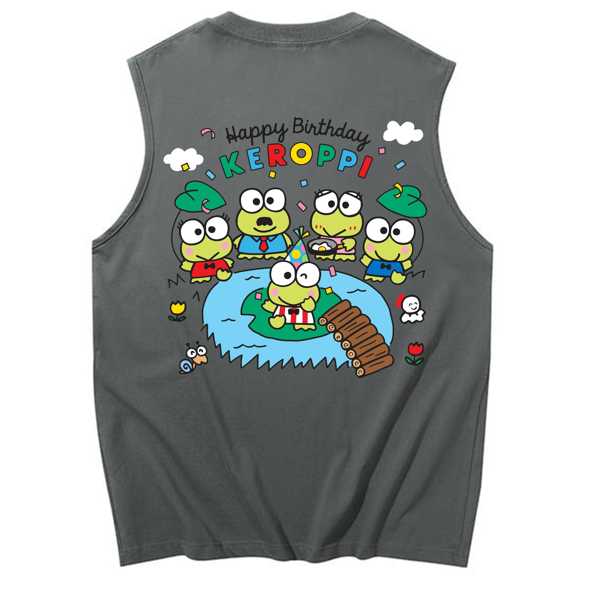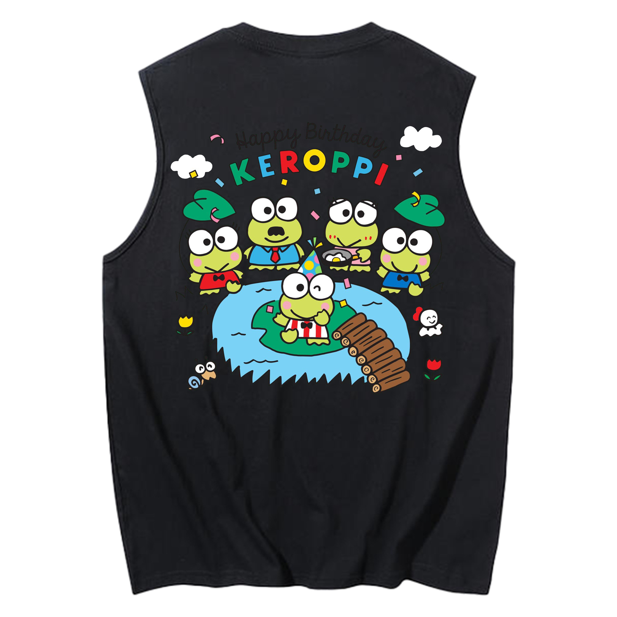 けろけろけろっぴがいっぱい♪ - コットン100% タンクトップ ・ 背面プリント ・ タイトシルエット ・ 快適 通気性 ・ スポーツ カジュアル 散歩用