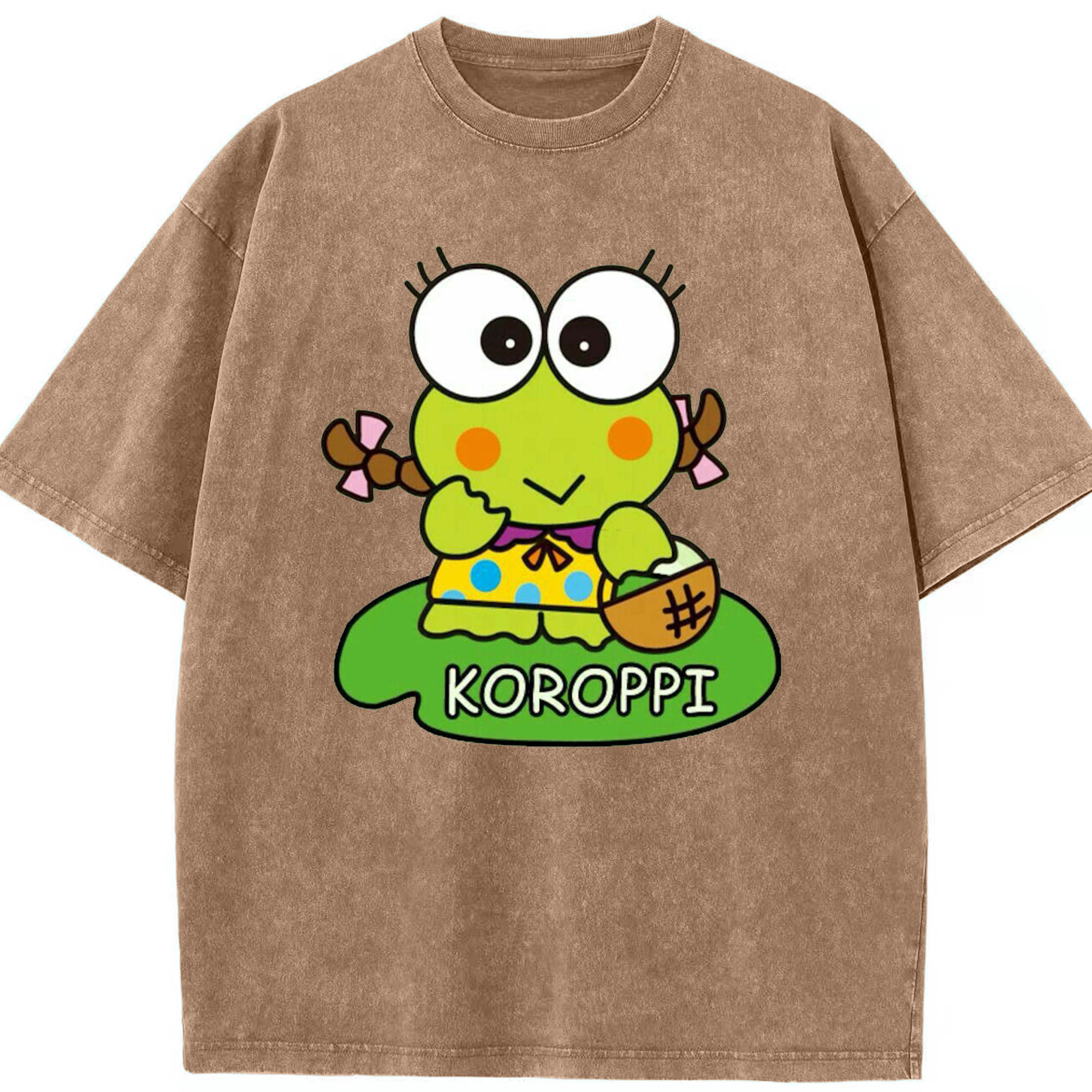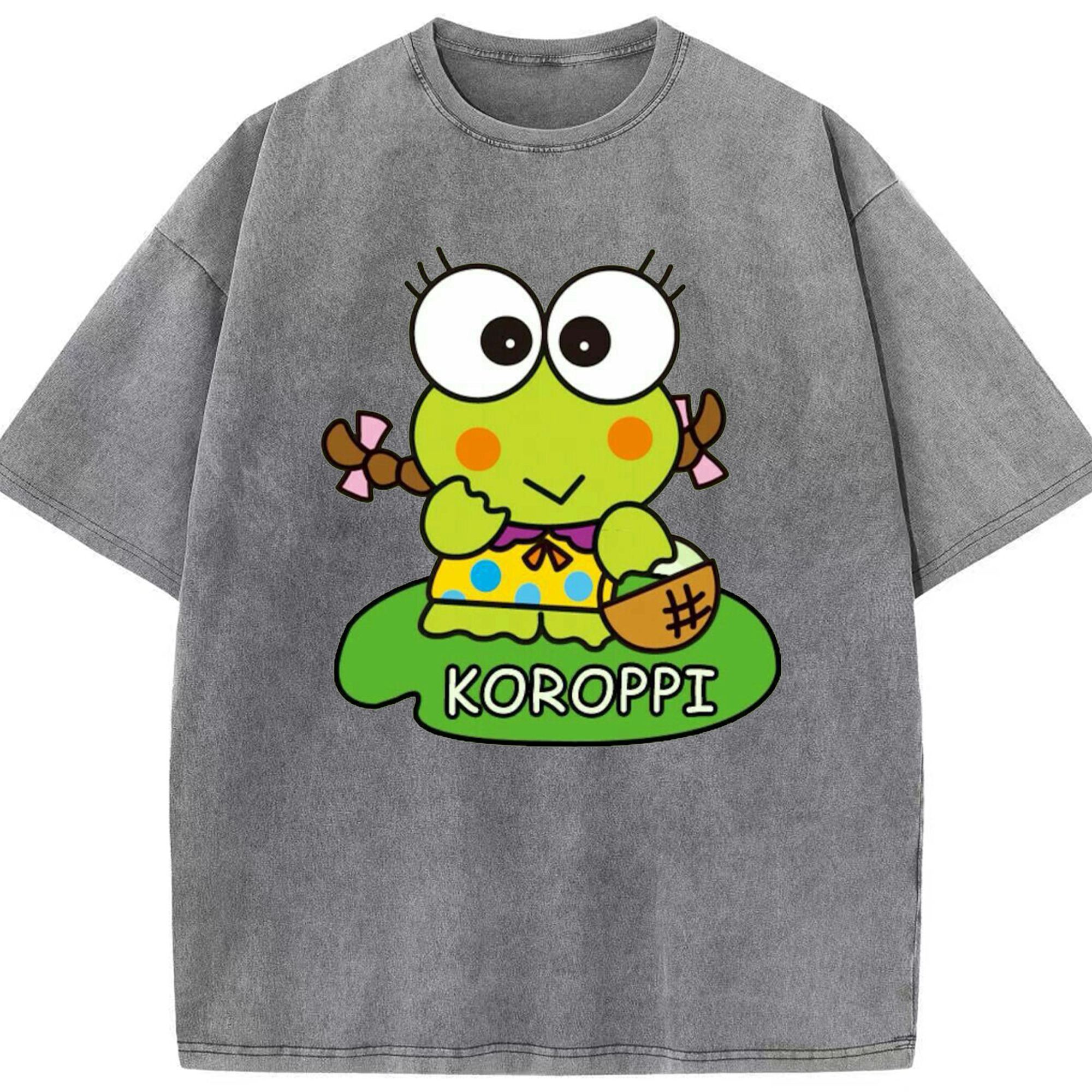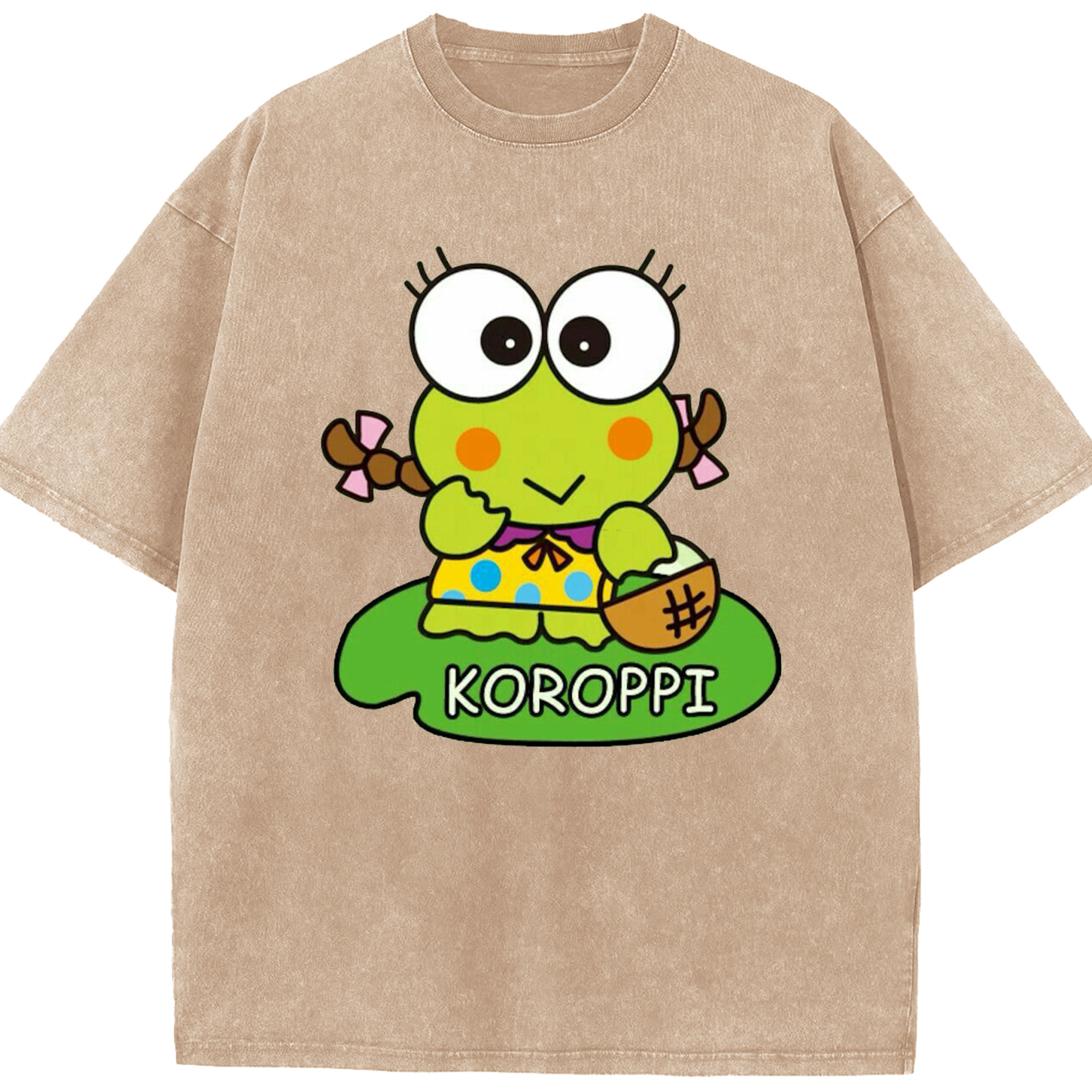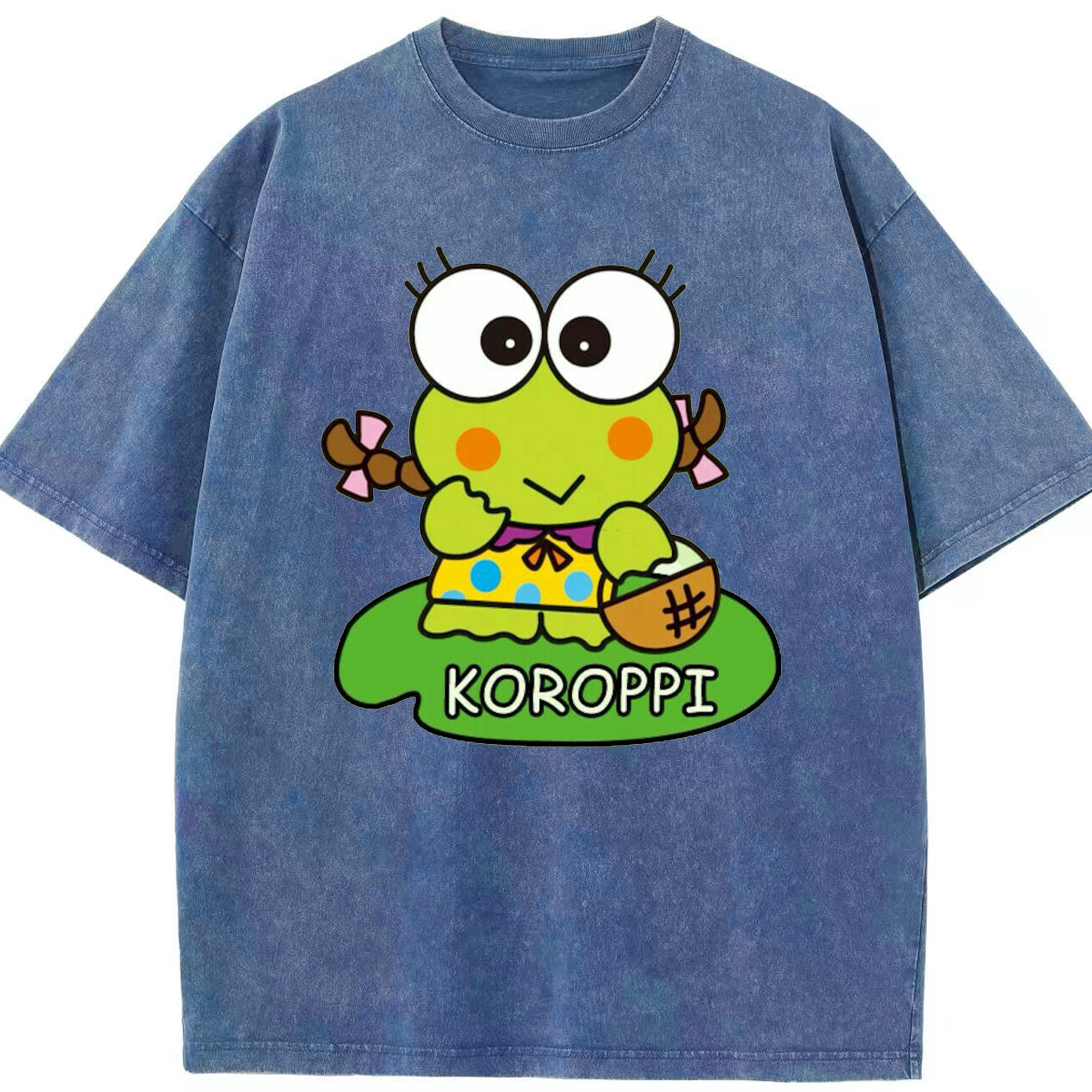 とってもキュートなけろけろけろっぴ - 綿100% ヴィンテージ風 半袖Tシャツ ・ フロントプリント ・ 柔らか肌触り ・ 通気性 快適 ・ スポーツ カジュアル 外出用