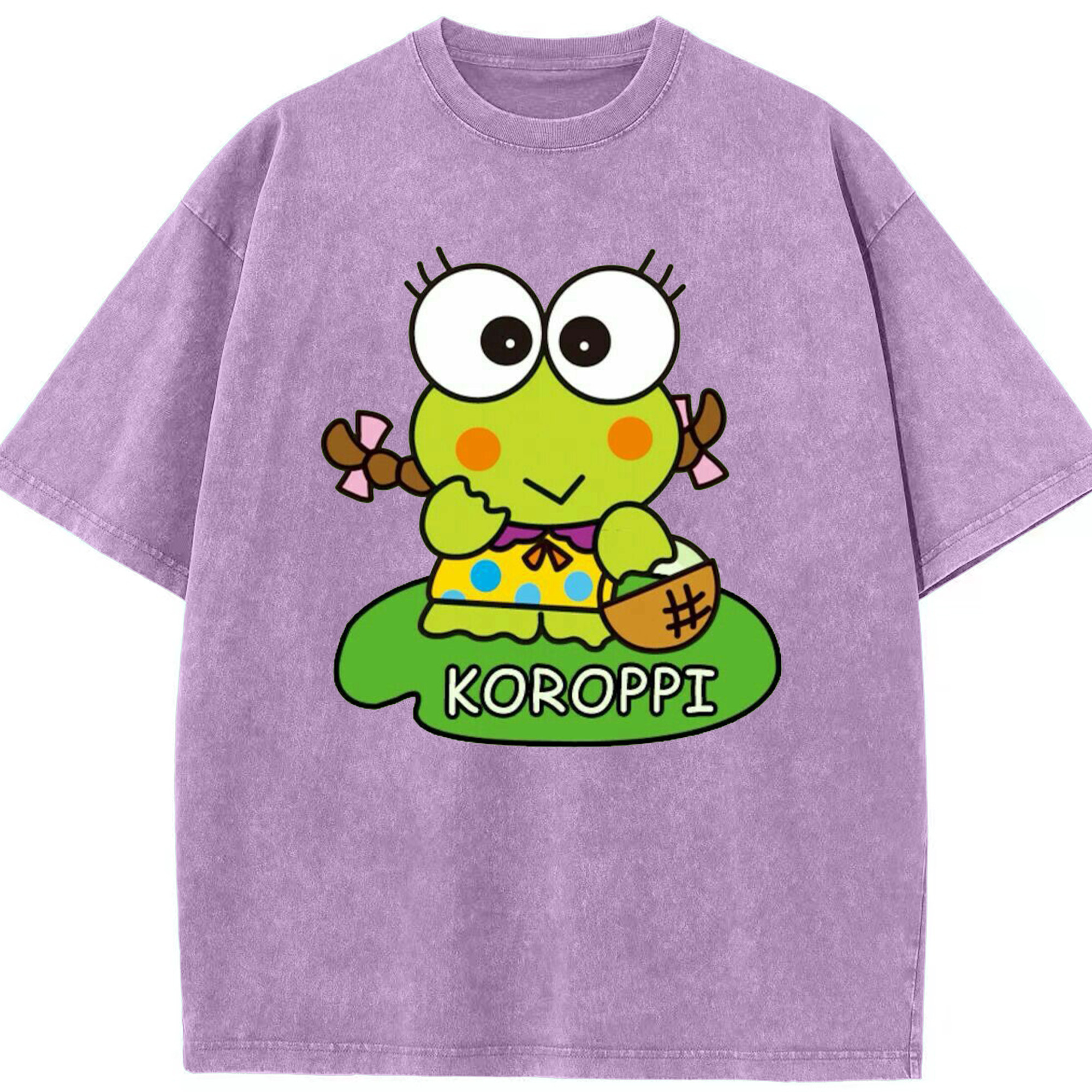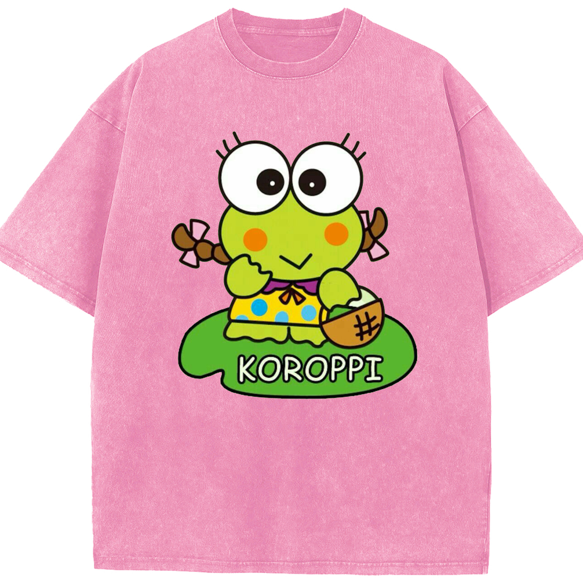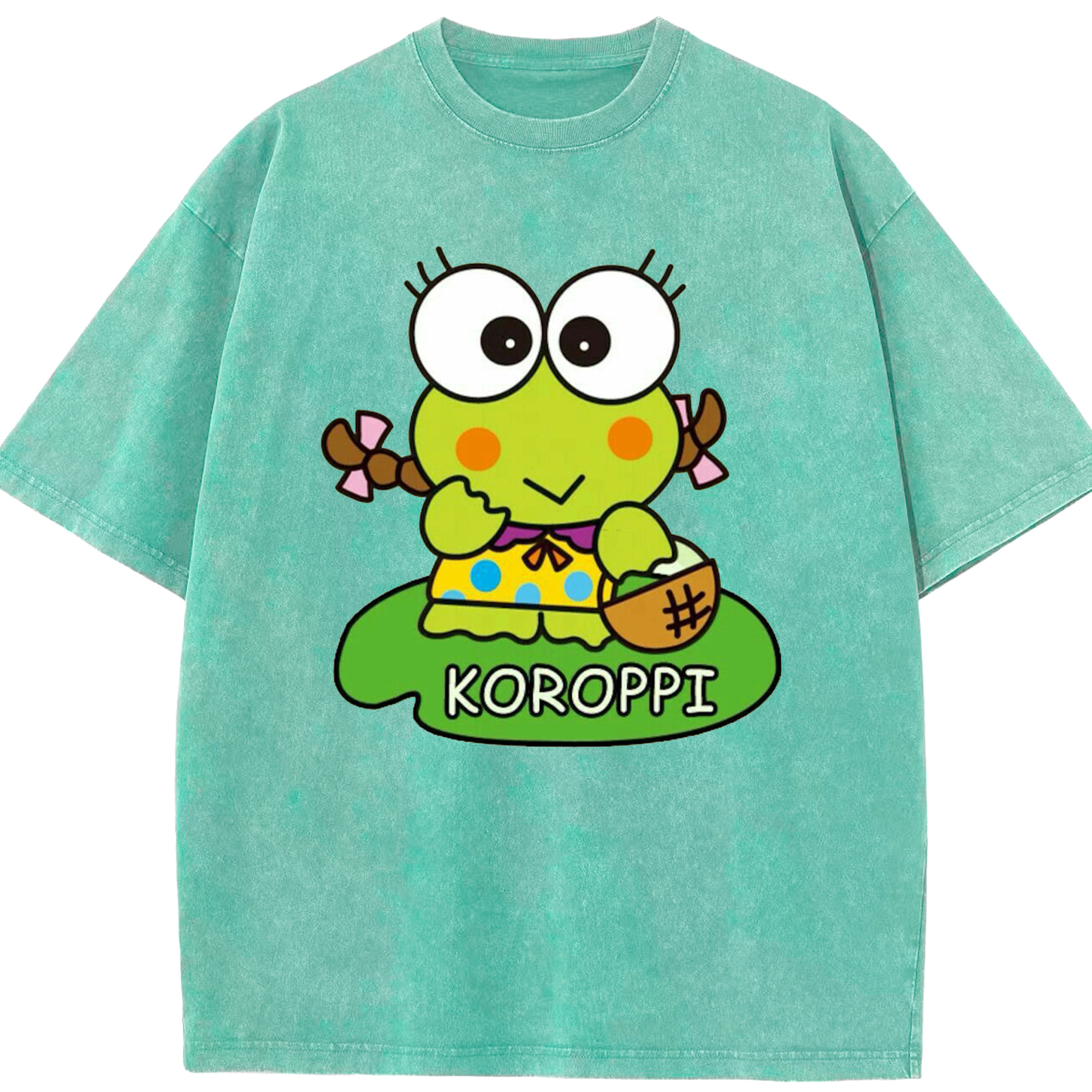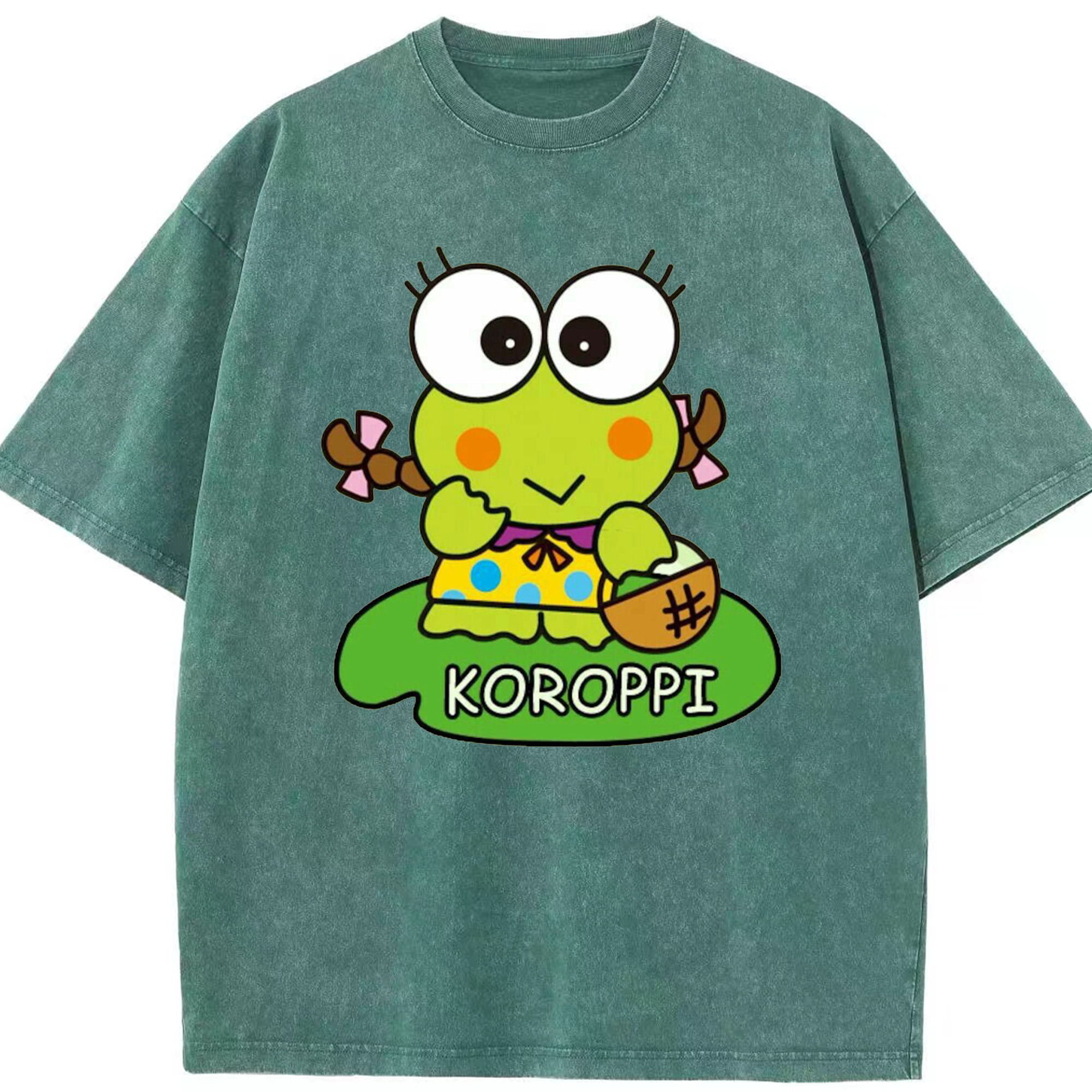 とってもキュートなけろけろけろっぴ - 綿100% ヴィンテージ風 半袖Tシャツ ・ フロントプリント ・ 柔らか肌触り ・ 通気性 快適 ・ スポーツ カジュアル 外出用