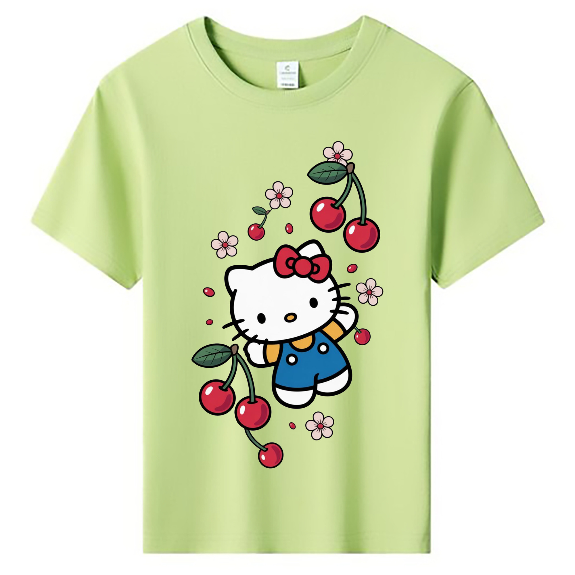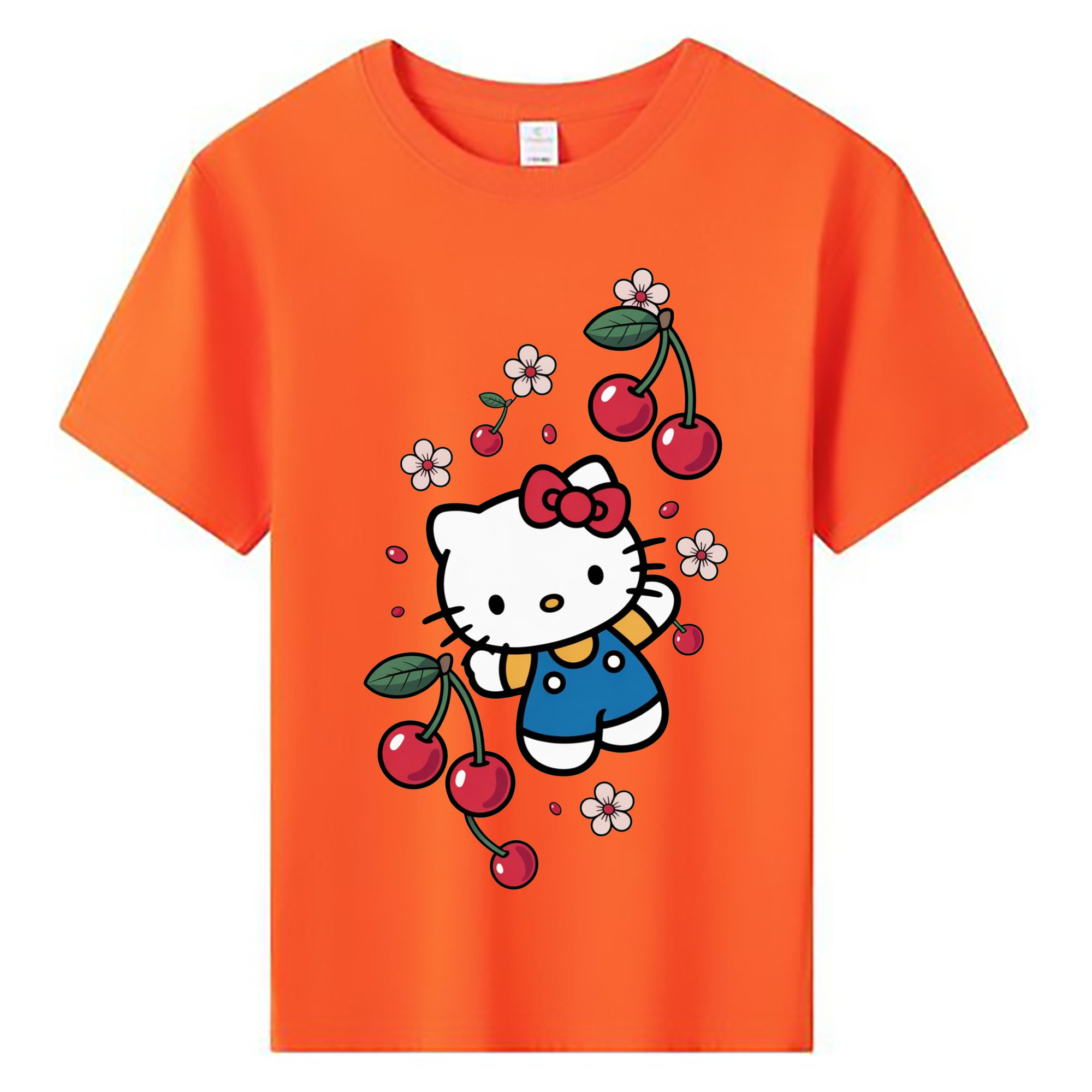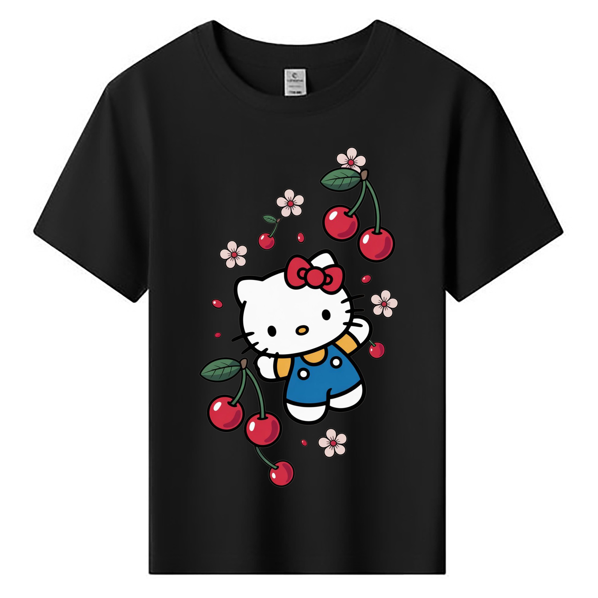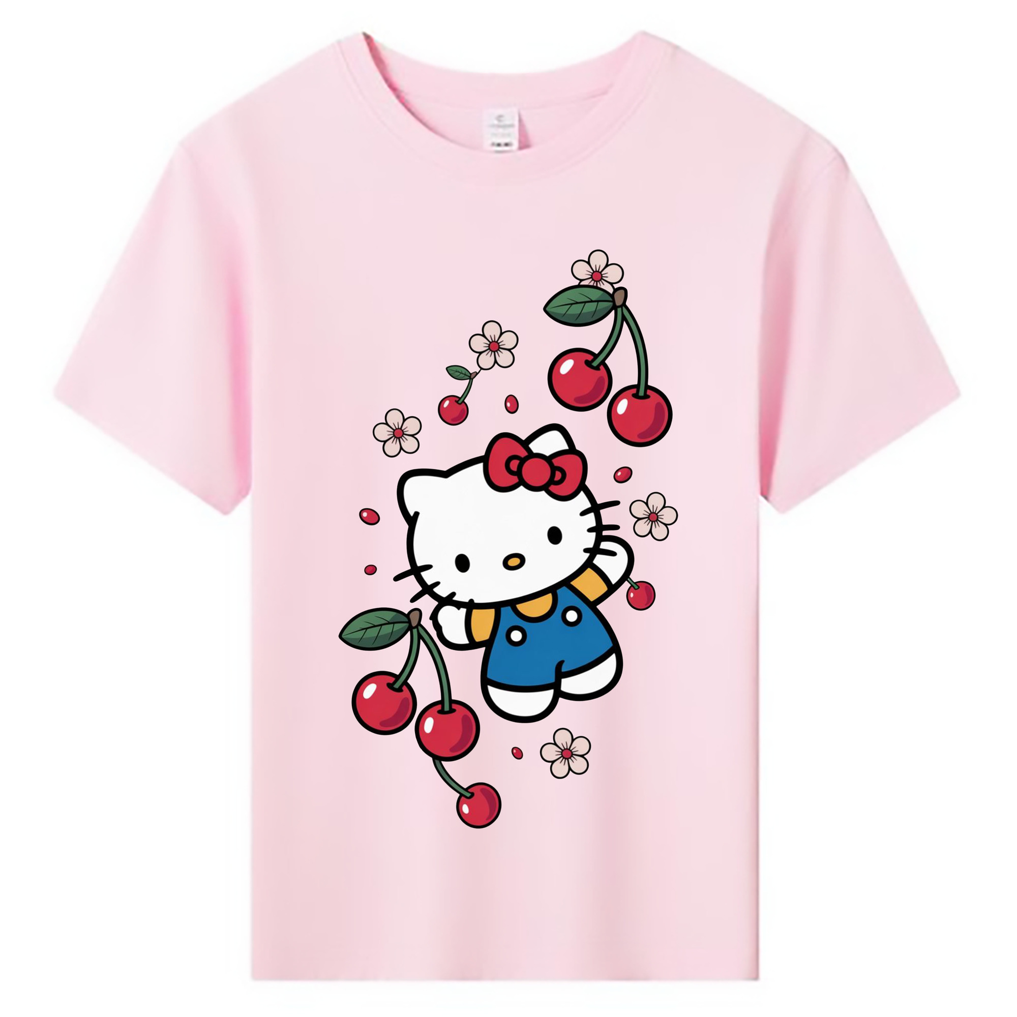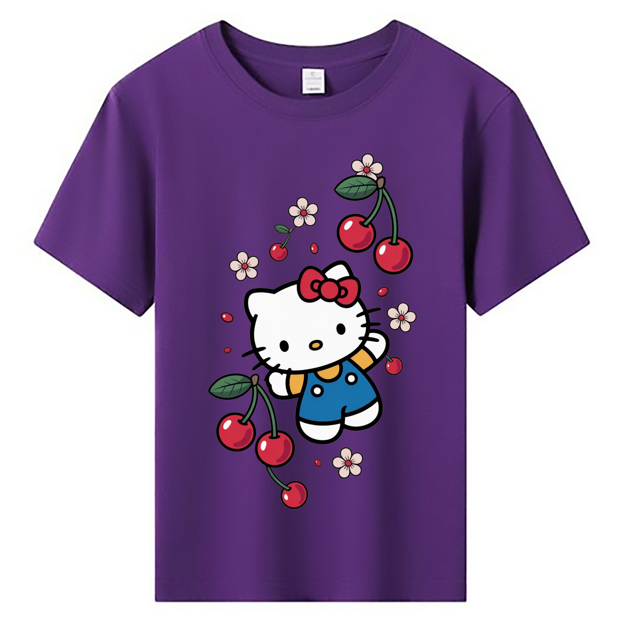 さくらんぼモチーフのハローキティ - 綿100% ヴィンテージ風 半袖Tシャツ ・ 背面プリント ・ 柔らか肌触り ・ 通気性 快適 ・ スポーツ カジュアル 外出用
