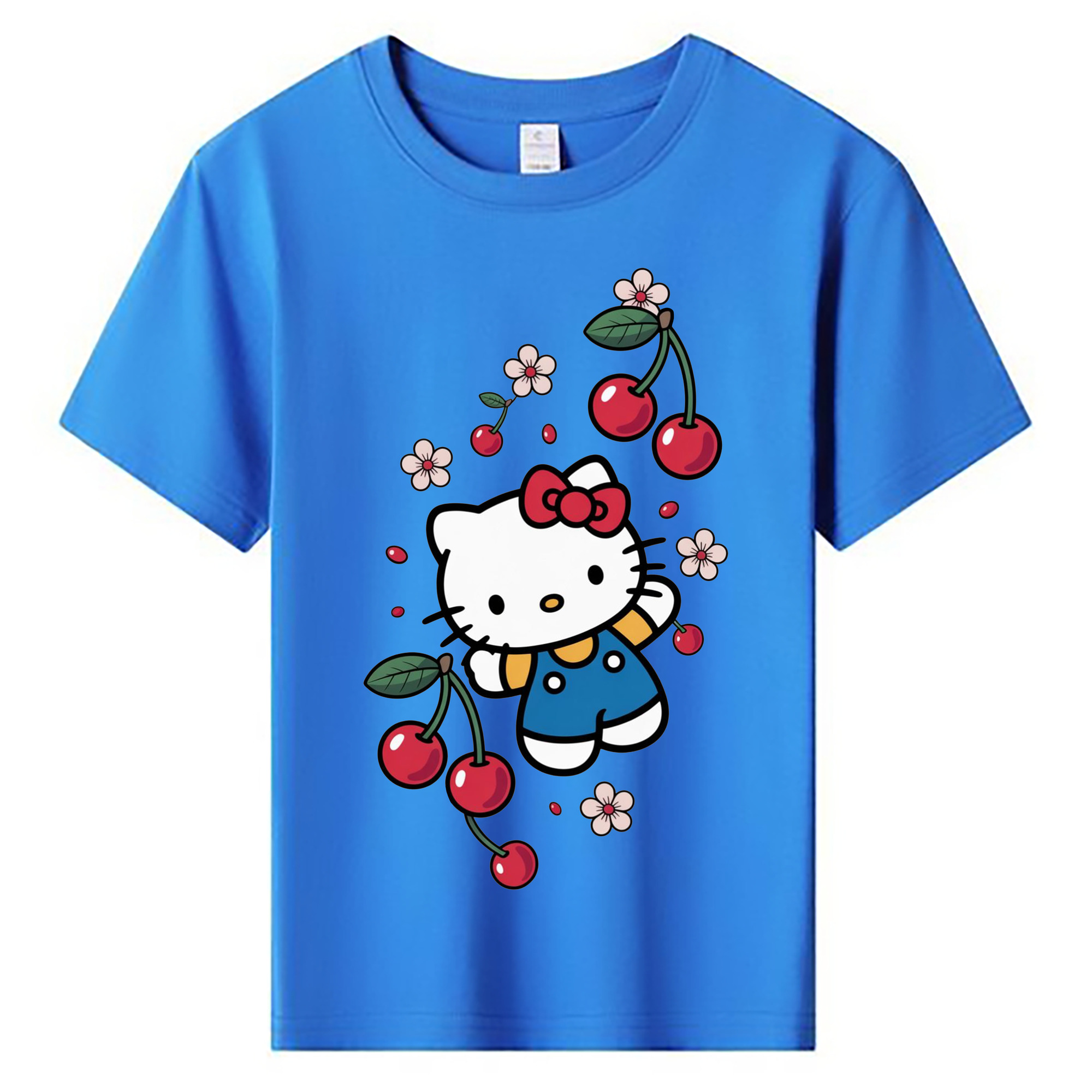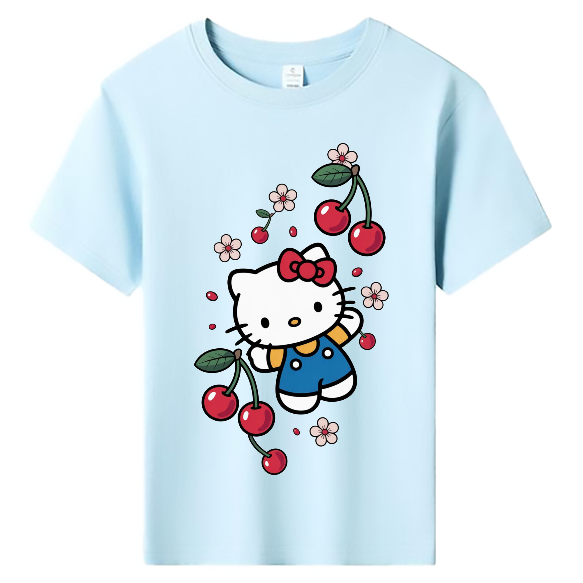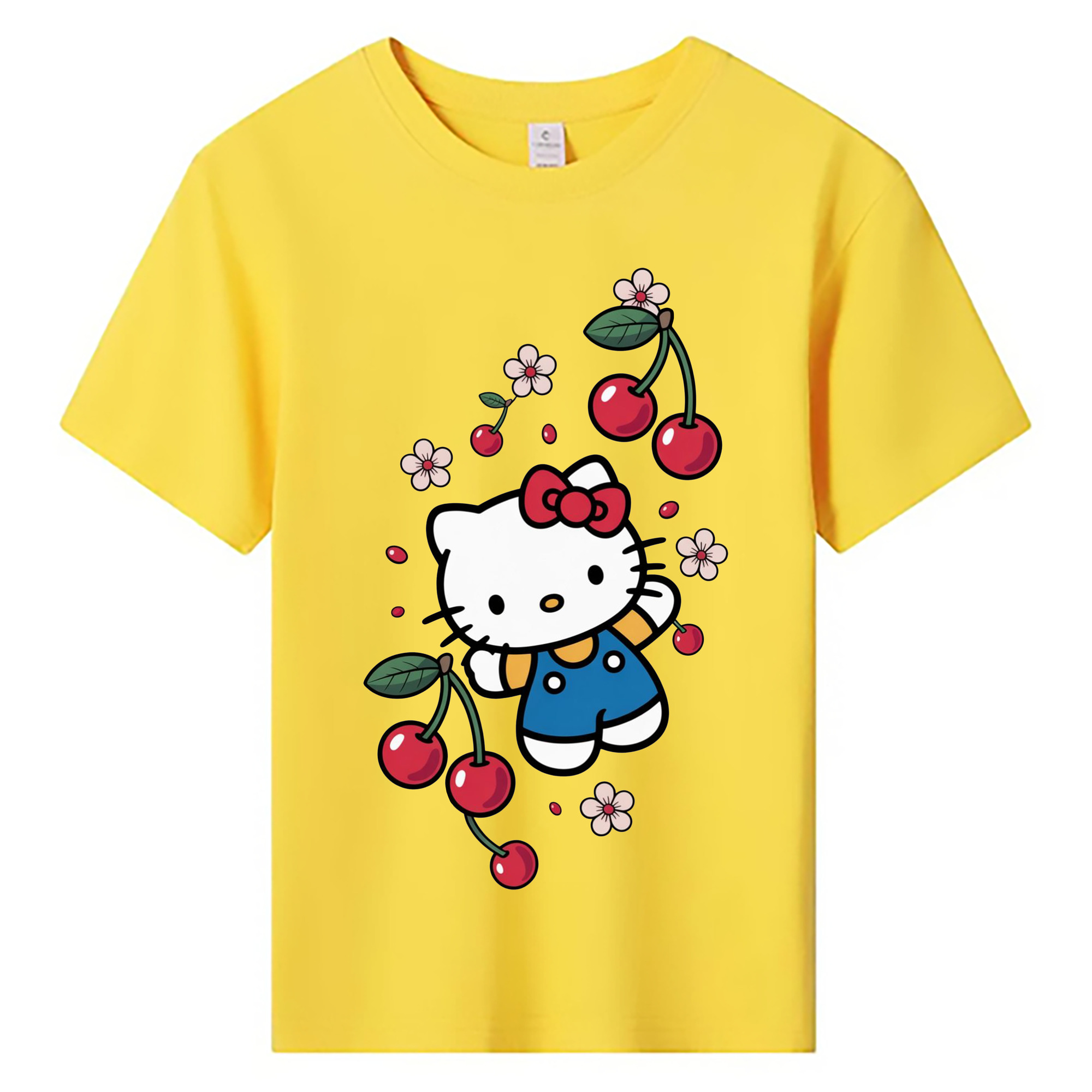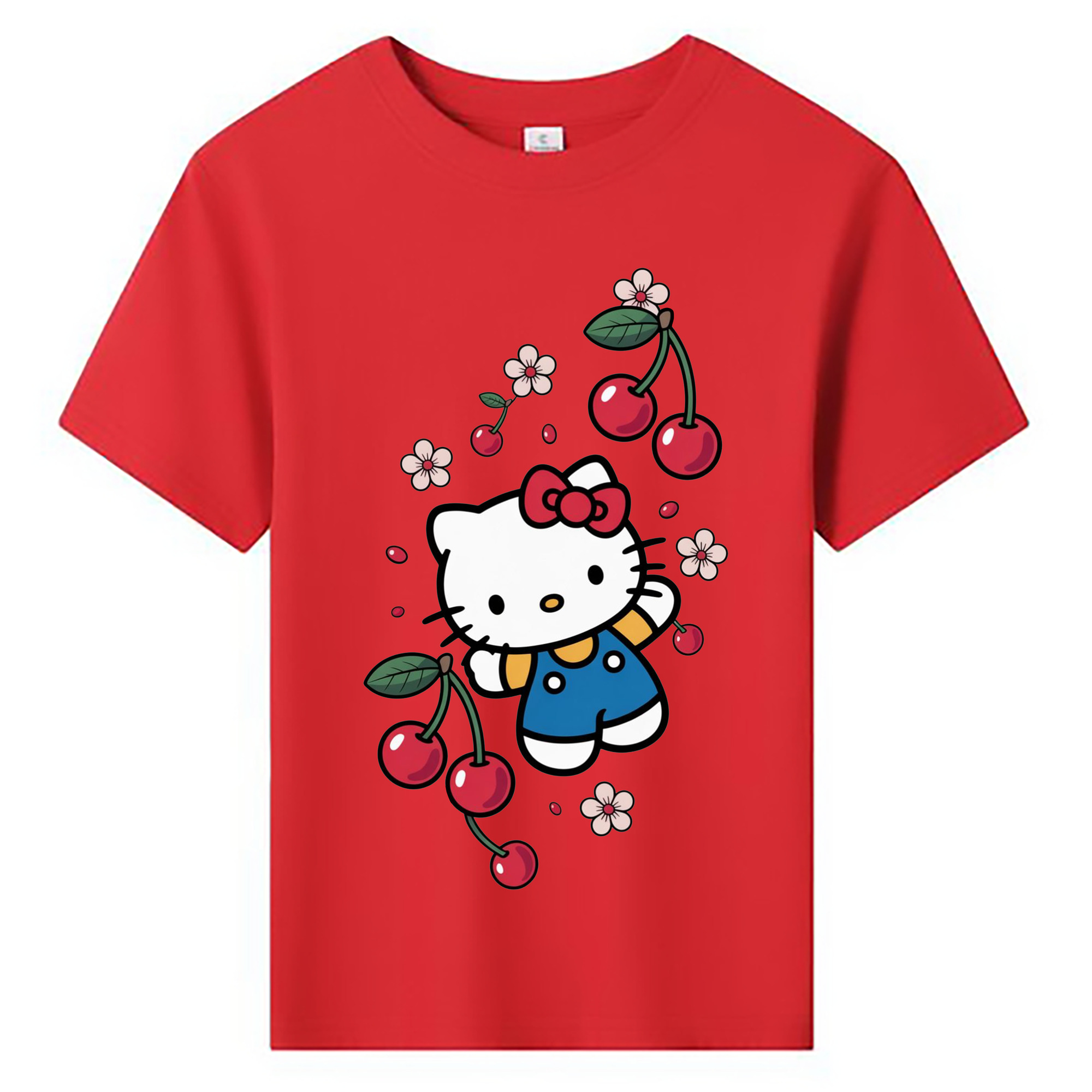 さくらんぼモチーフのハローキティ - 綿100% ヴィンテージ風 半袖Tシャツ ・ フロントプリント ・ 柔らか肌触り ・ 通気性 快適 ・ スポーツ カジュアル 外出用
