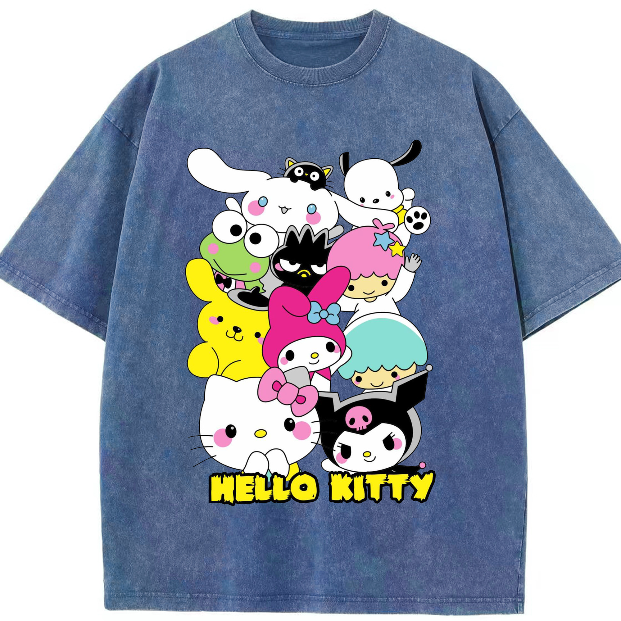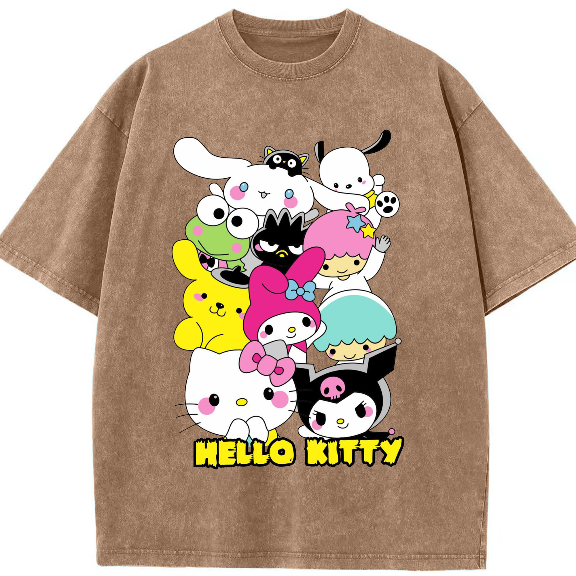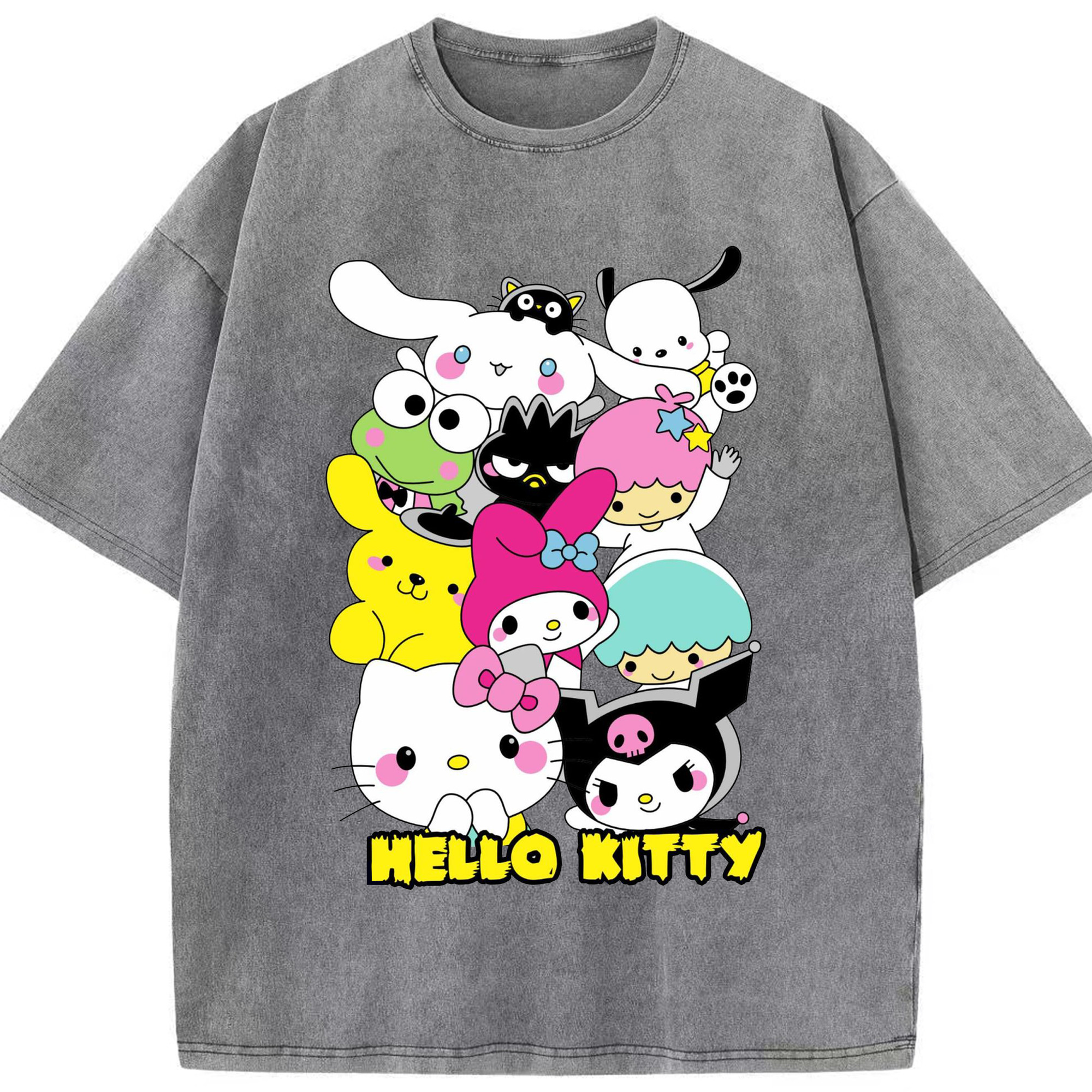 サンリオファミリー 2025年新作 - 綿100% ヴィンテージ風 半袖Tシャツ ・ フロントプリント ・ 柔らか肌触り ・ 通気性 快適 ・ スポーツ カジュアル 外出用