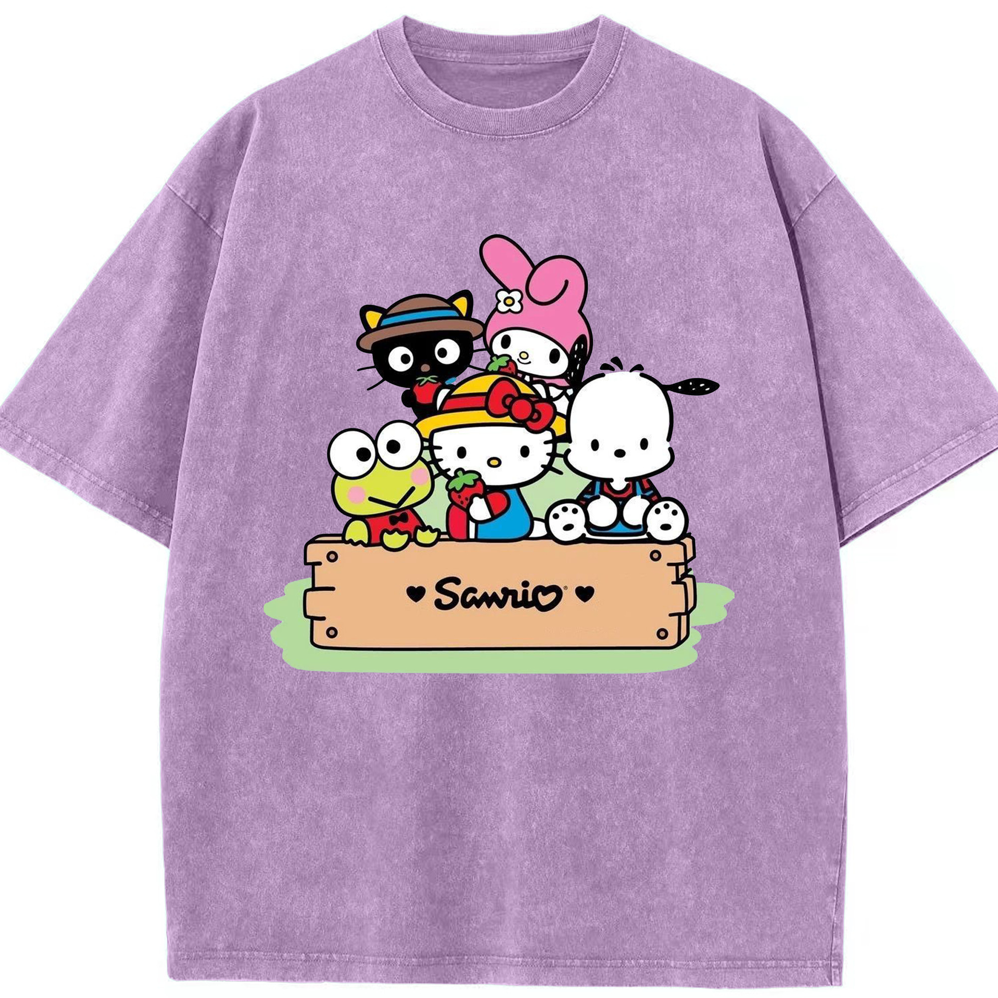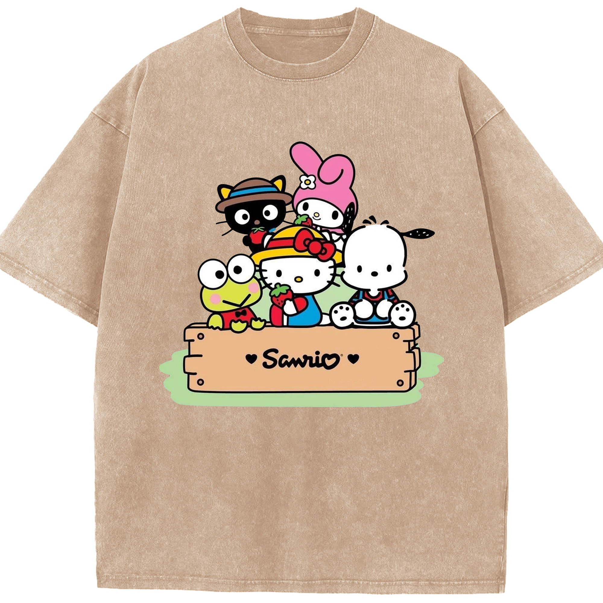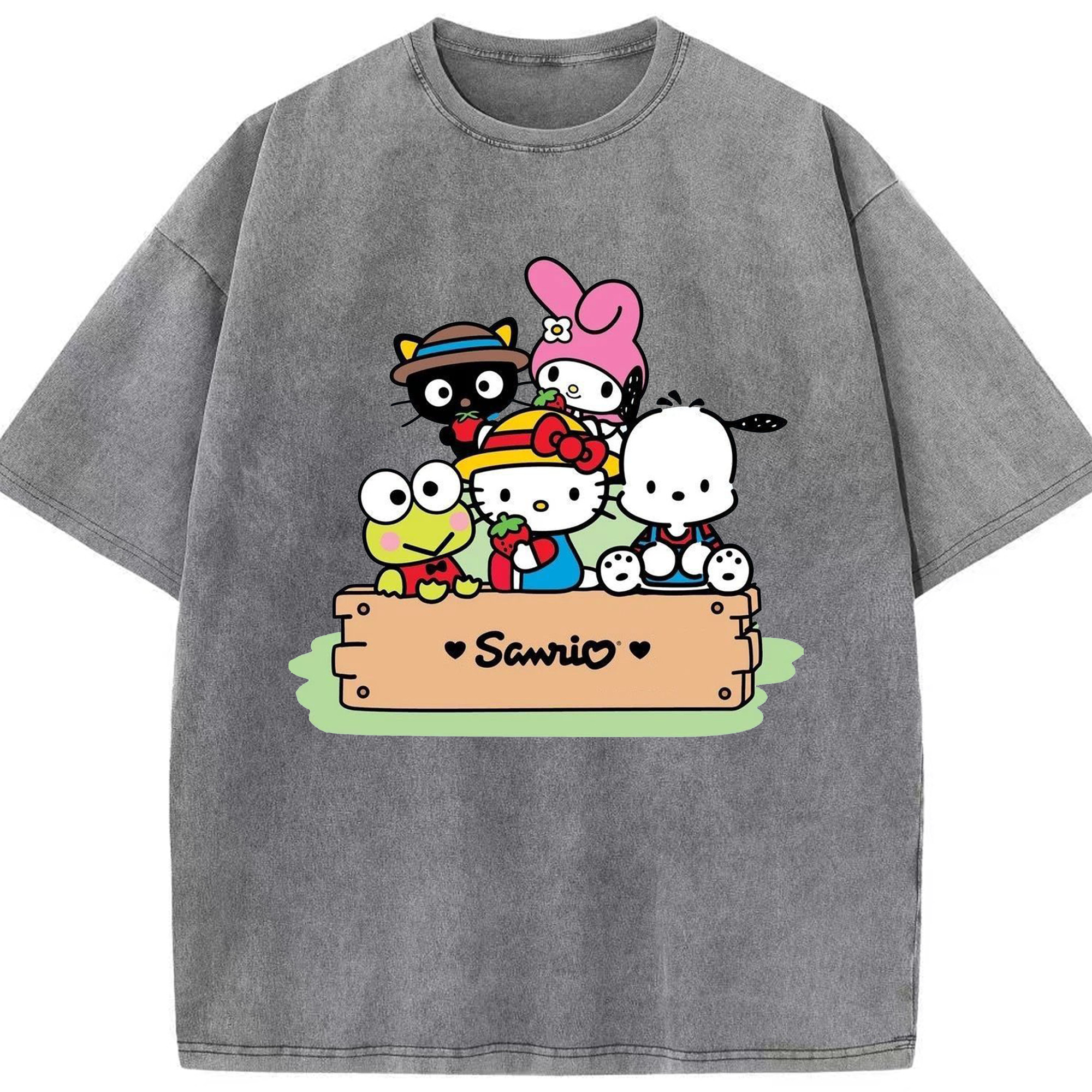 かわいい系サンリオ - 綿100% ヴィンテージ風 半袖Tシャツ ・ フロントプリント ・ 柔らか肌触り ・ 通気性 快適 ・ スポーツ カジュアル 外出用