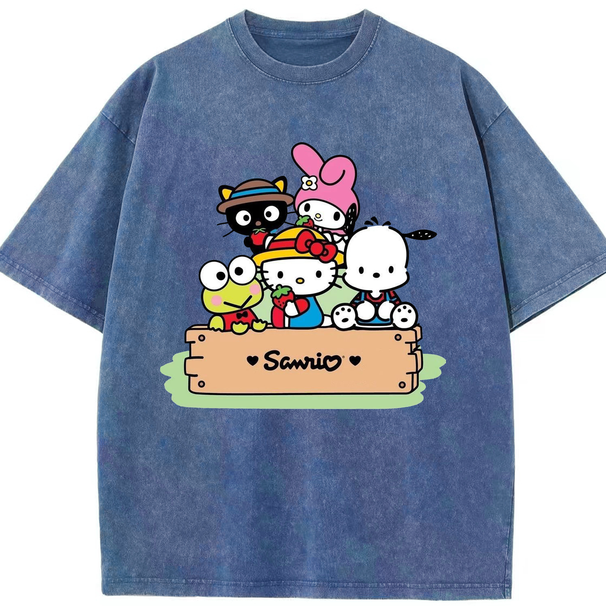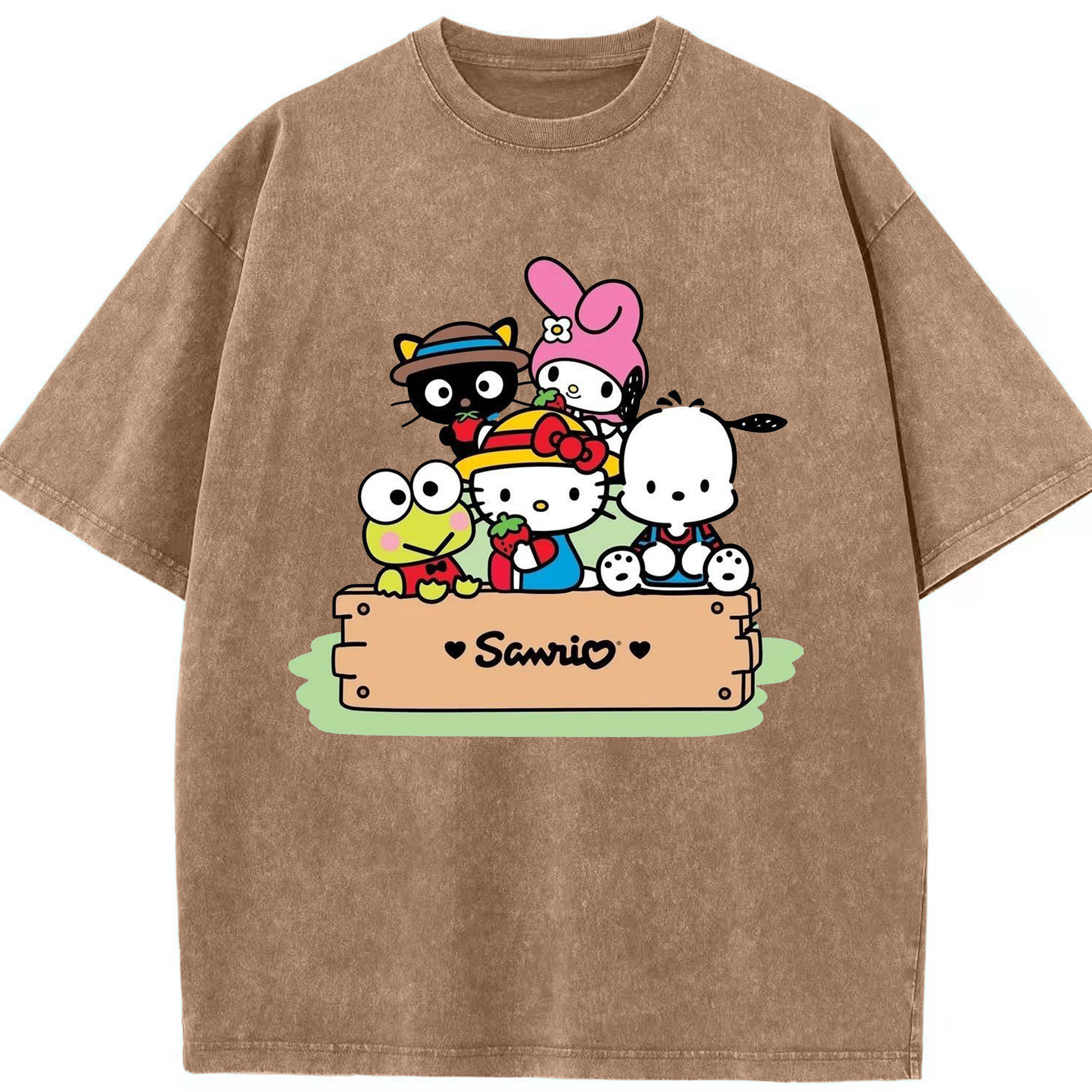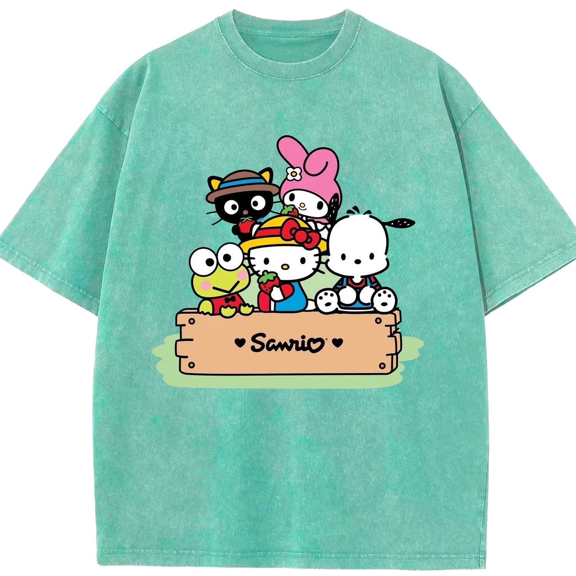 かわいい系サンリオ - 綿100% ヴィンテージ風 半袖Tシャツ ・ フロントプリント ・ 柔らか肌触り ・ 通気性 快適 ・ スポーツ カジュアル 外出用