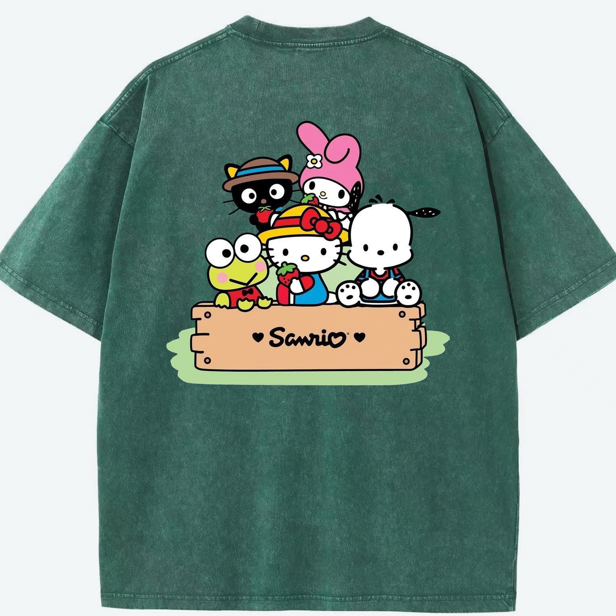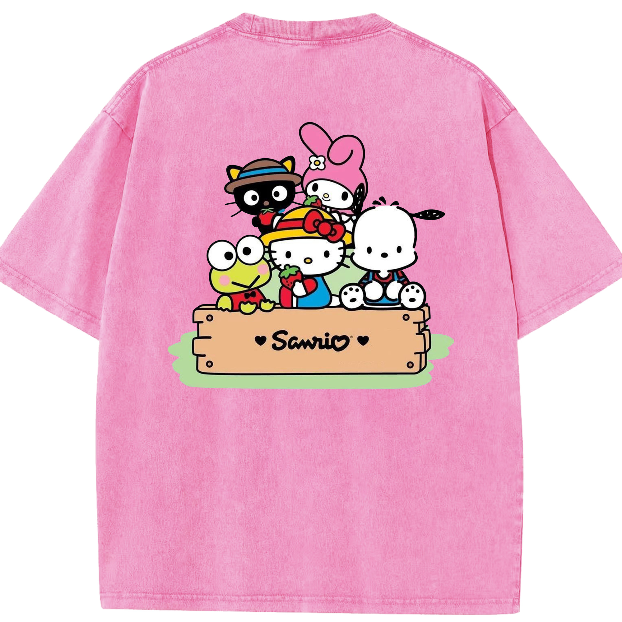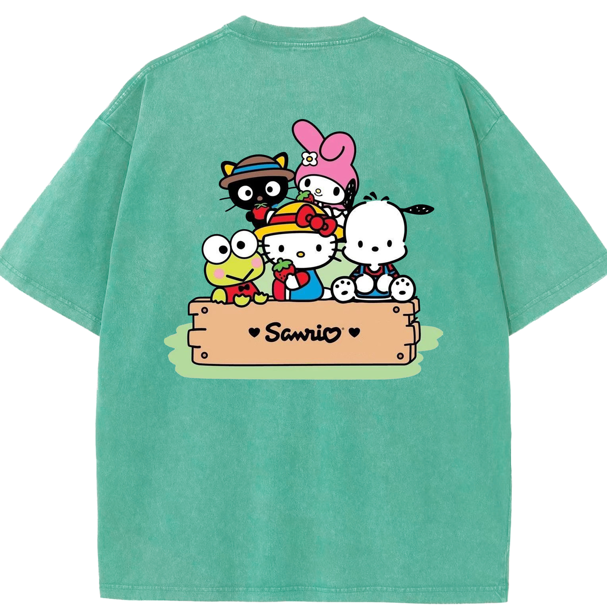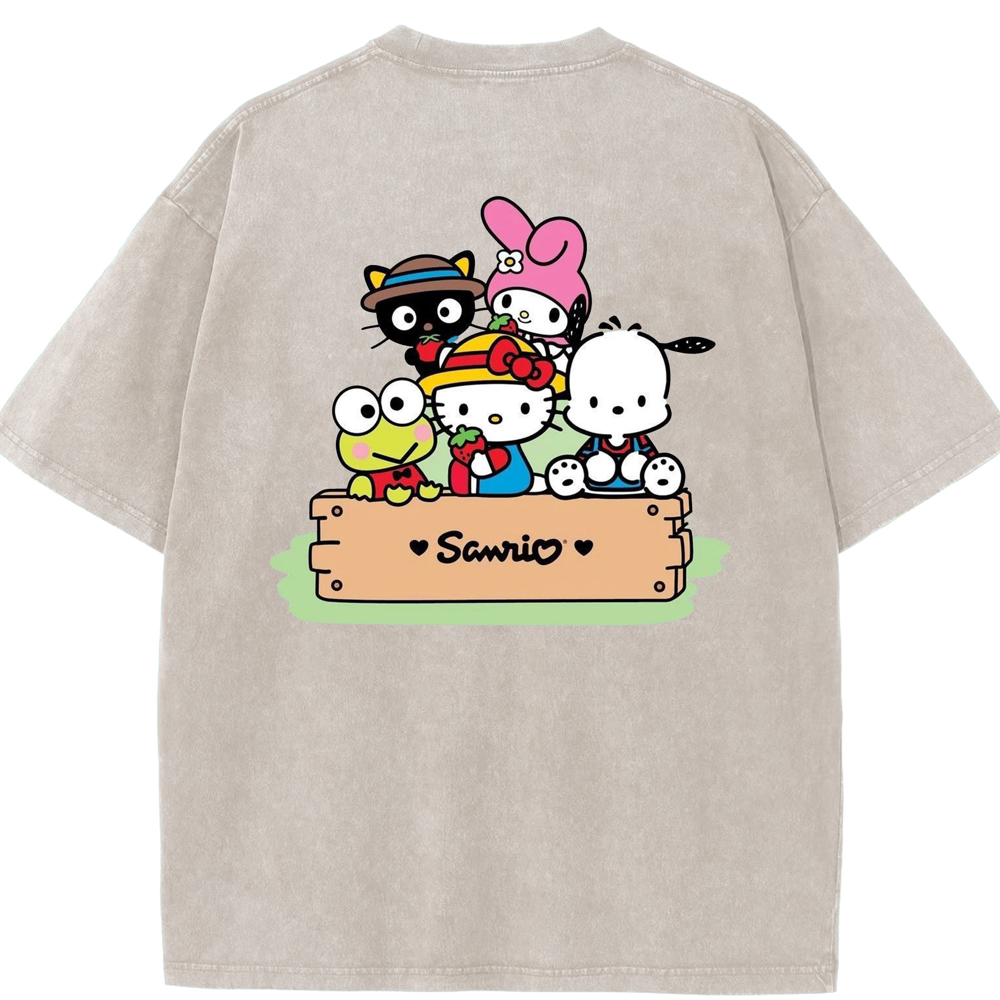 サンリオ - 綿100% ヴィンテージ風 半袖Tシャツ ・ 背面プリント ・ 柔らか肌触り ・ 通気性 快適 ・ スポーツ カジュアル 外出用