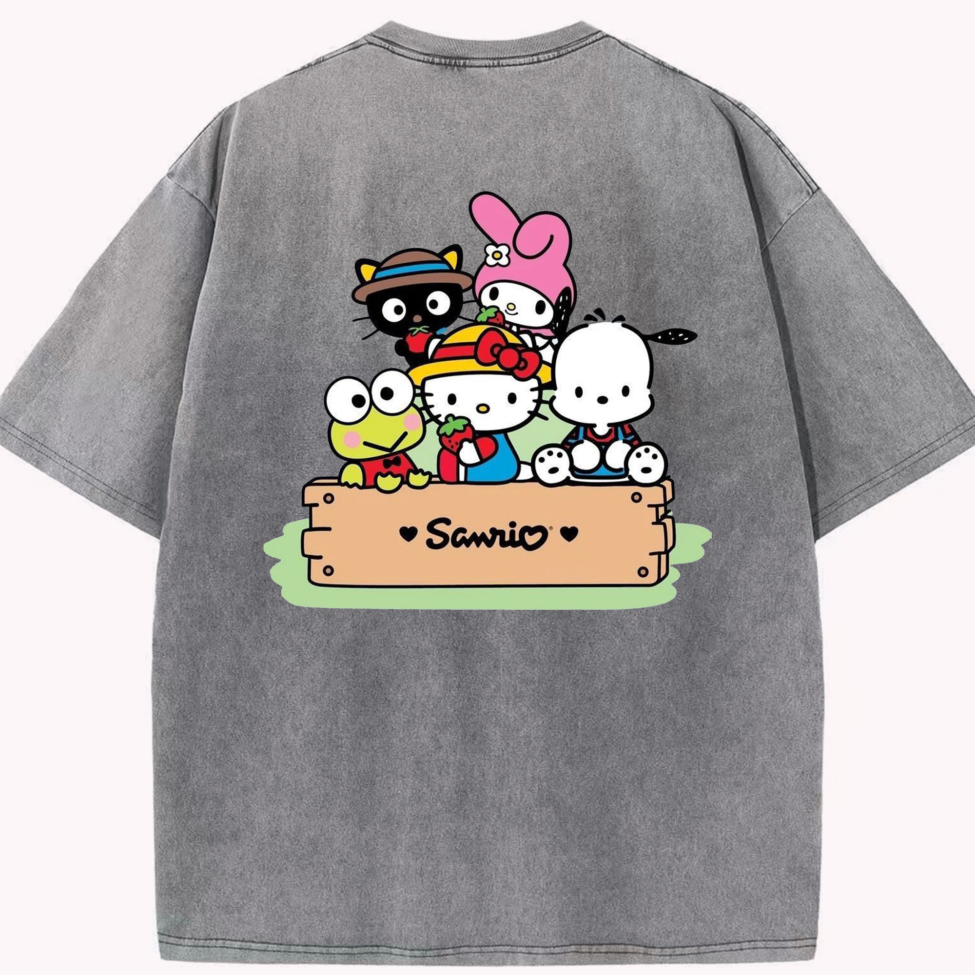 毎日着たい♪カジュアルサンリオ - 綿100% ヴィンテージ風 半袖Tシャツ ・ 背面プリント ・ 柔らか肌触り ・ 通気性 快適 ・ スポーツ カジュアル 外出用
