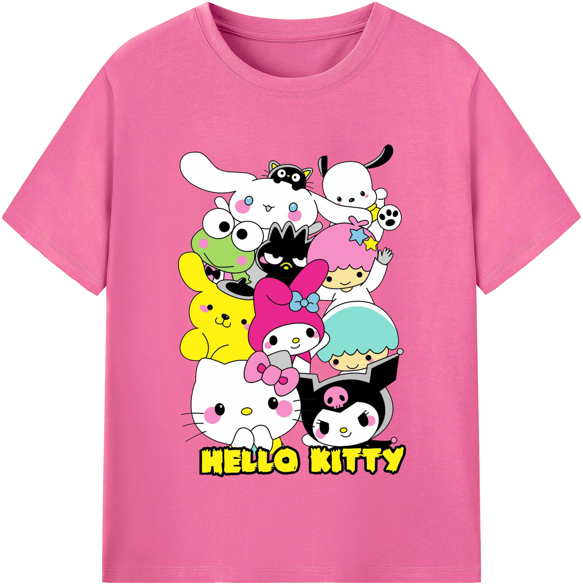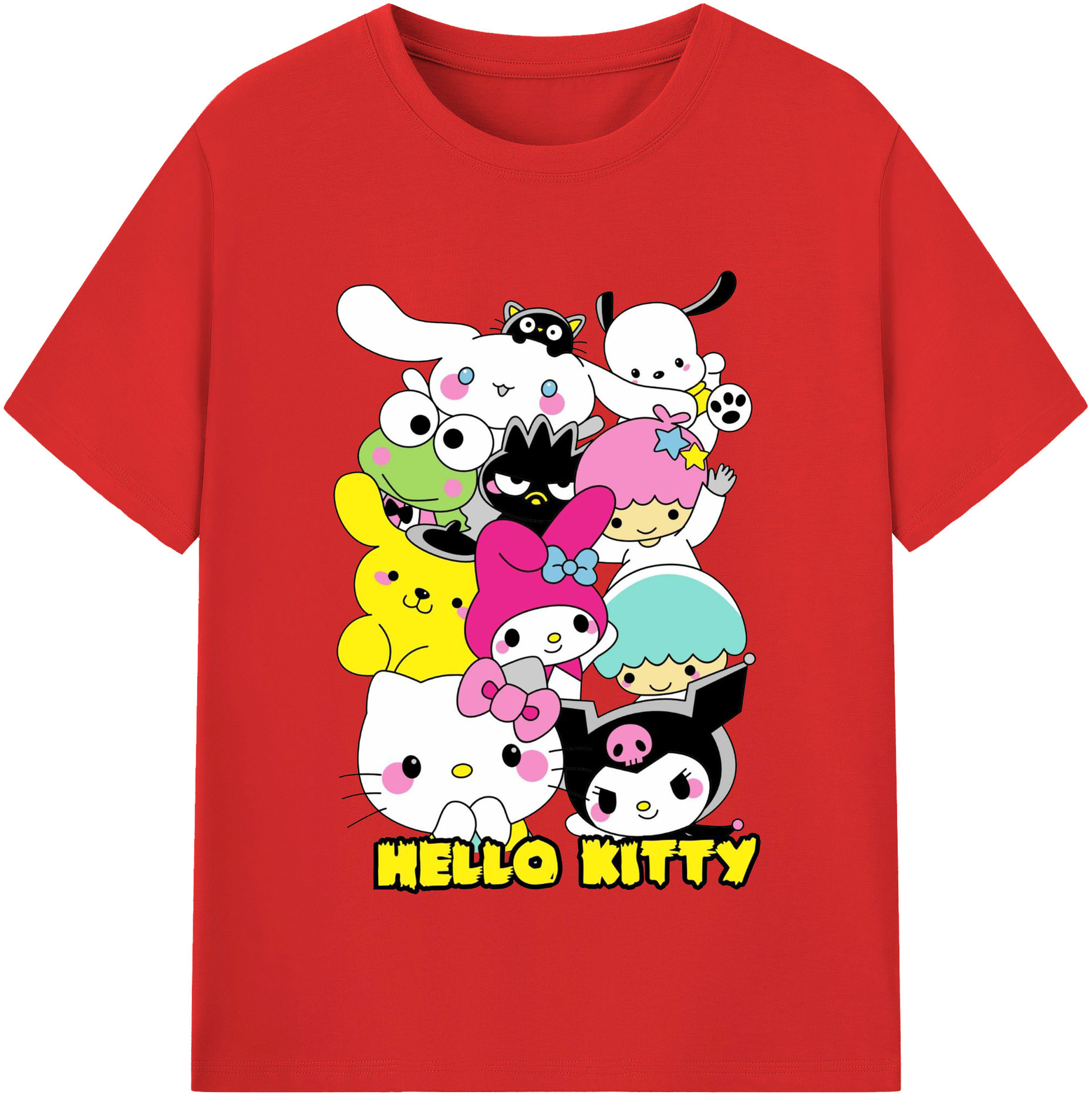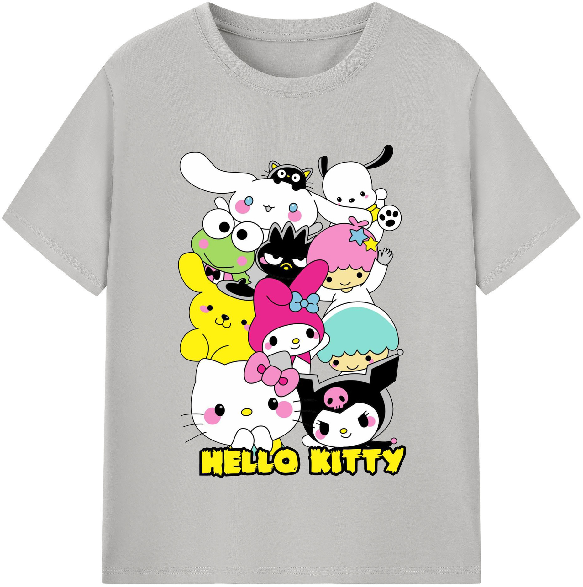 とってもかわいいサンリオファミリー - レディースカジュアルプリントTシャツ ・ 綿100% ・ クルーネック ・ フロントプリント ・ 柔らかく快適 ・ フィットネス カジュアル 旅行用