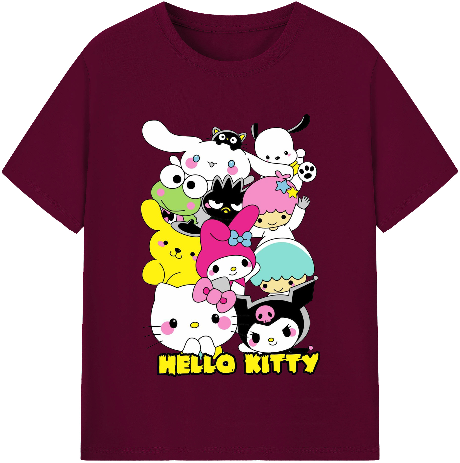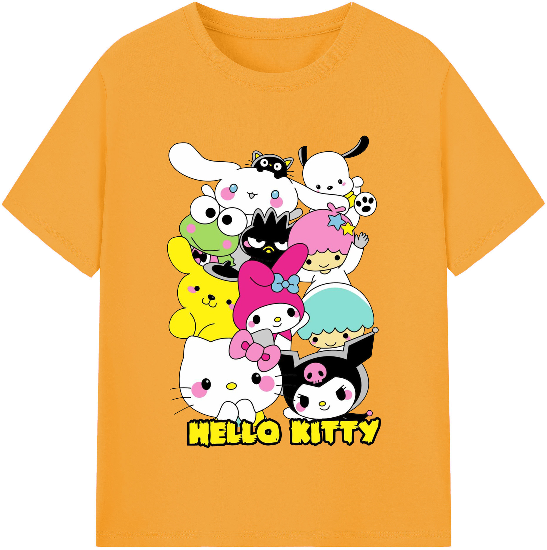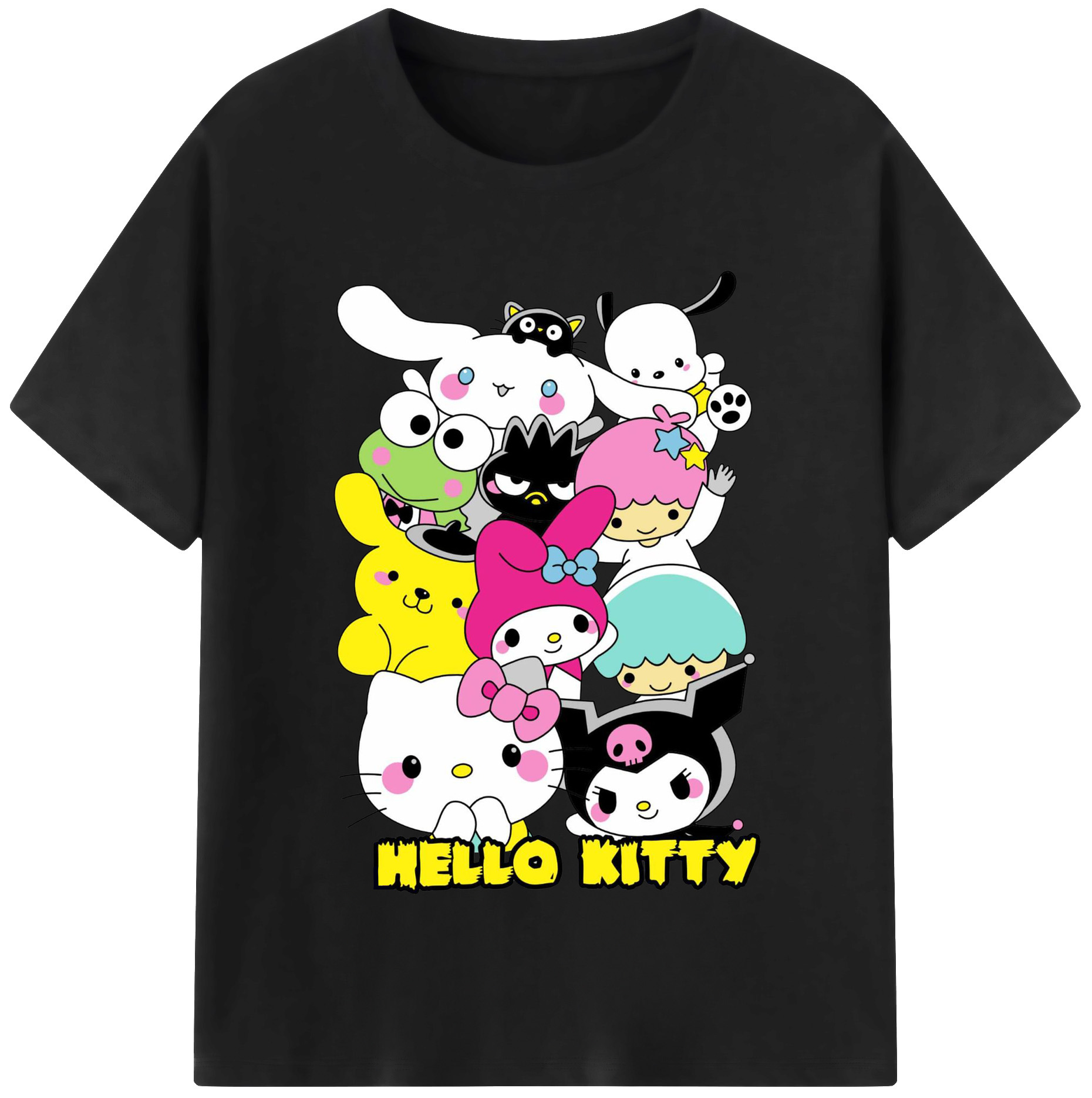 とってもかわいいサンリオファミリー - レディースカジュアルプリントTシャツ ・ 綿100% ・ クルーネック ・ フロントプリント ・ 柔らかく快適 ・ フィットネス カジュアル 旅行用