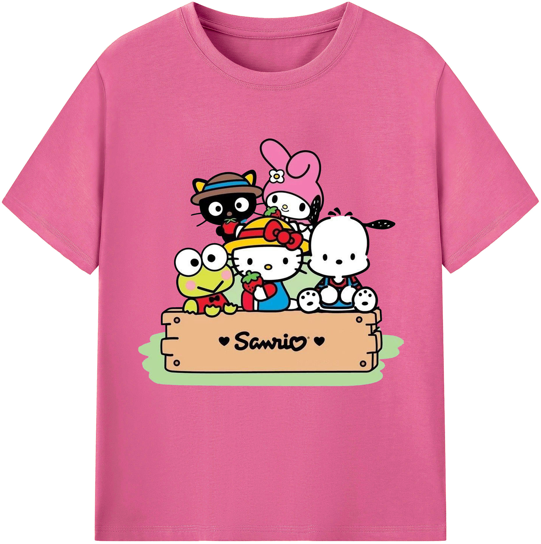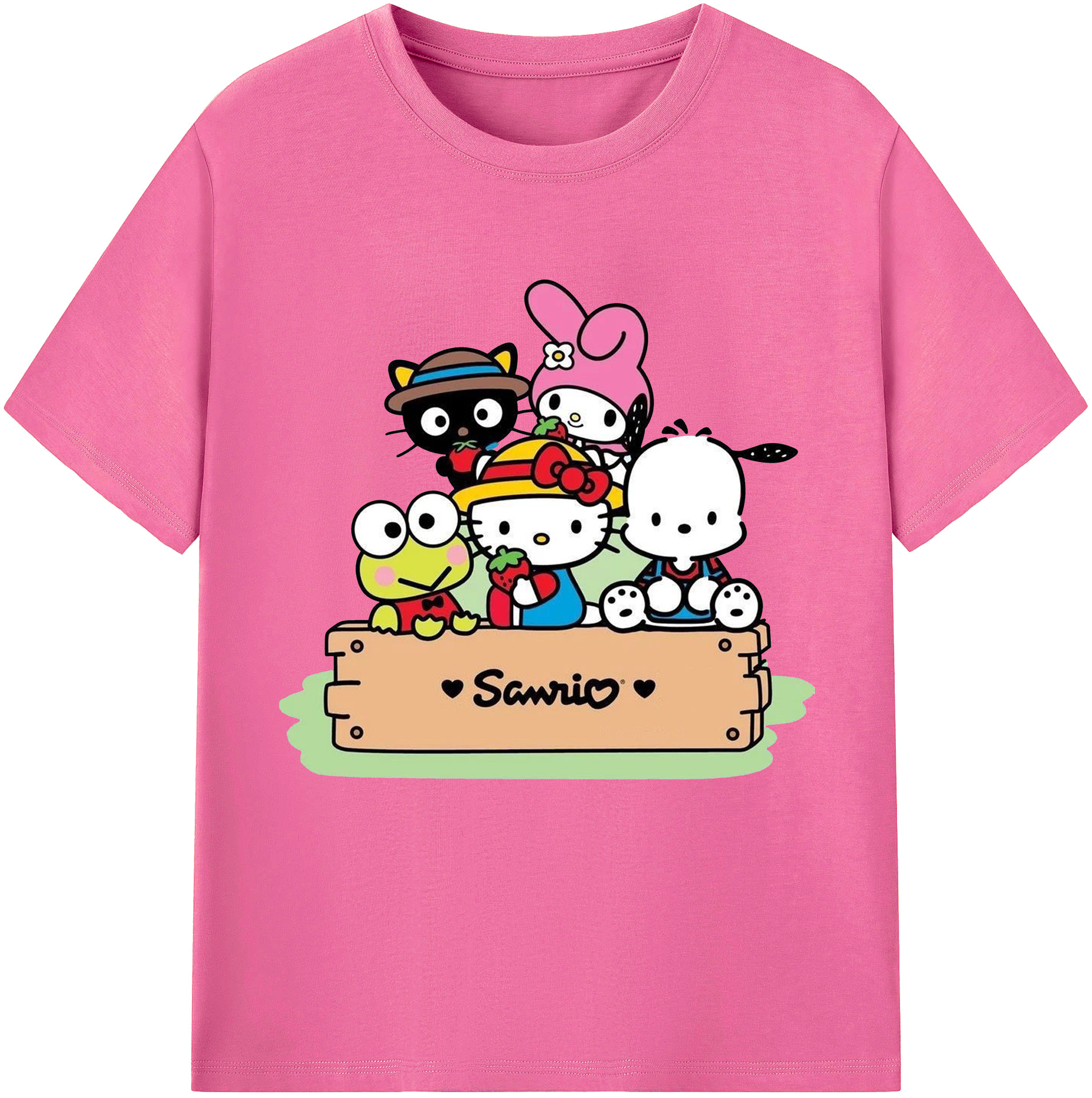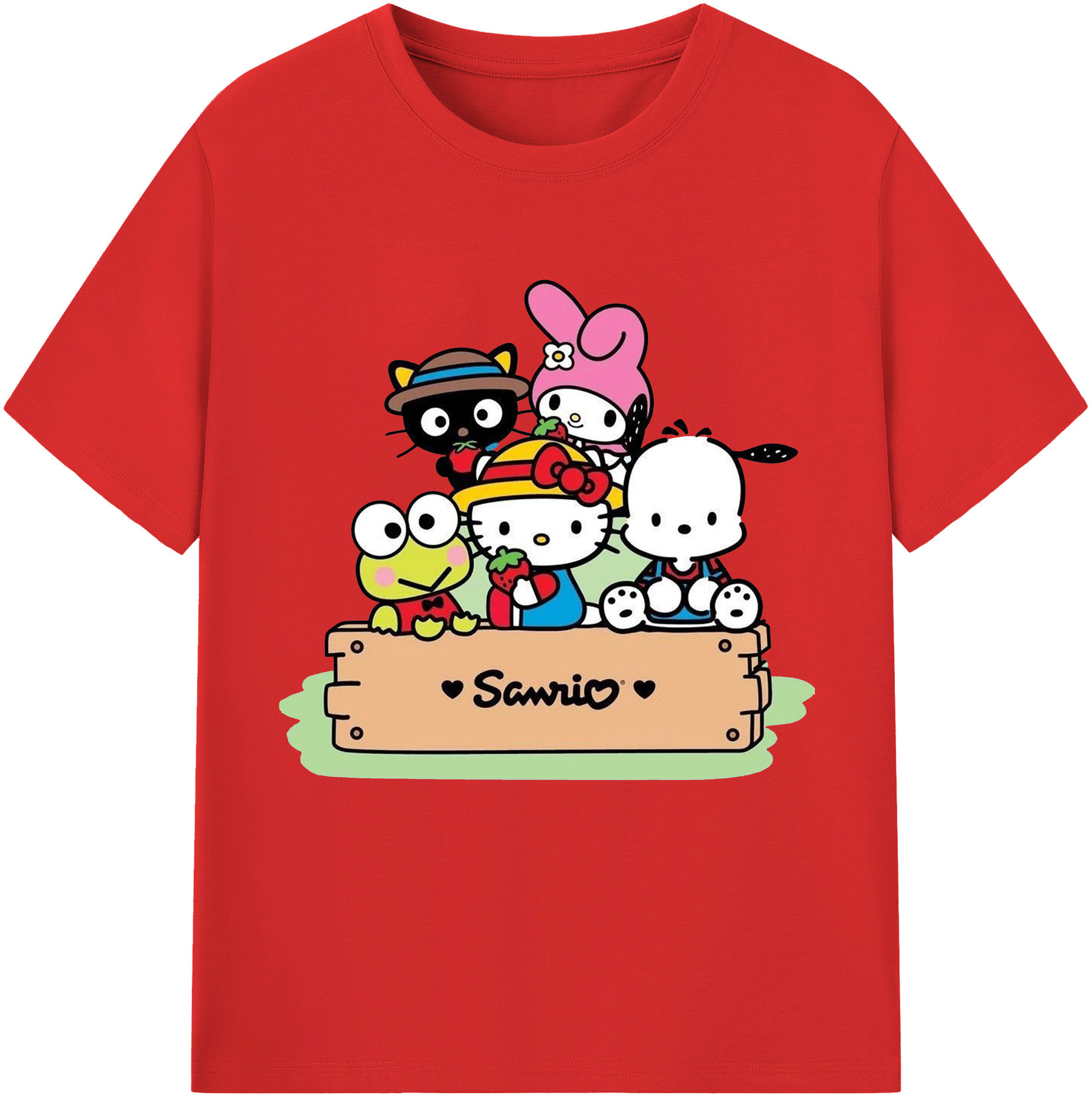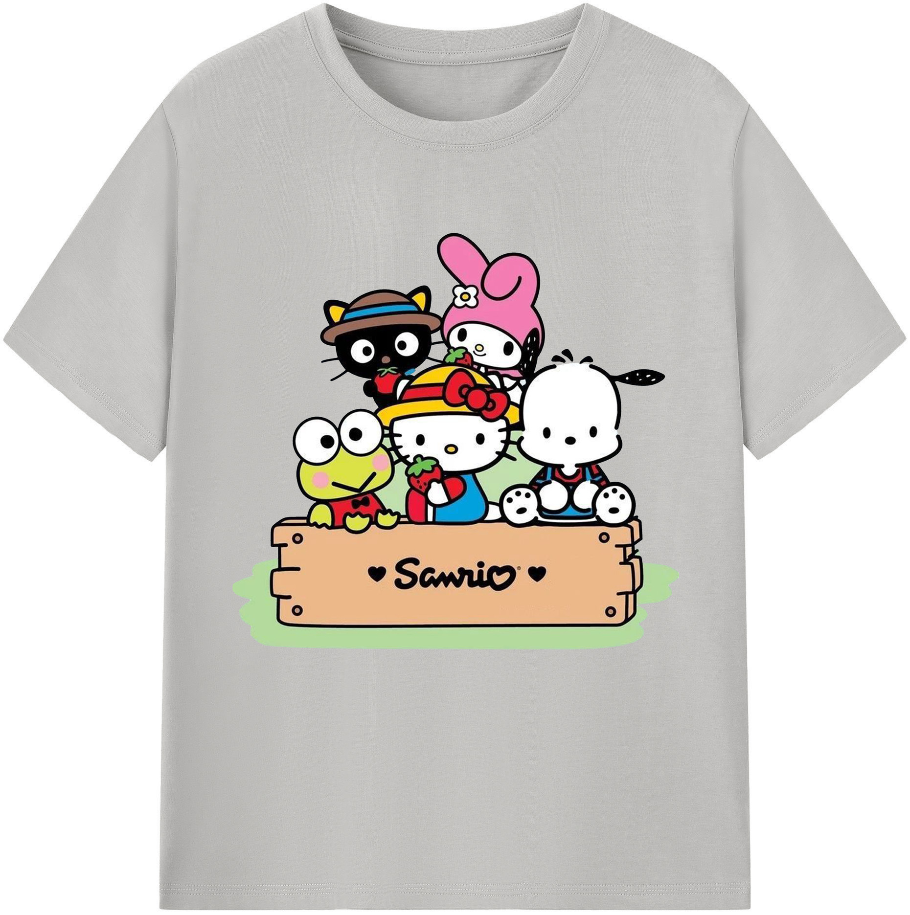 とってもかわいいサンリオファミリー - レディースカジュアルプリントTシャツ ・ 綿100% ・ クルーネック ・ フロントプリント ・ 柔らかく快適 ・ フィットネス カジュアル 旅行用