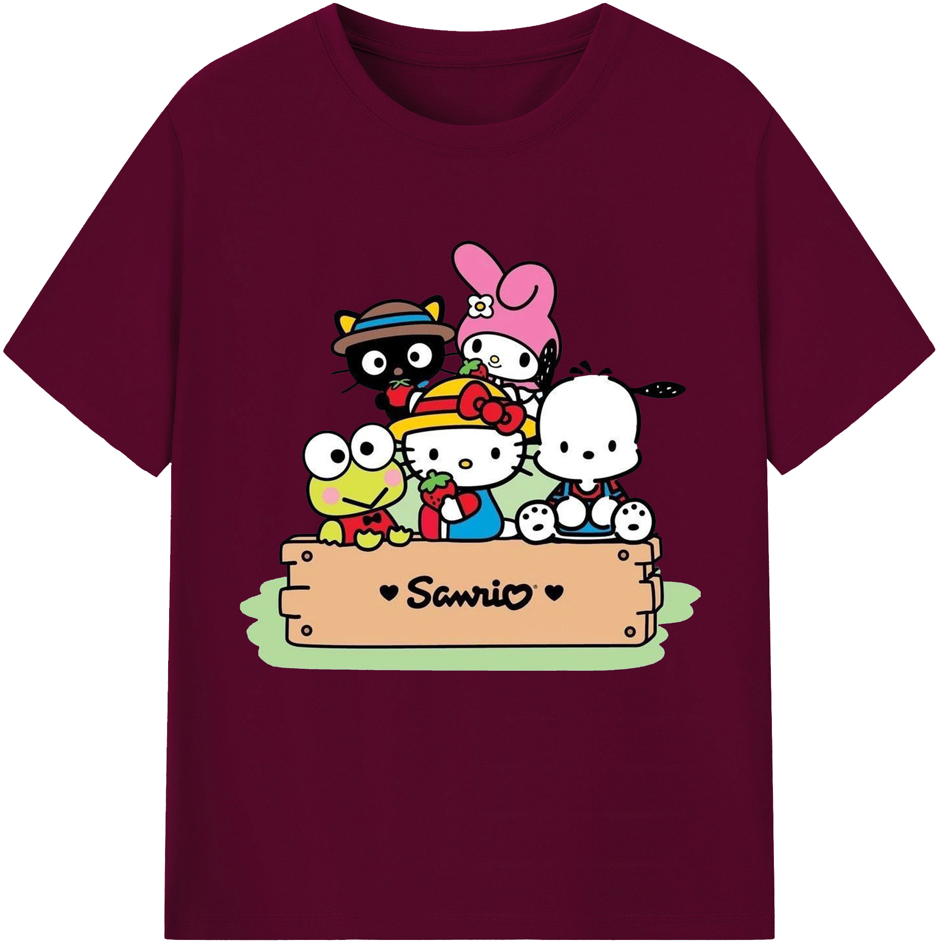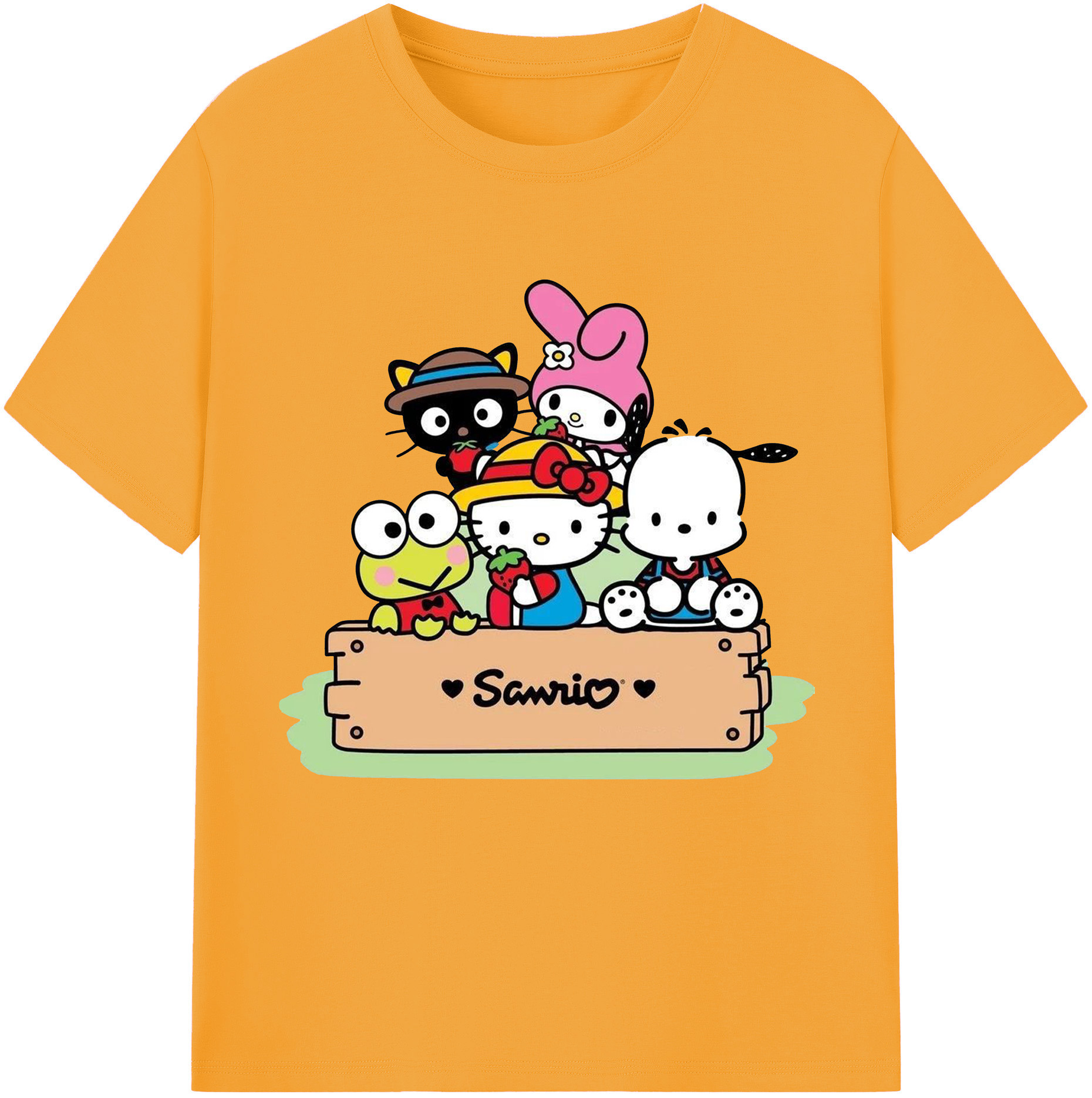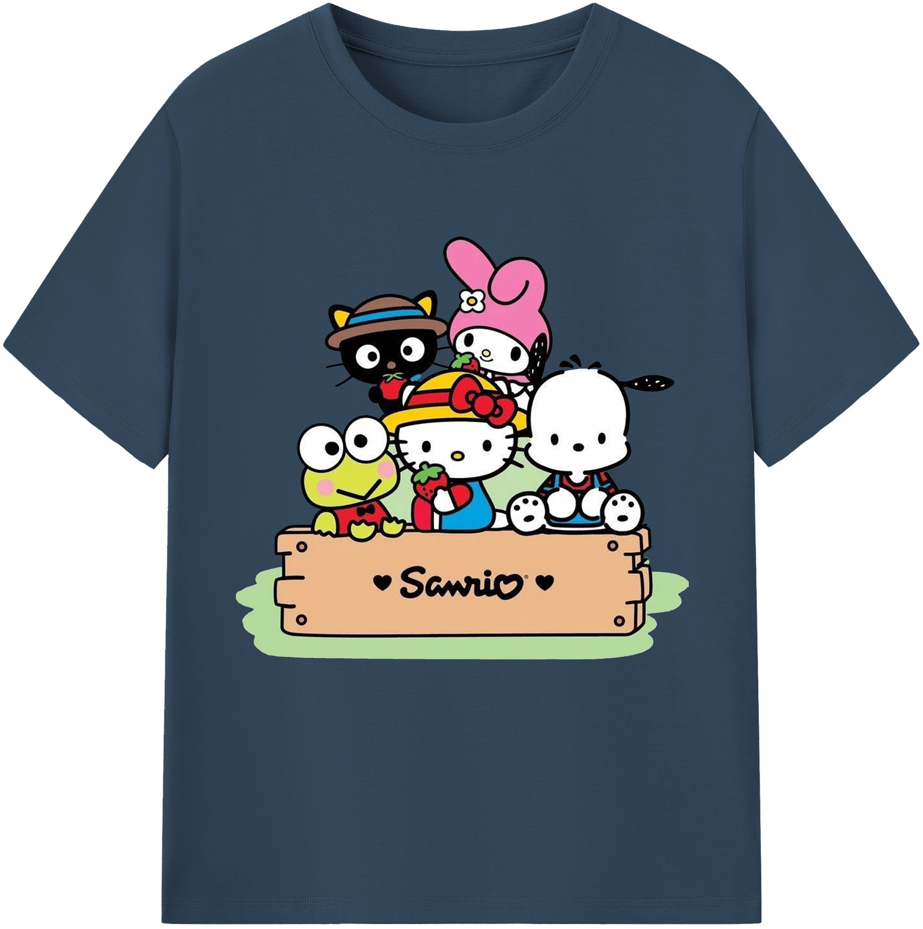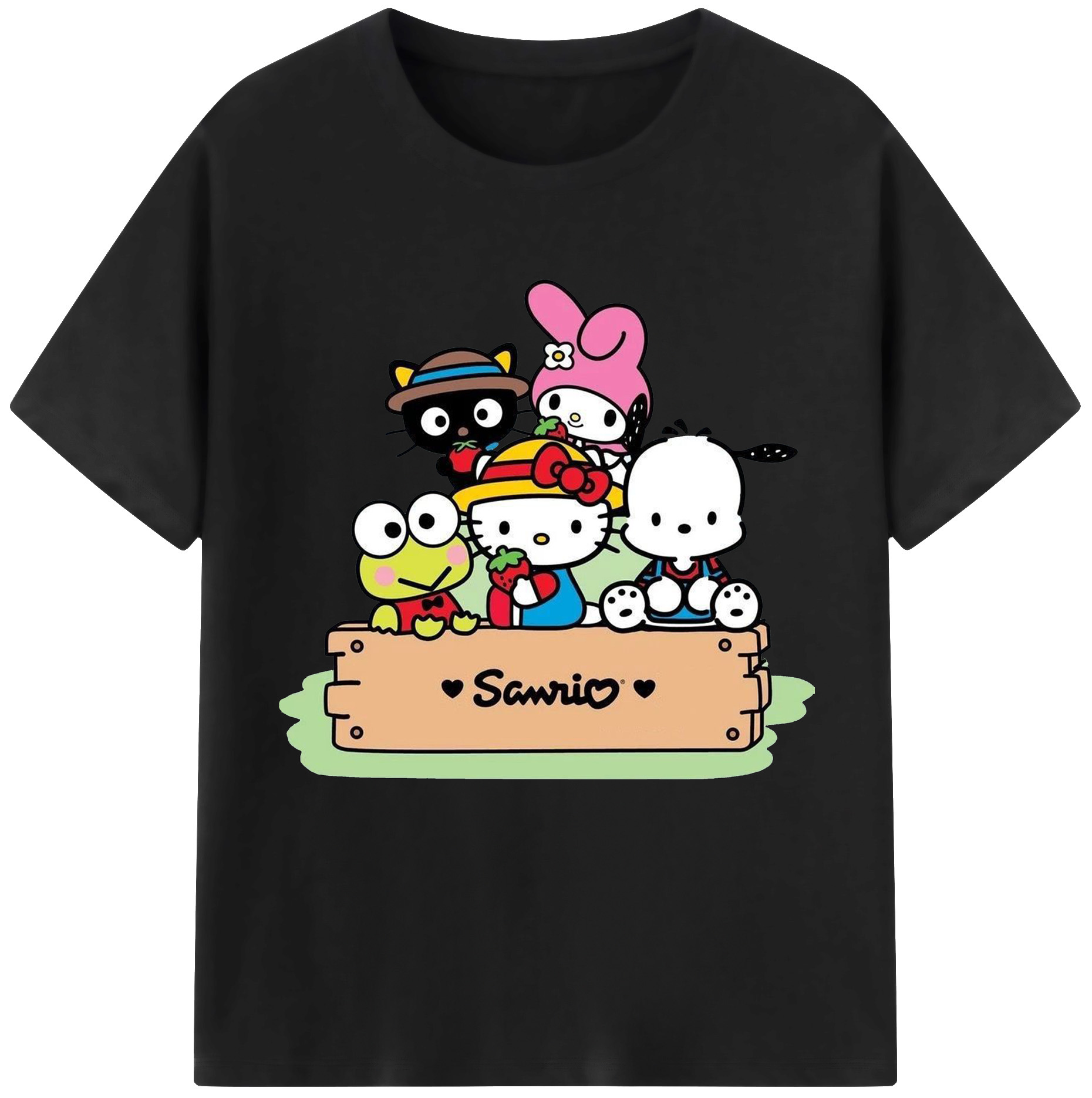 とってもかわいいサンリオファミリー - レディースカジュアルプリントTシャツ ・ 綿100% ・ クルーネック ・ フロントプリント ・ 柔らかく快適 ・ フィットネス カジュアル 旅行用