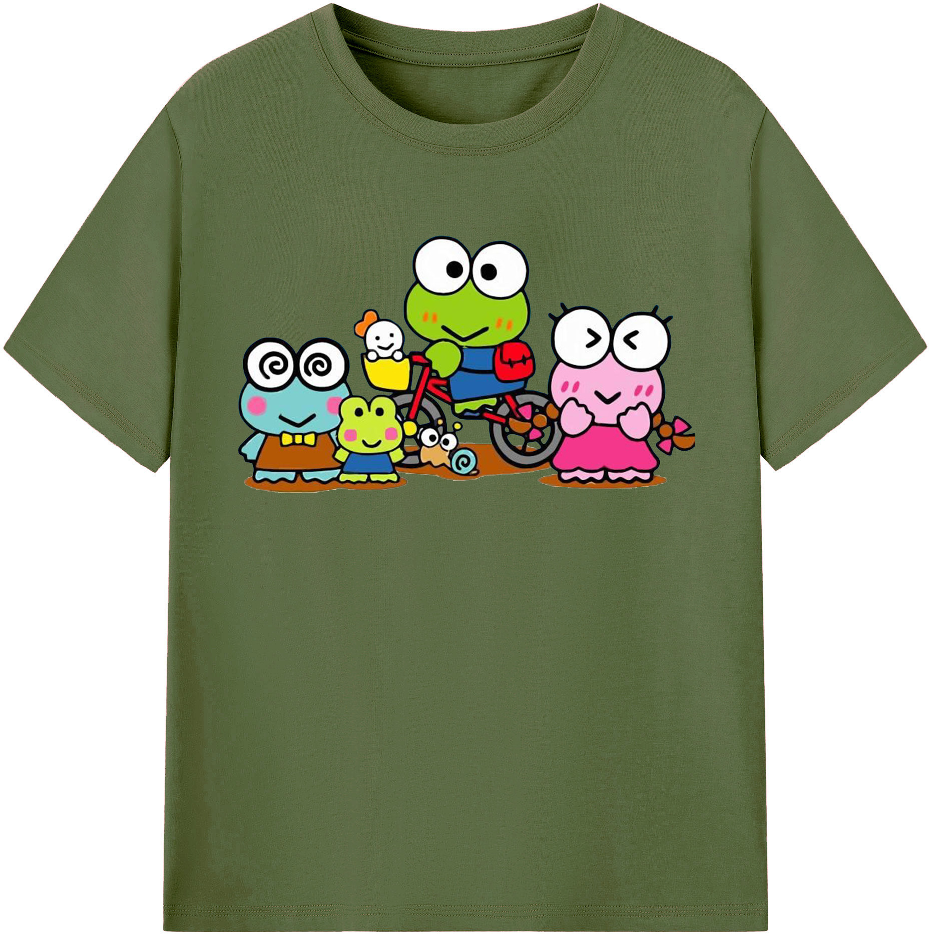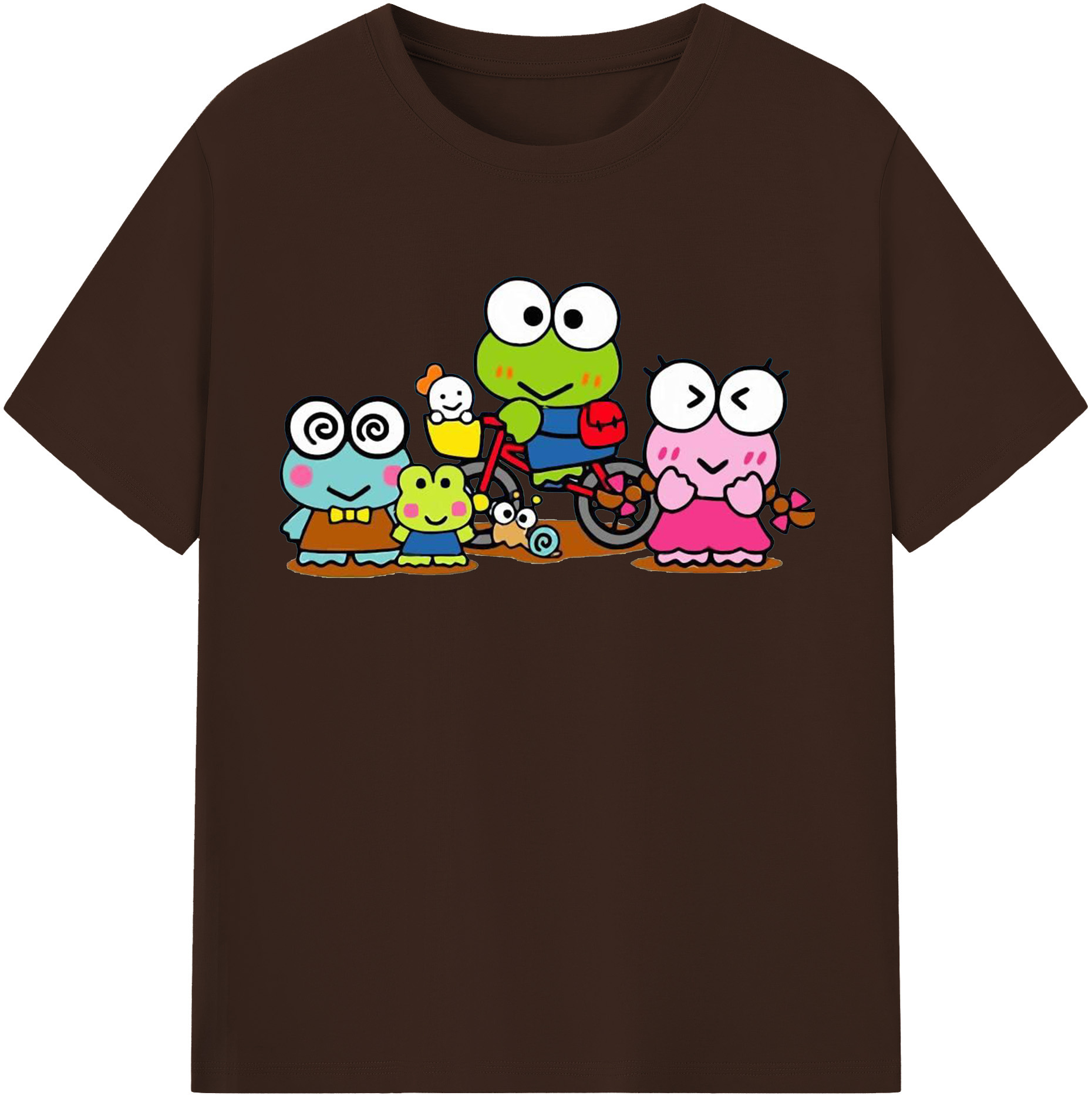 とってもキュートなけろけろけろっぴ - 綿100% 半袖Tシャツ ・ フロントプリント ・ 快適 通気性 ・ 日常使い 散歩 スポーツ用