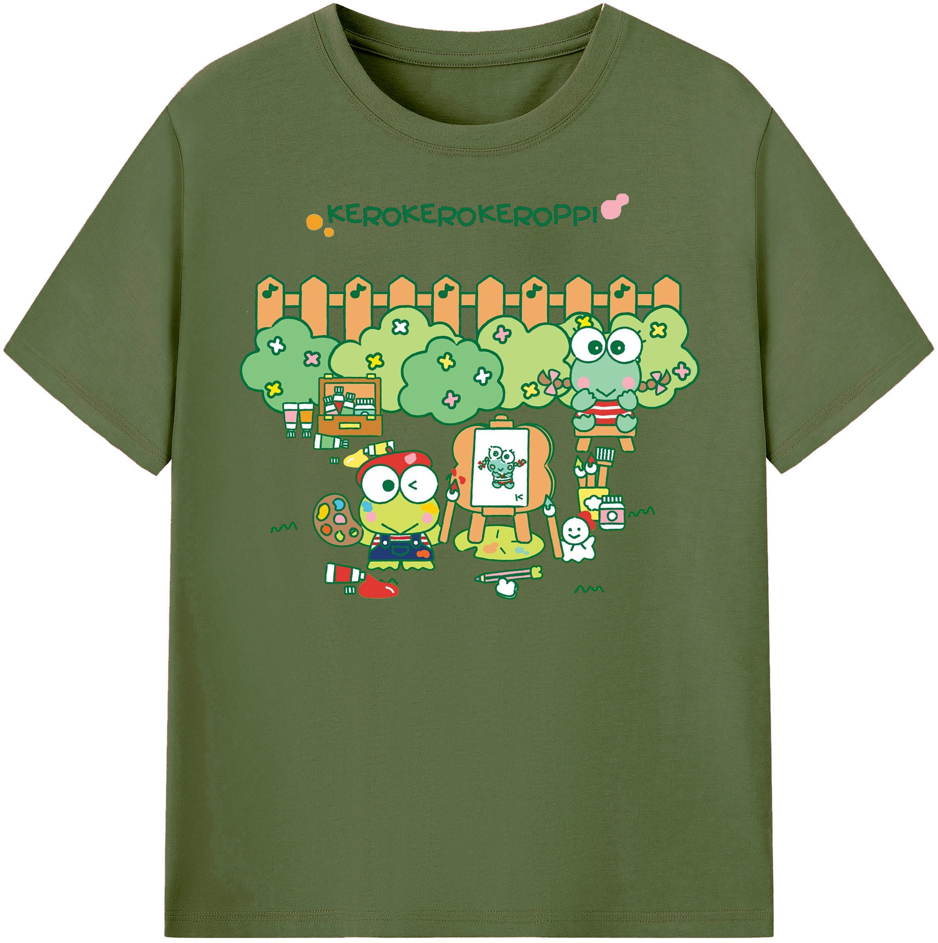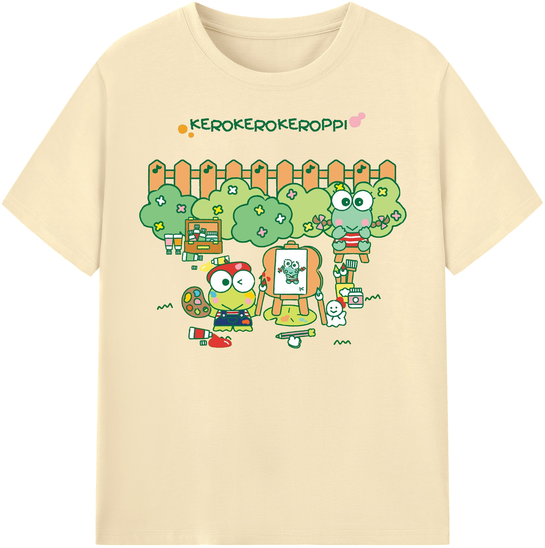 サンリオけろけろけろっぴ - 綿100% 半袖Tシャツ ・ フロントプリント ・ 快適 通気性 ・ 日常使い 散歩 スポーツ用