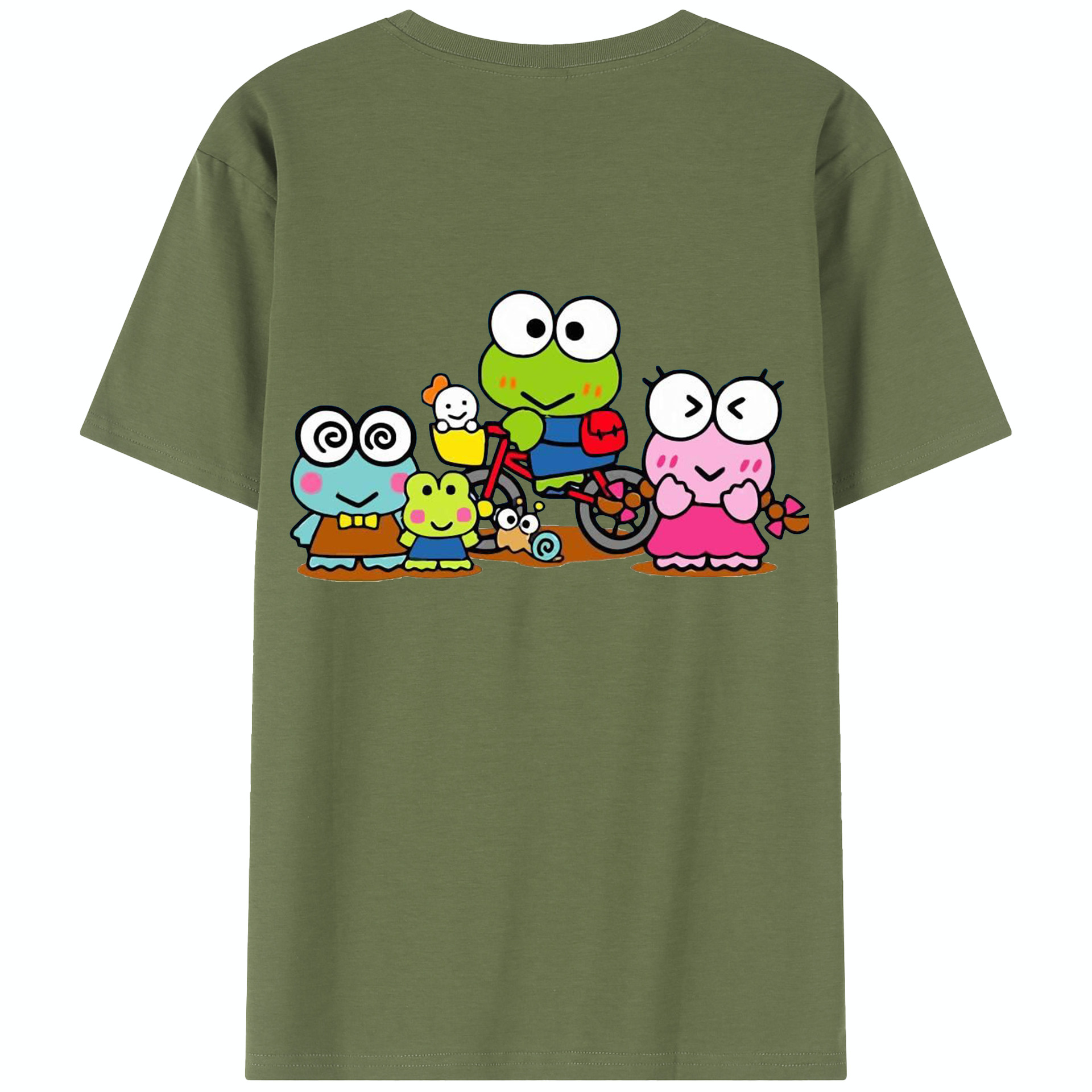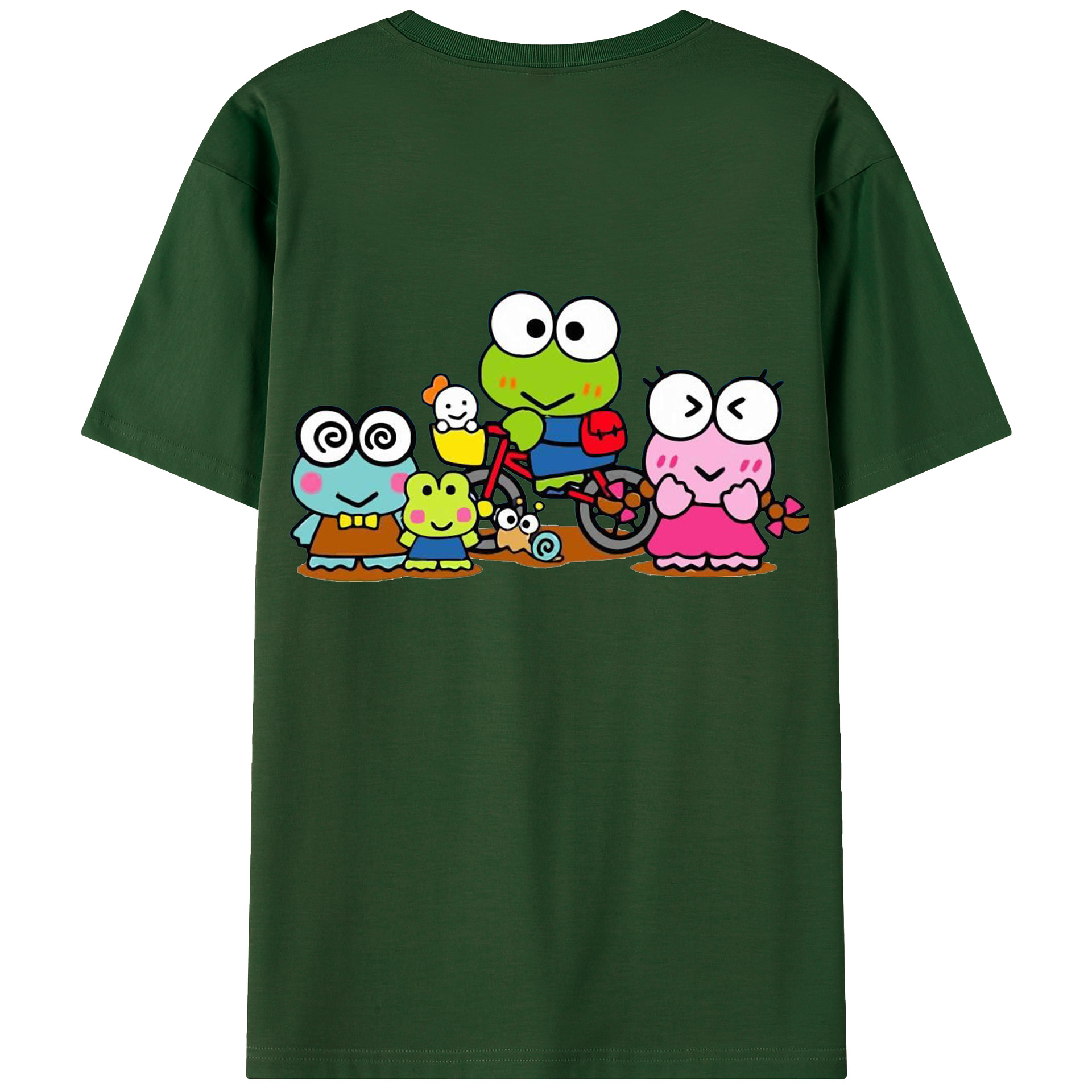 とってもキュートなけろけろけろっぴ - 綿100% 半袖Tシャツ ・ バックプリント ・ 快適 通気性 ・ 日常使い 散歩 スポーツ用