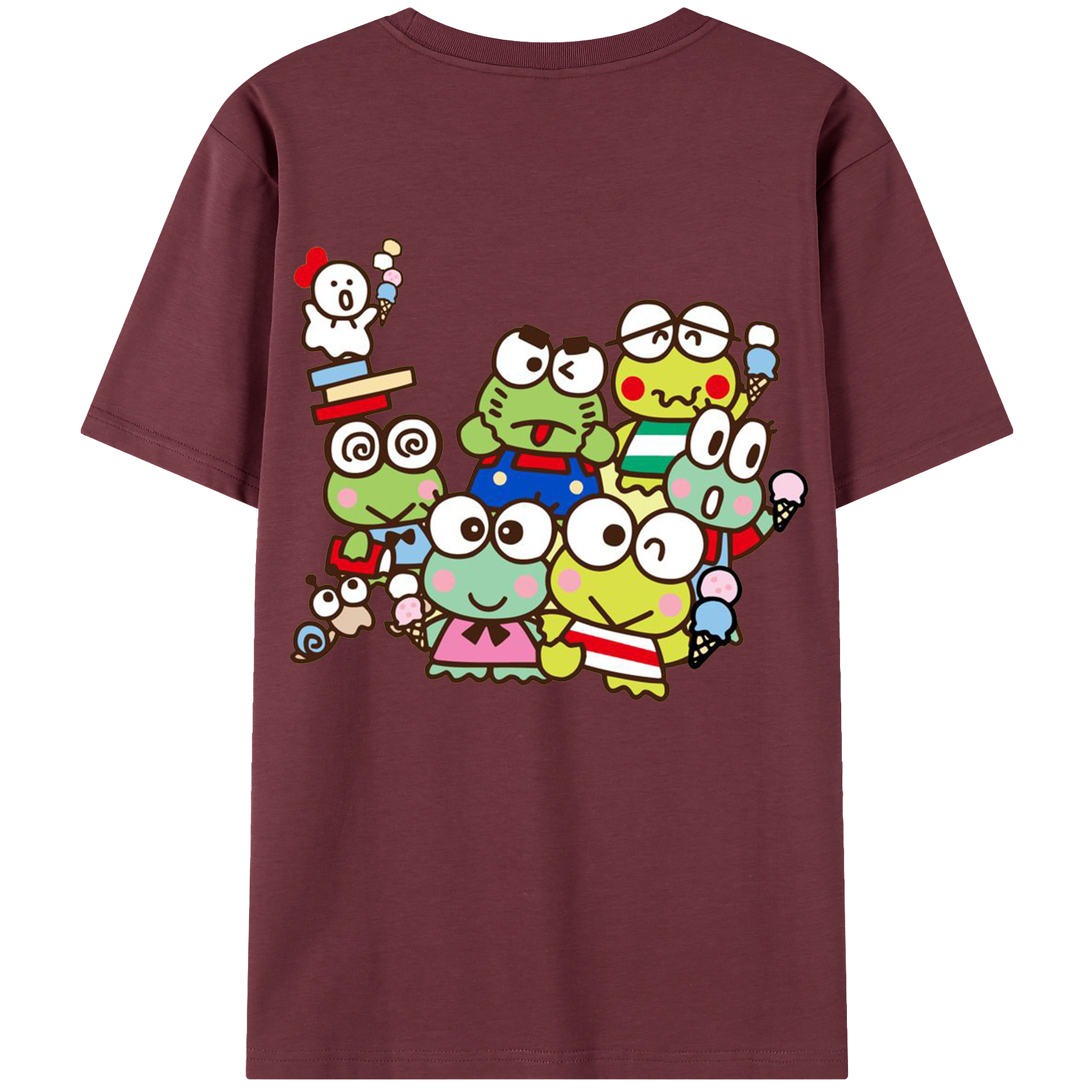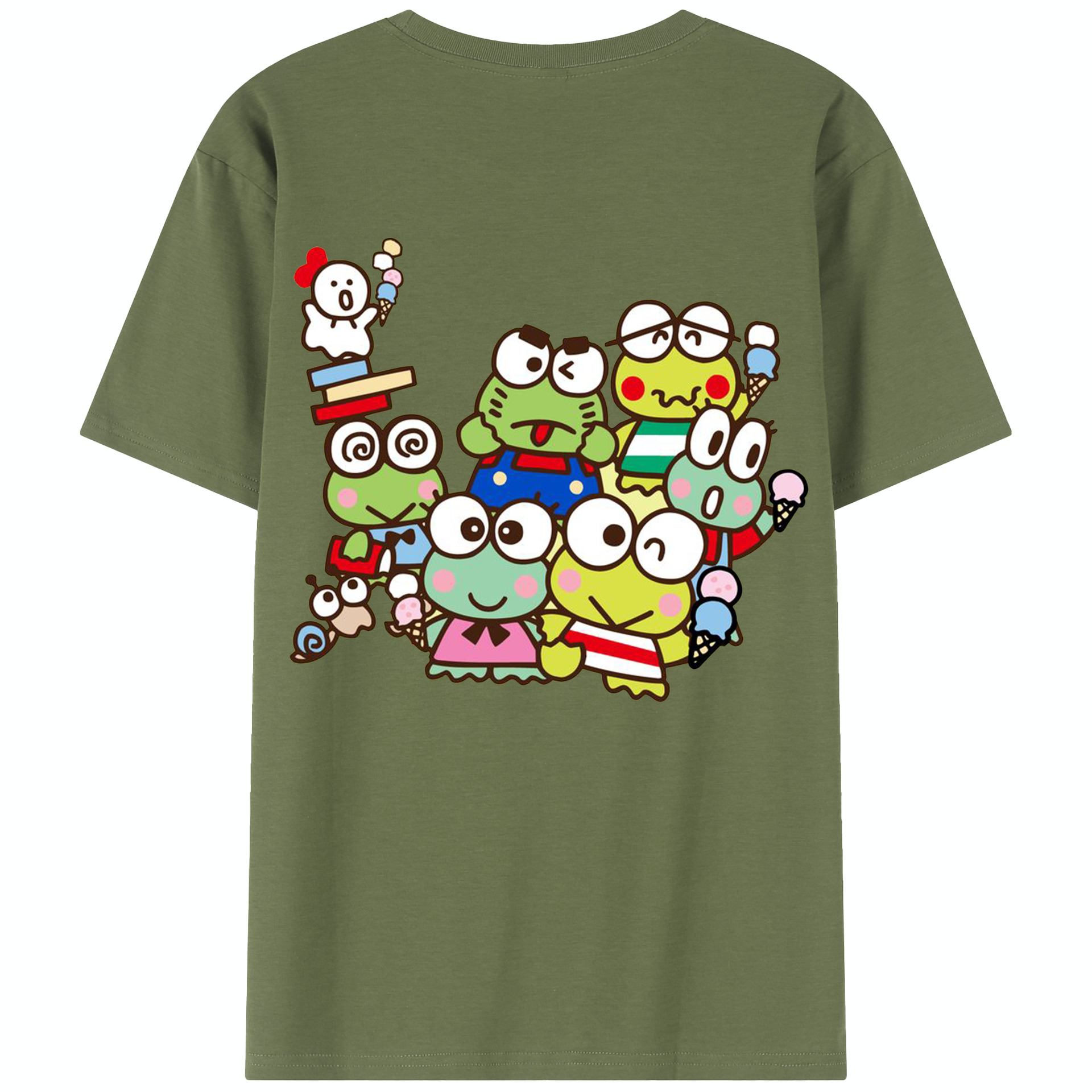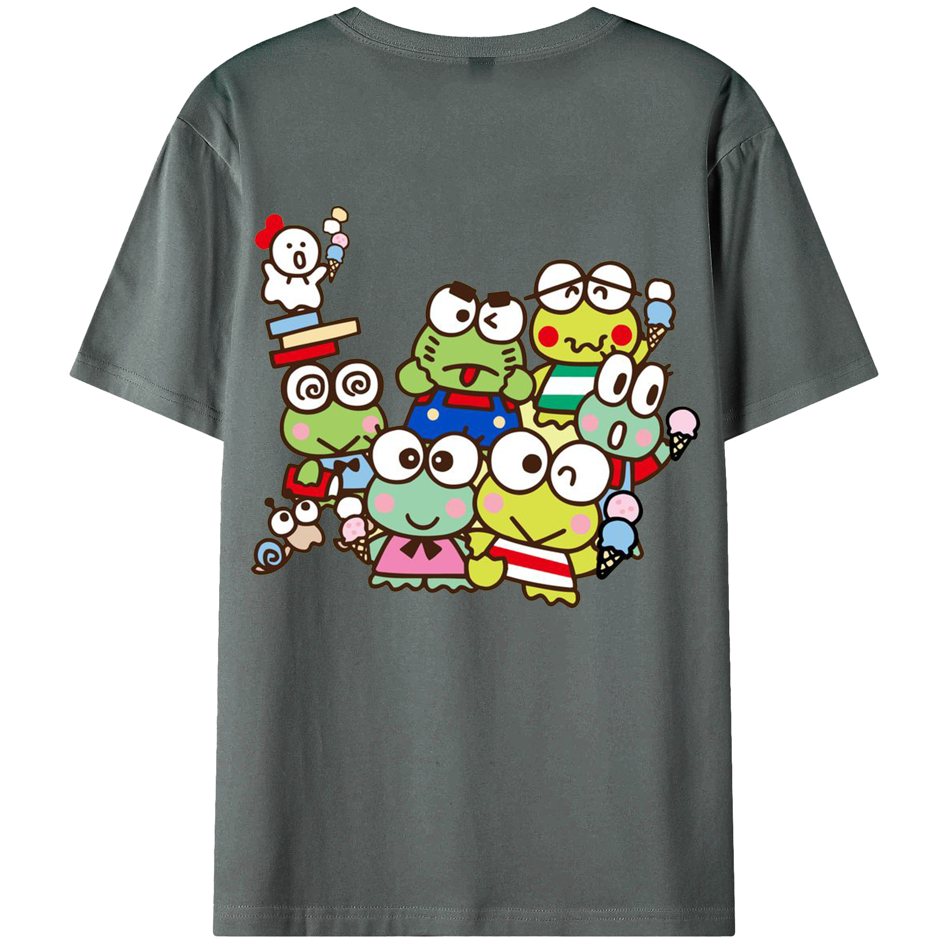 とってもキュートなけろけろけろっぴ - 綿100% 半袖Tシャツ ・ バックプリント ・ 快適 通気性 ・ 日常使い 散歩 スポーツ用