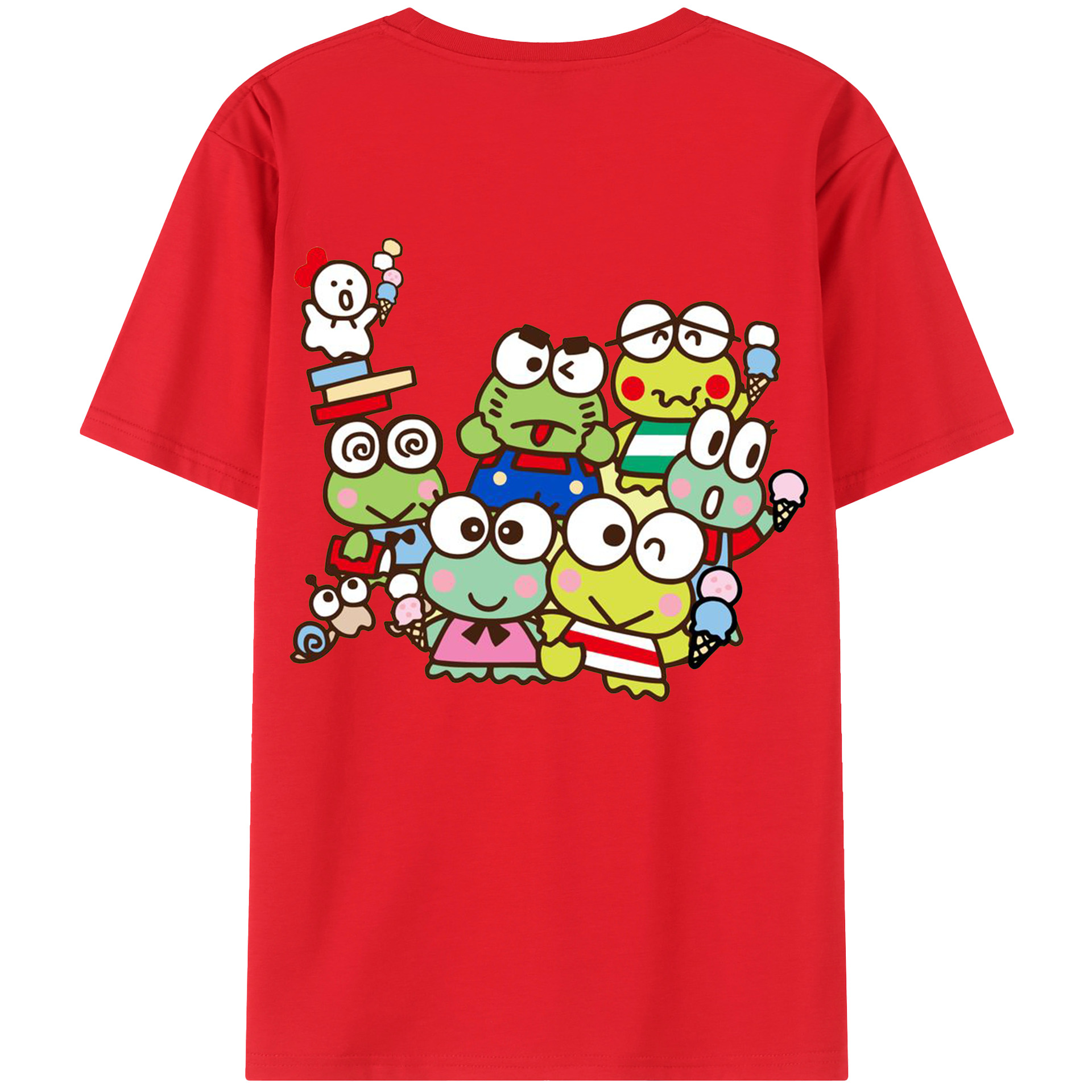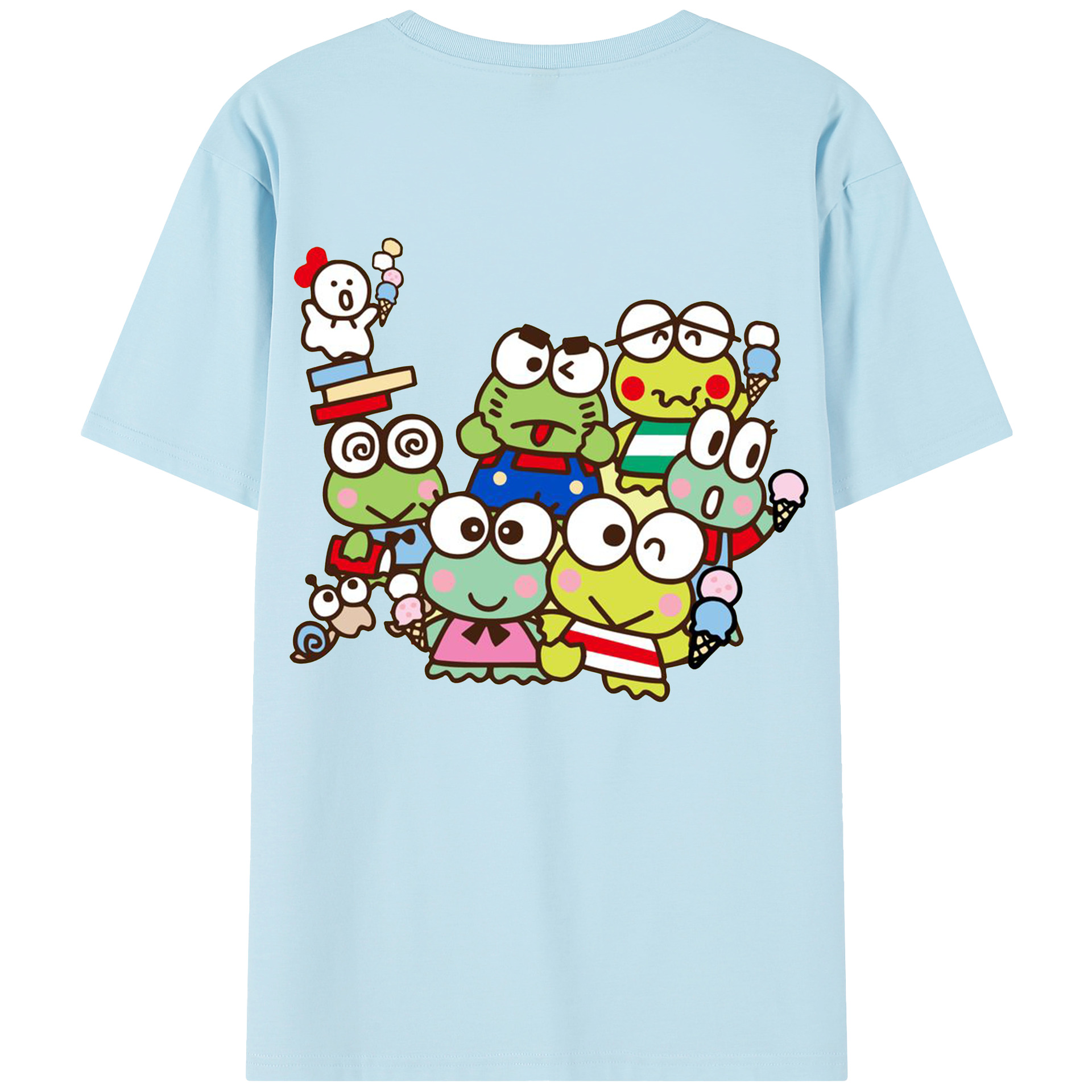 けろけろけろっぴがいっぱい♪ - 綿100% 半袖Tシャツ ・ バックプリント ・ 快適 通気性 ・ 日常使い 散歩 スポーツ用