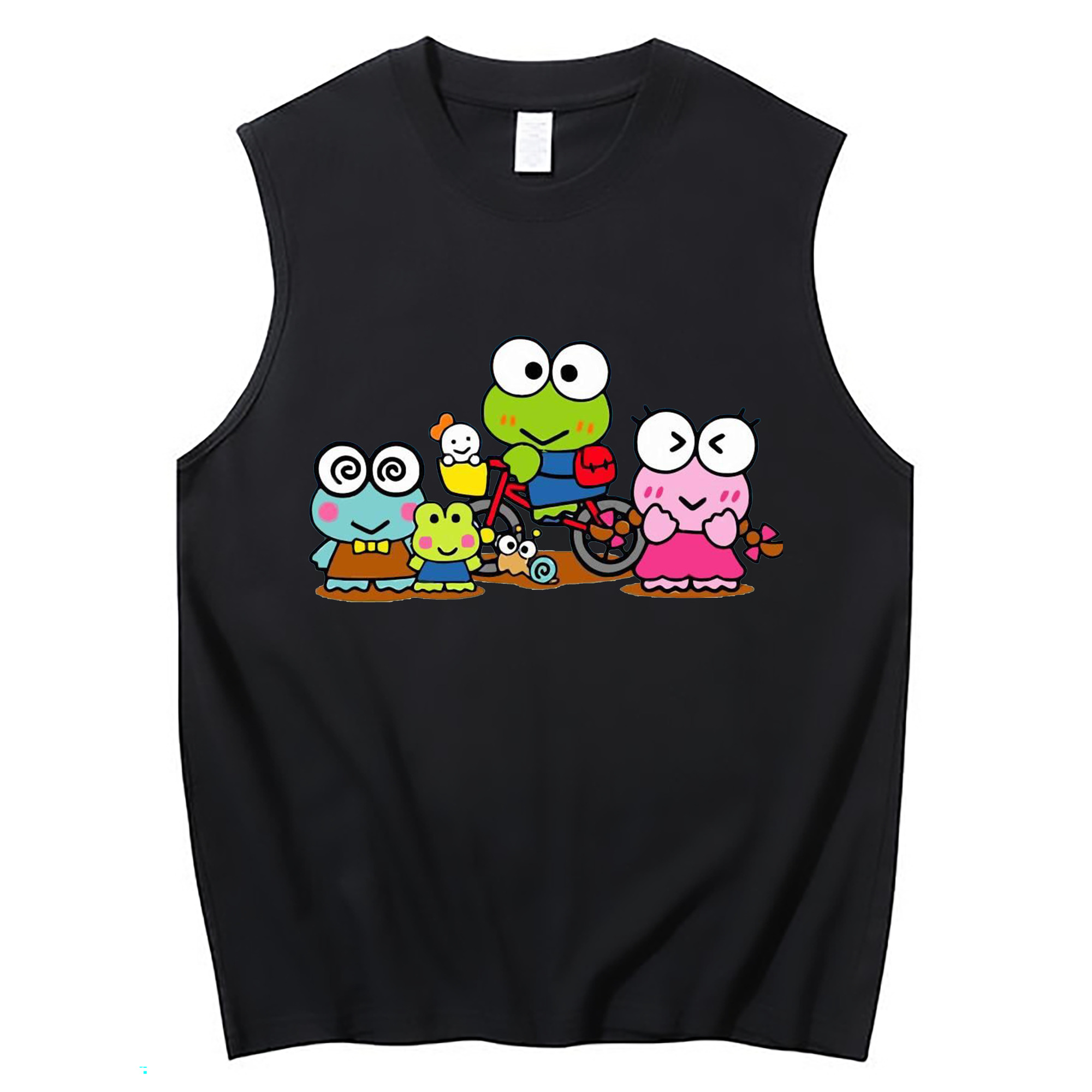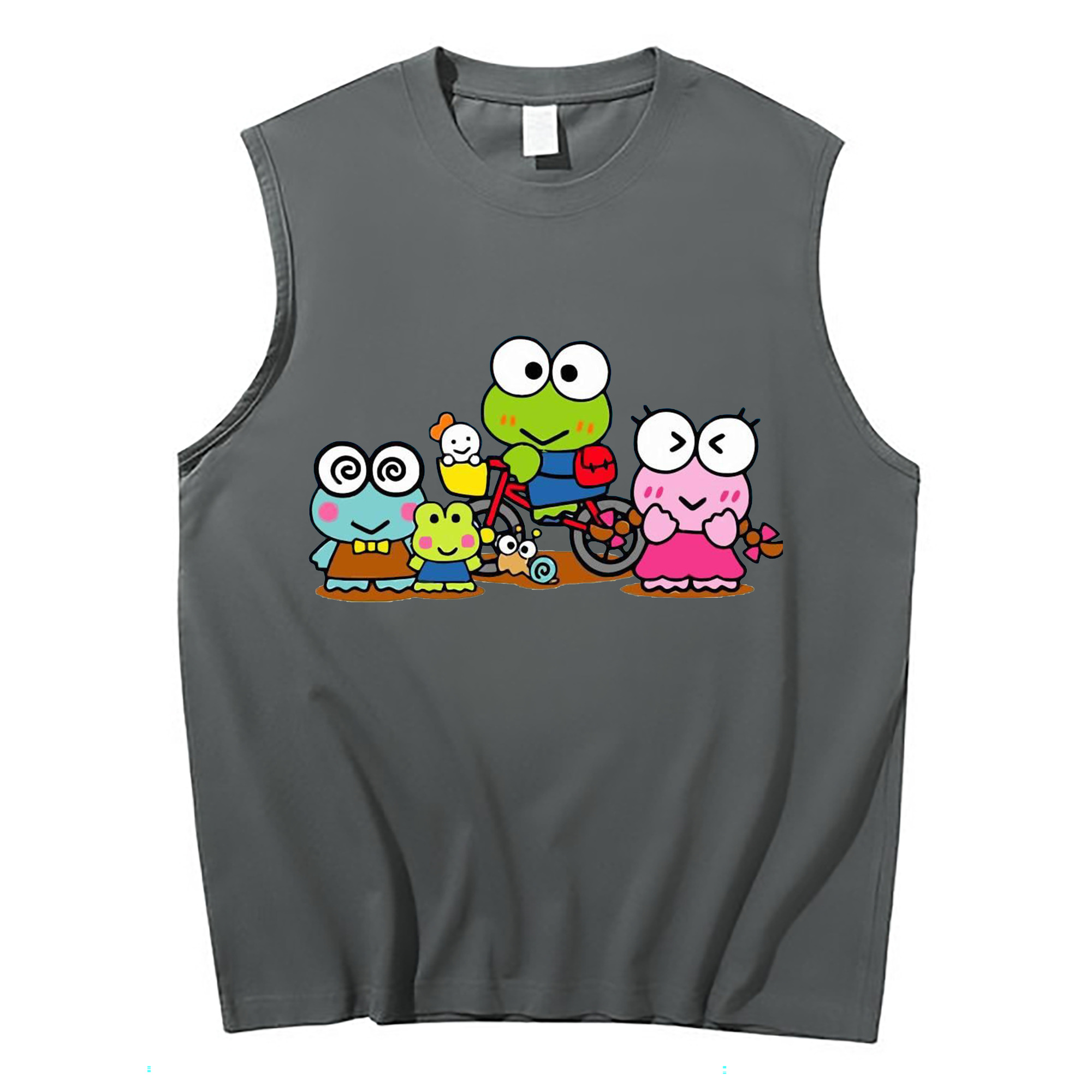 とってもキュートなけろけろけろっぴ - コットン100% タンクトップ ・ フロントプリント ・ タイトフィット ・ 快適 通気性 ・ スポーツ カジュアル 散歩用