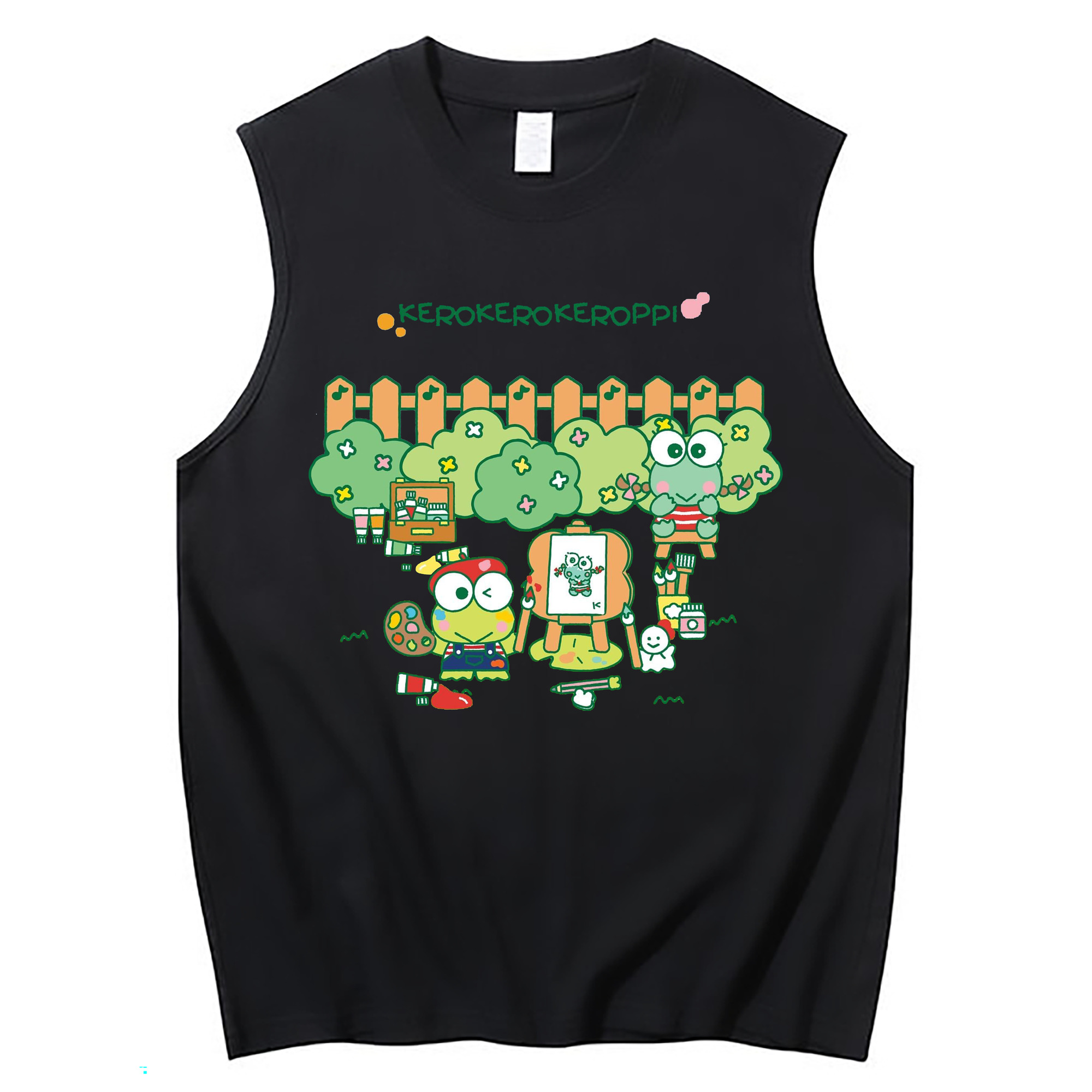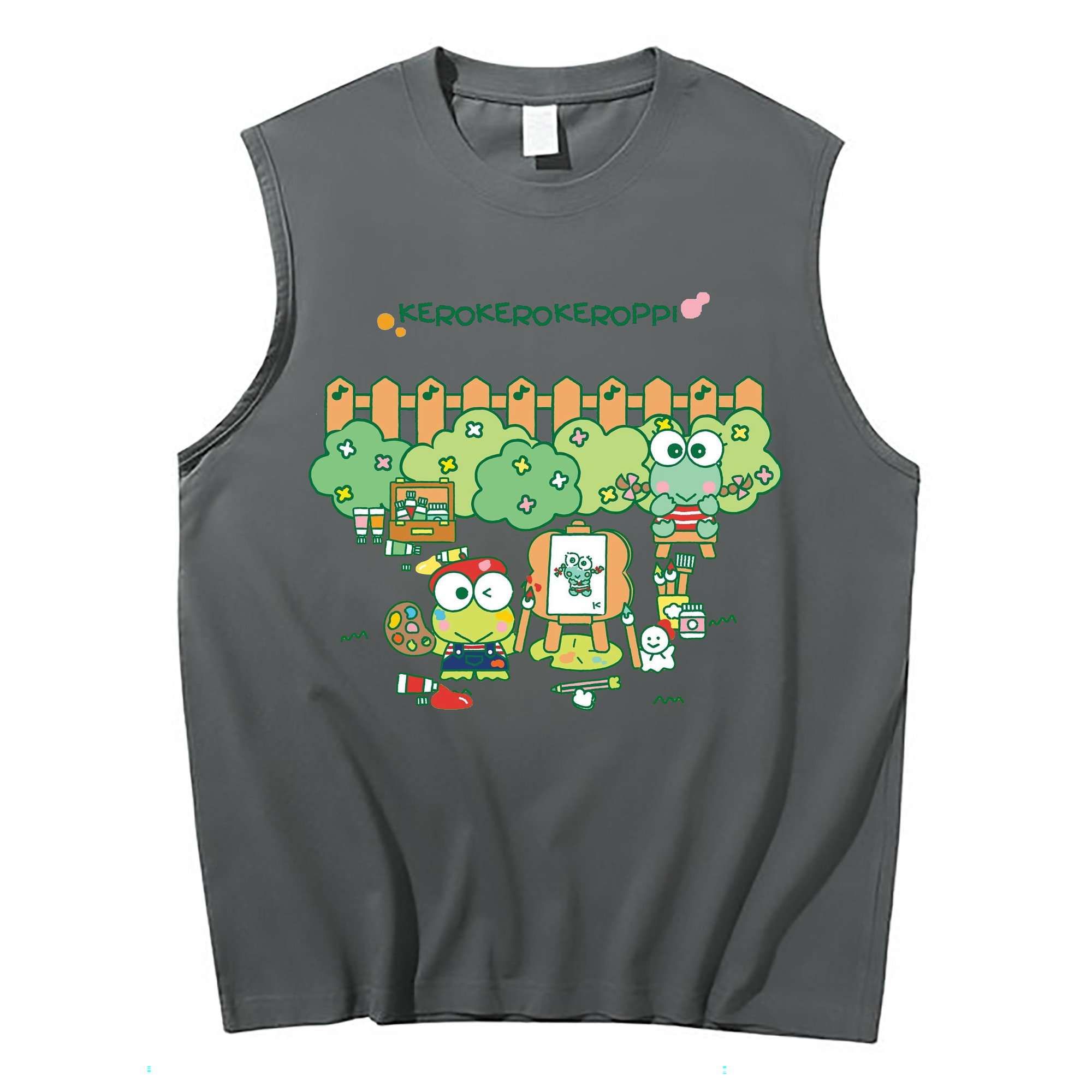 とってもキュートなけろけろけろっぴ - コットン100% タンクトップ ・ フロントプリント ・ タイトフィット ・ 快適 通気性 ・ スポーツ カジュアル 散歩用
