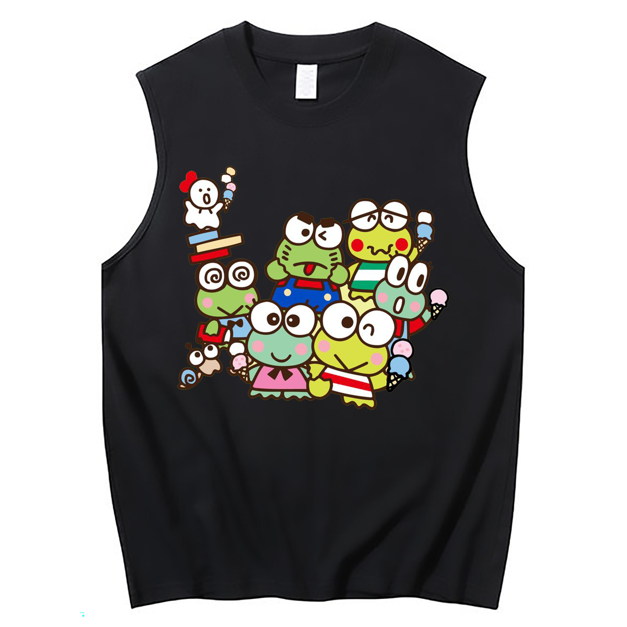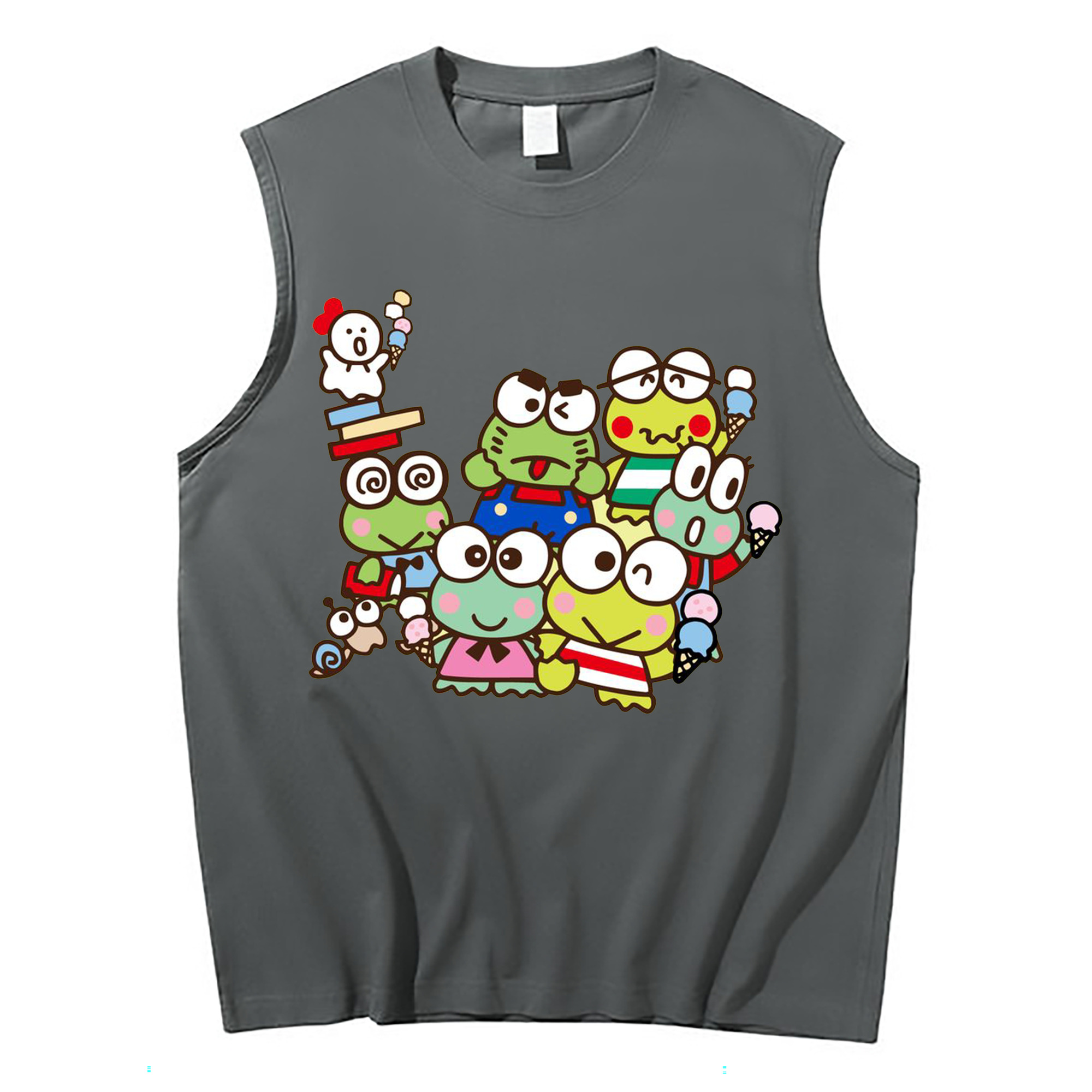 とってもキュートなけろけろけろっぴ - コットン100% タンクトップ ・ フロントプリント ・ タイトフィット ・ 快適 通気性 ・ スポーツ カジュアル 散歩用