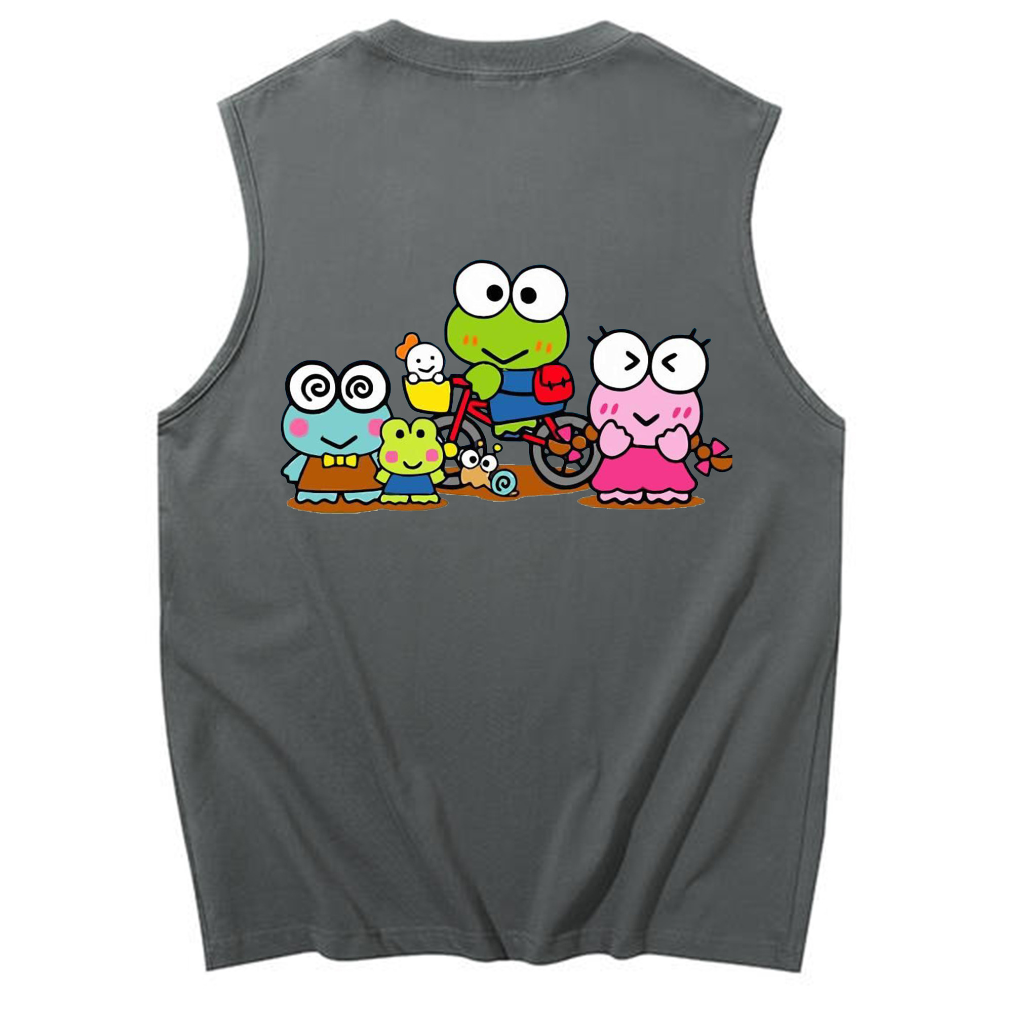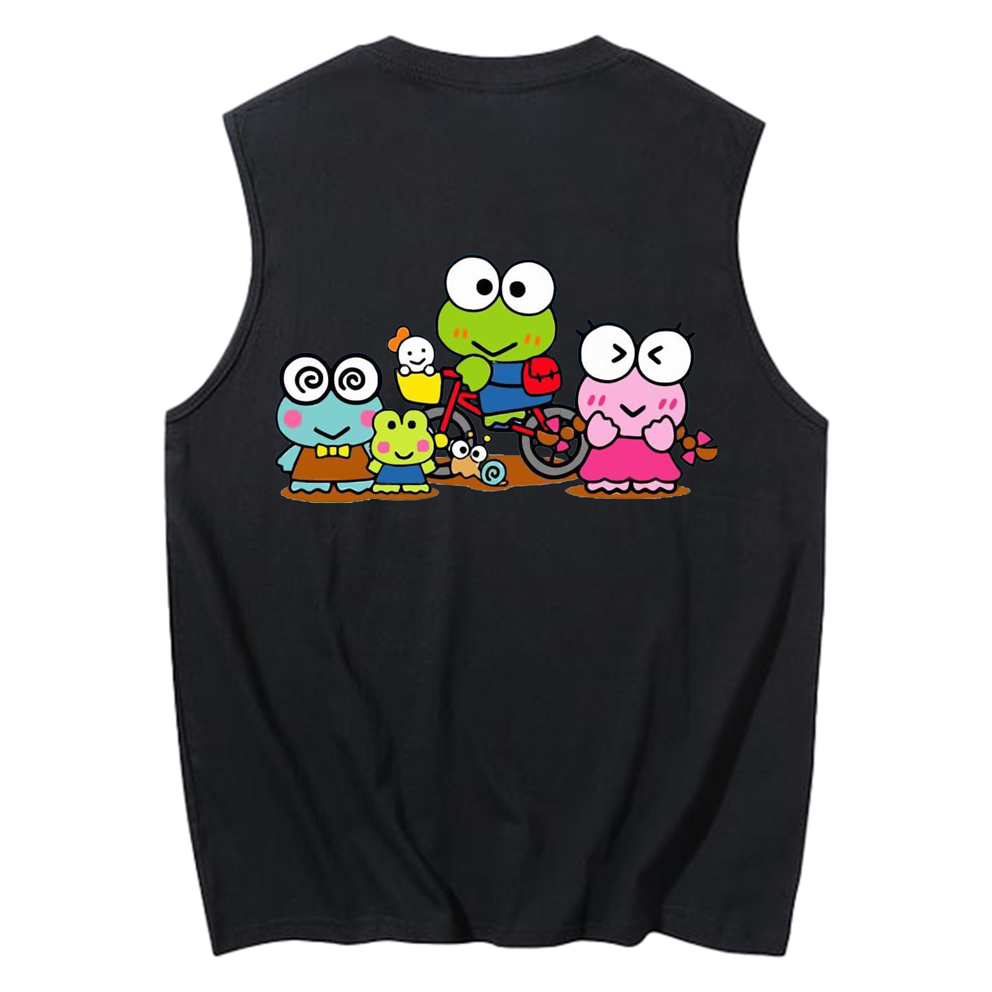 とってもキュートなけろけろけろっぴ - コットン100% タンクトップ ・ 背面プリント ・ タイトシルエット ・ 快適 通気性 ・ スポーツ カジュアル 散歩用