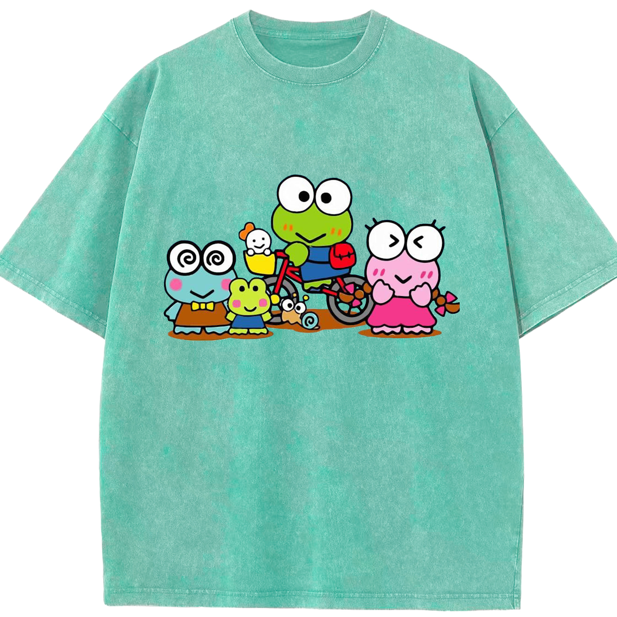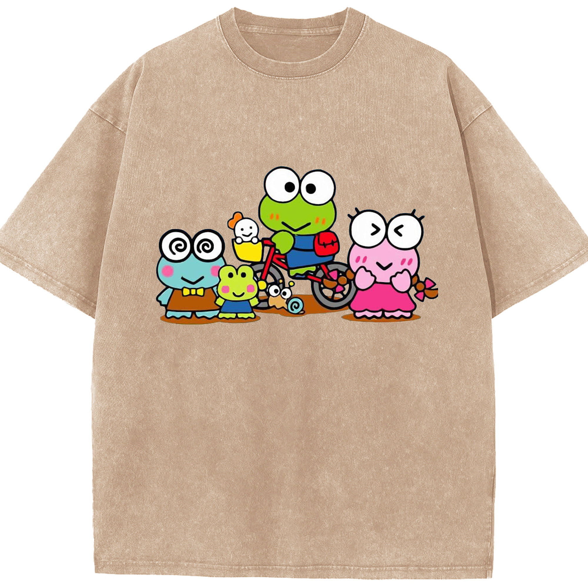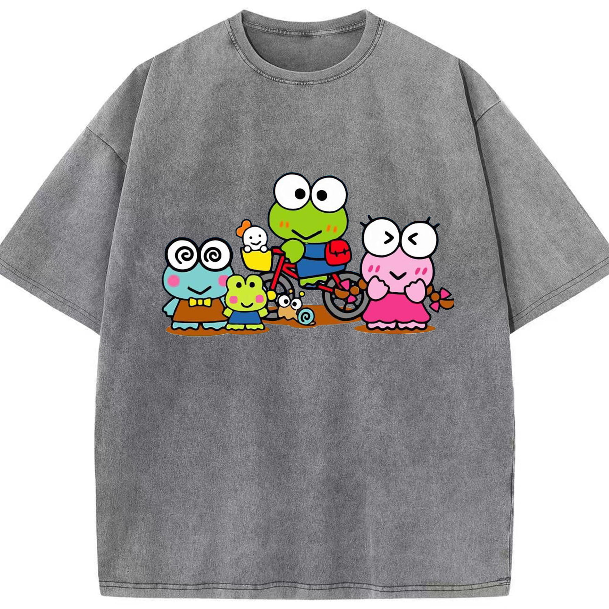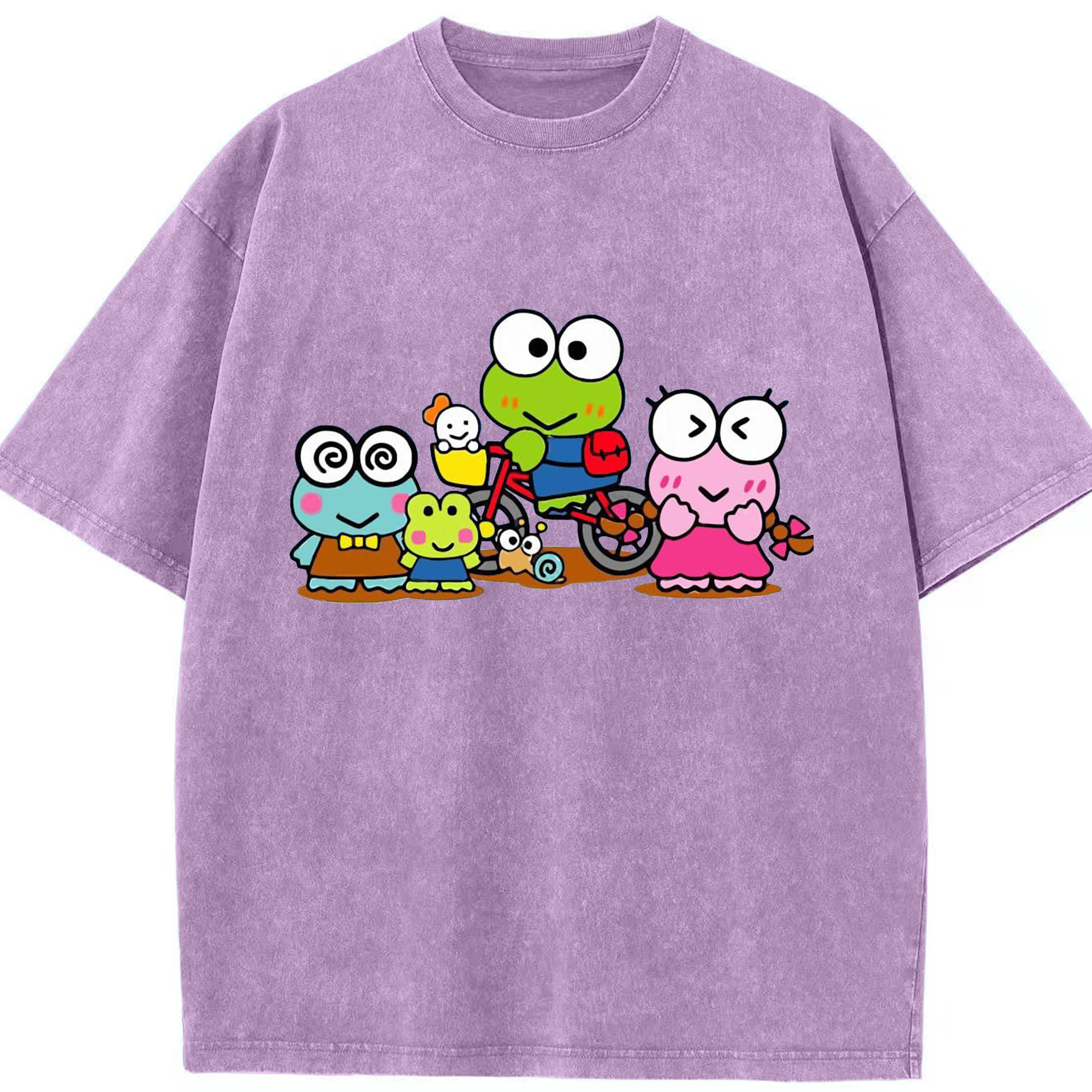 とってもキュートなけろけろけろっぴ - 綿100% ヴィンテージ風 半袖Tシャツ ・ フロントプリント ・ 柔らか肌触り ・ 通気性 快適 ・ スポーツ カジュアル 外出用