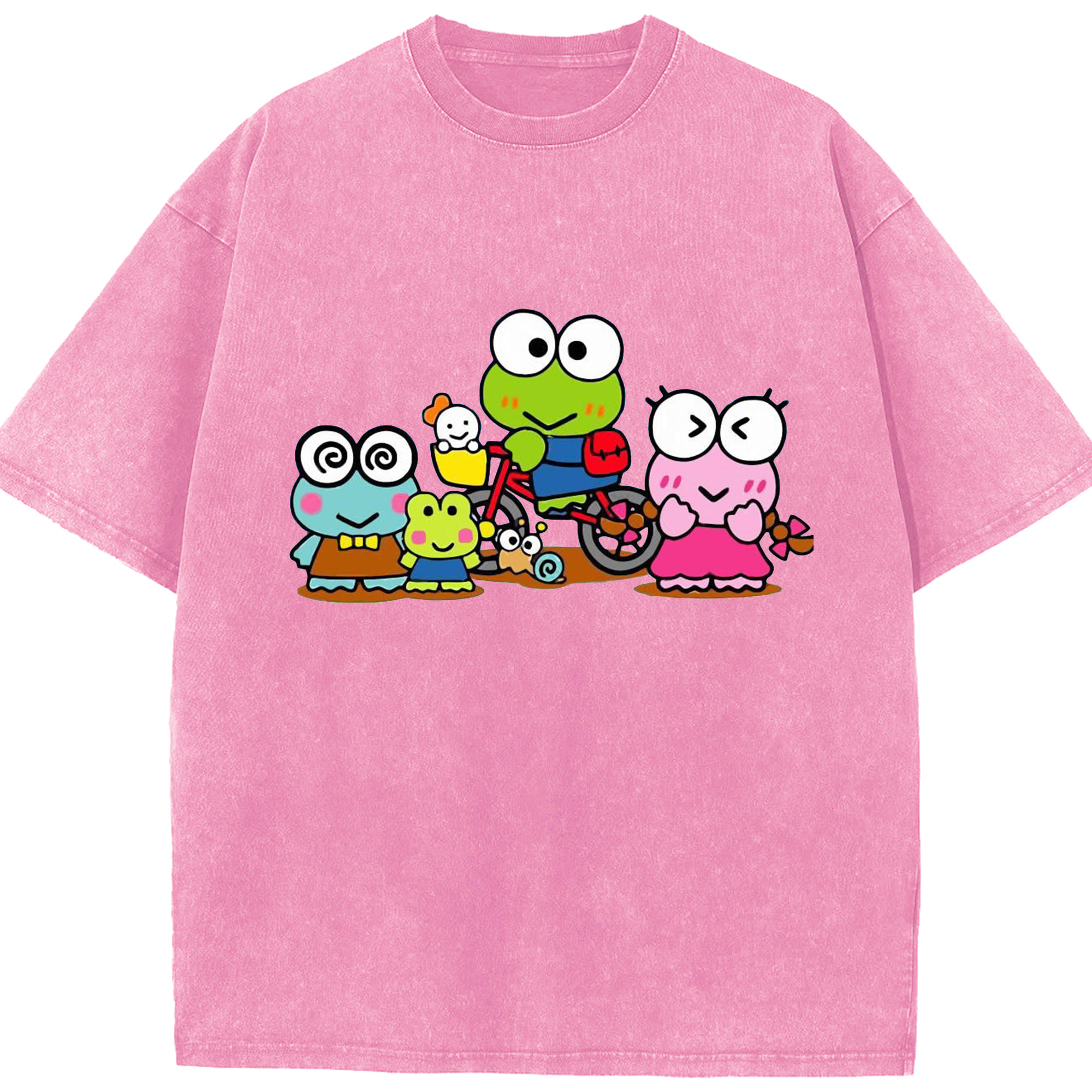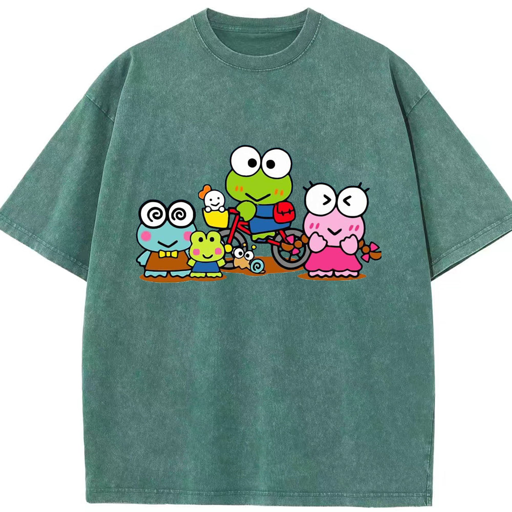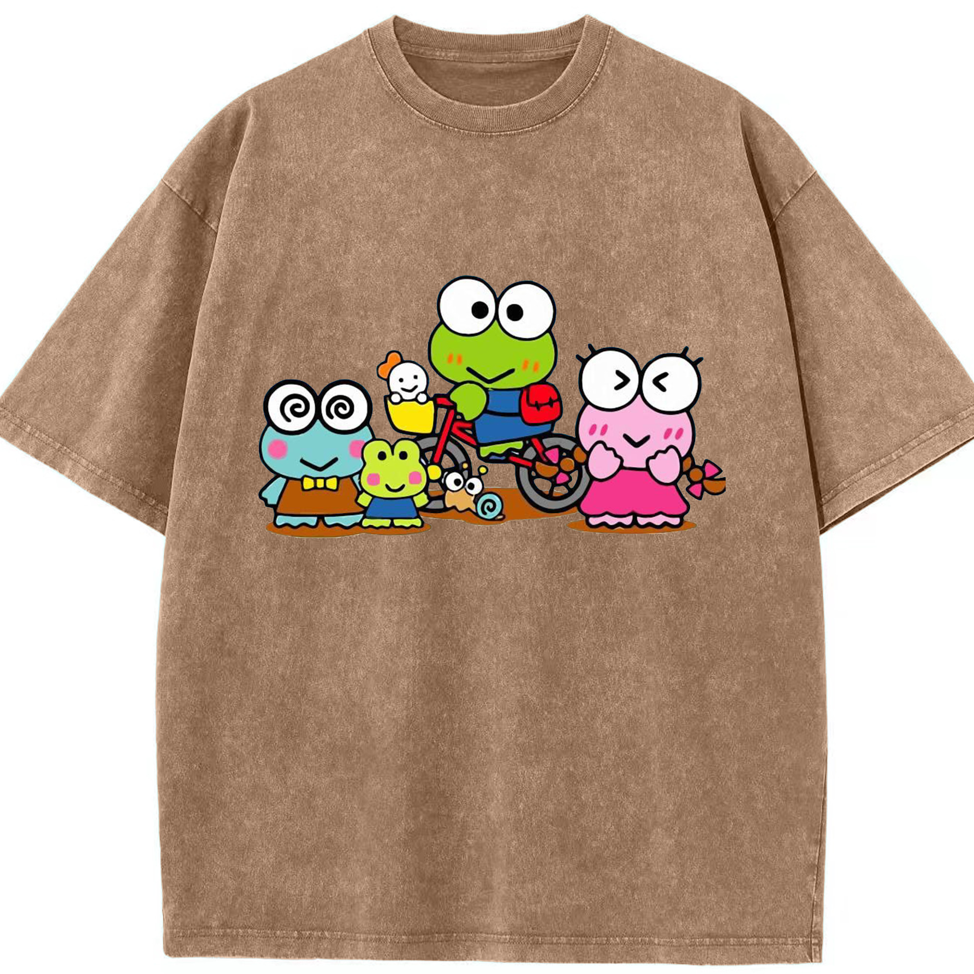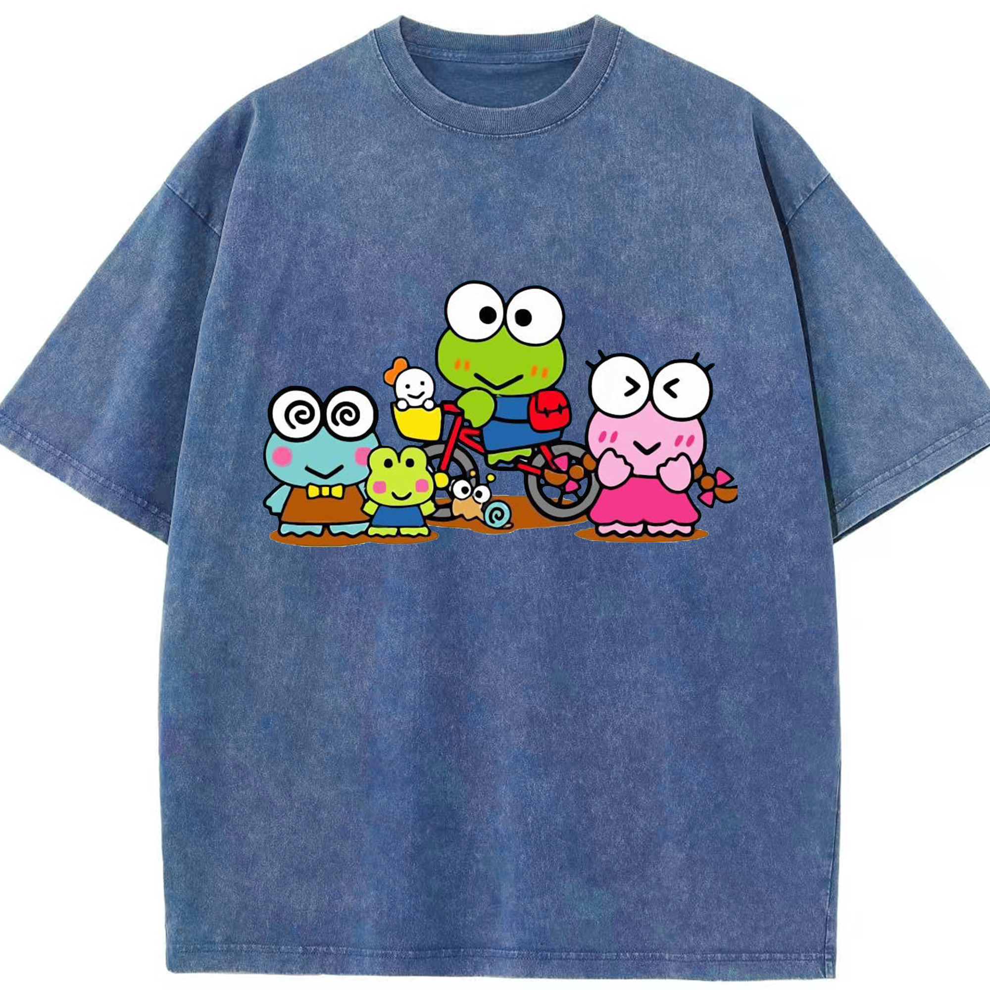 とってもキュートなけろけろけろっぴ - 綿100% ヴィンテージ風 半袖Tシャツ ・ フロントプリント ・ 柔らか肌触り ・ 通気性 快適 ・ スポーツ カジュアル 外出用
