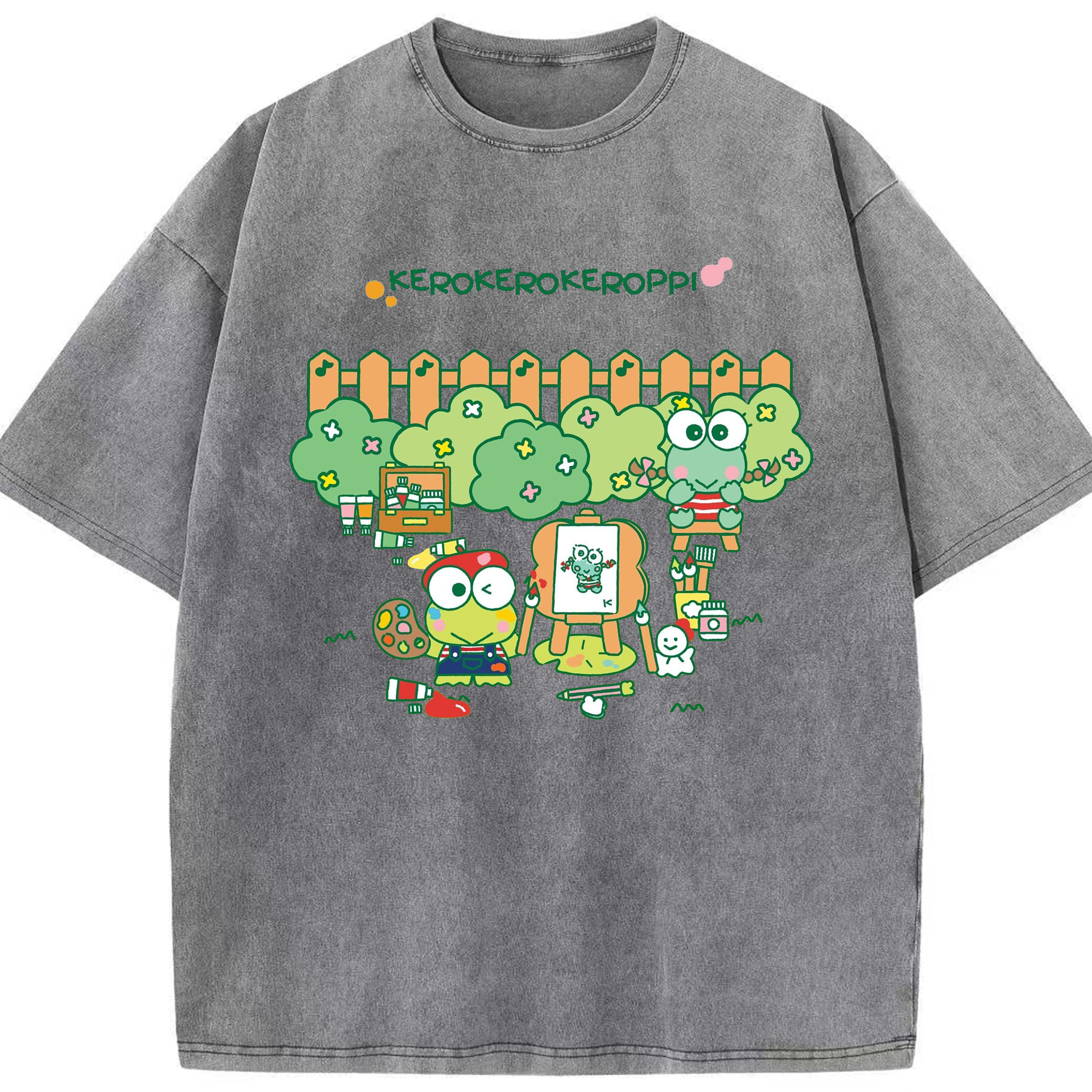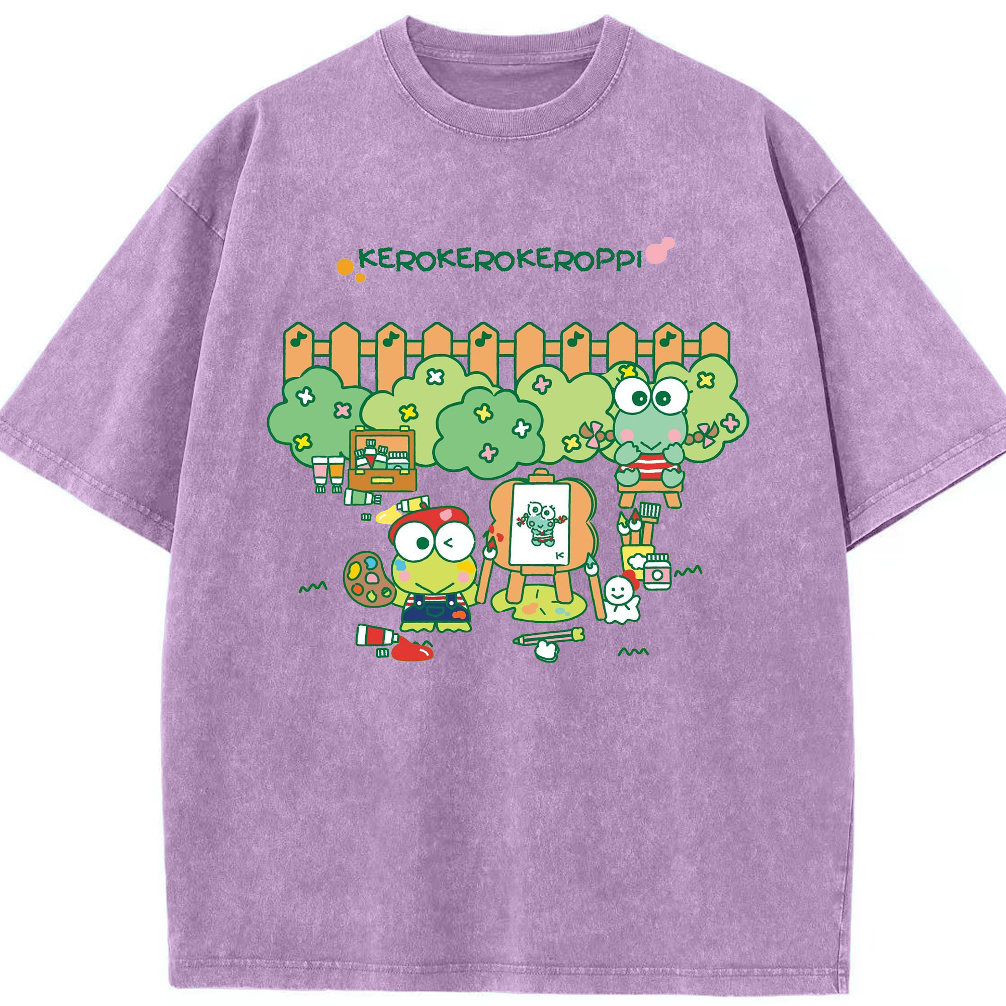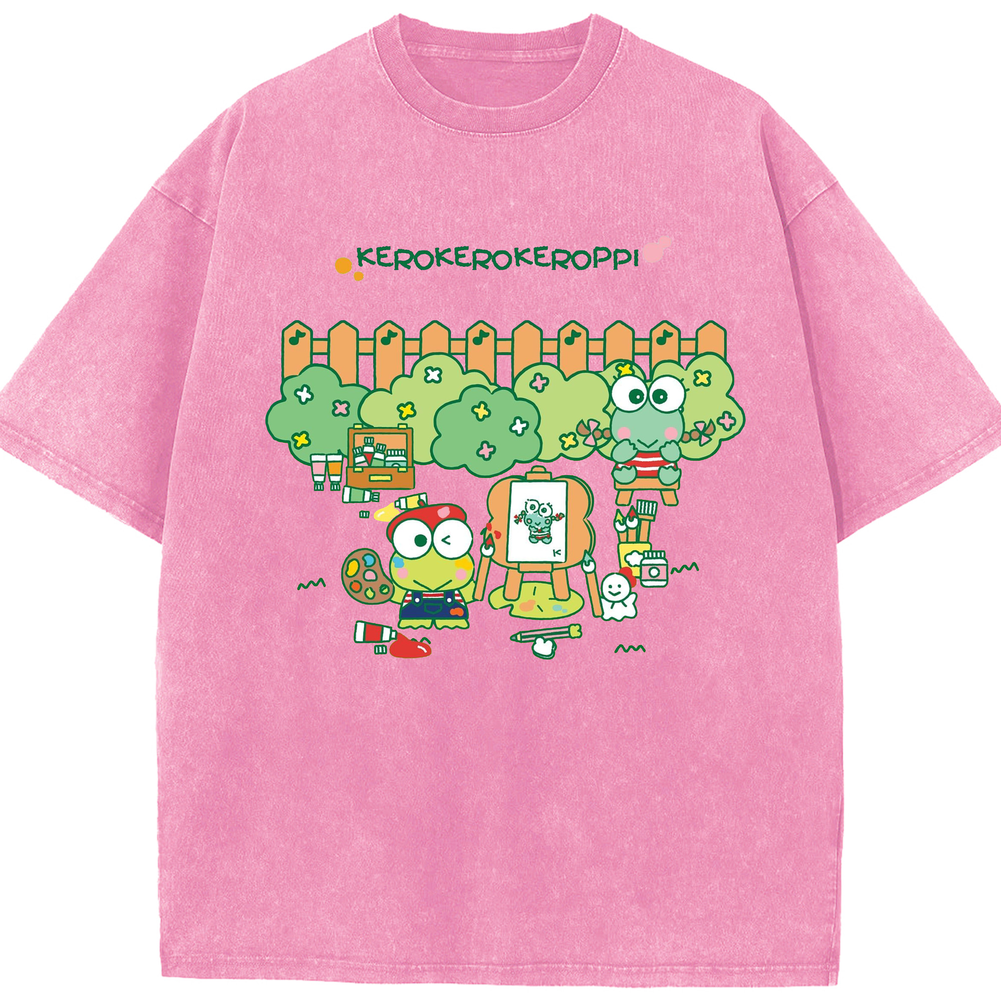 とってもキュートなけろけろけろっぴ - 綿100% 半袖Tシャツ ・ フロントプリント ・ 快適 通気性 ・ 日常使い 散歩 スポーツ用