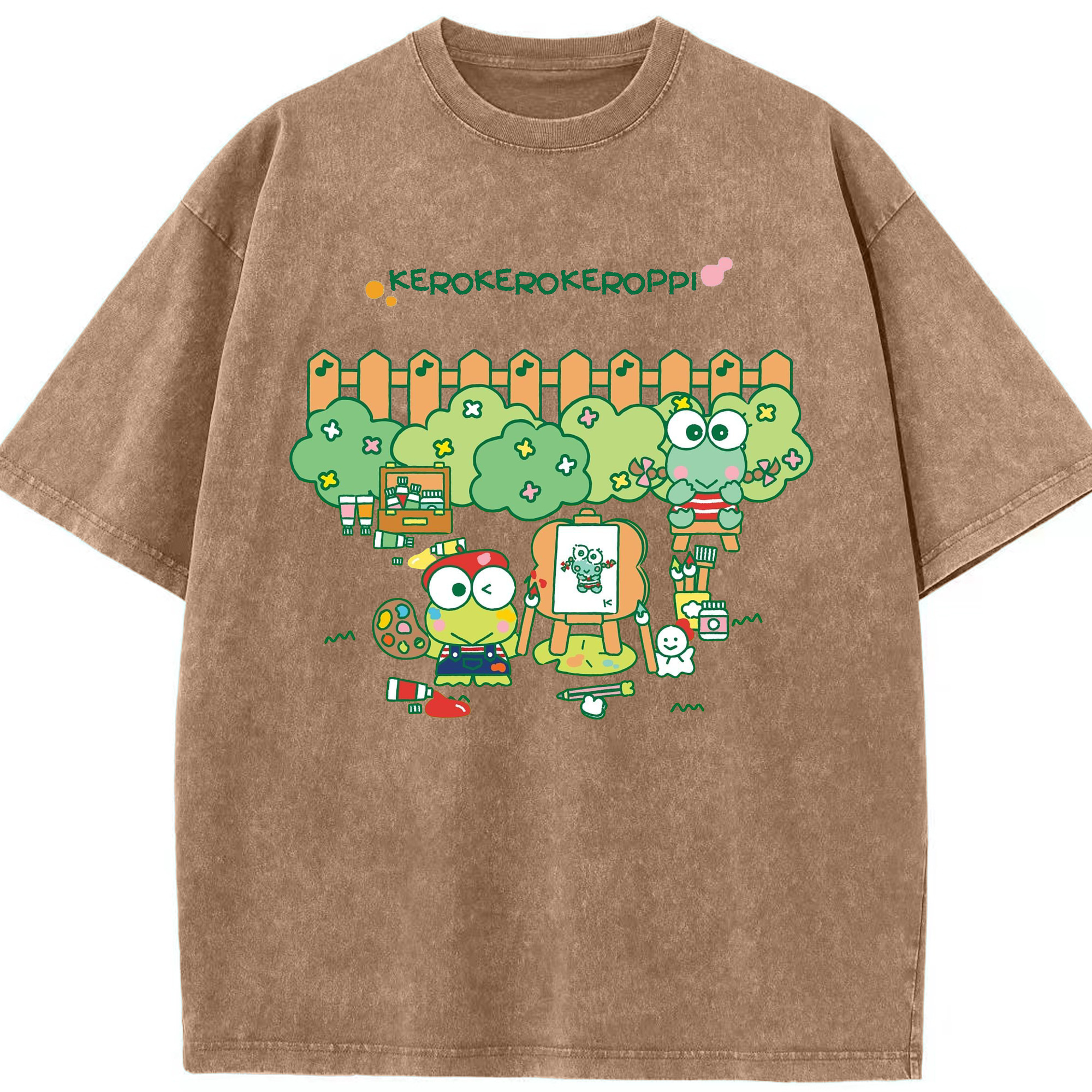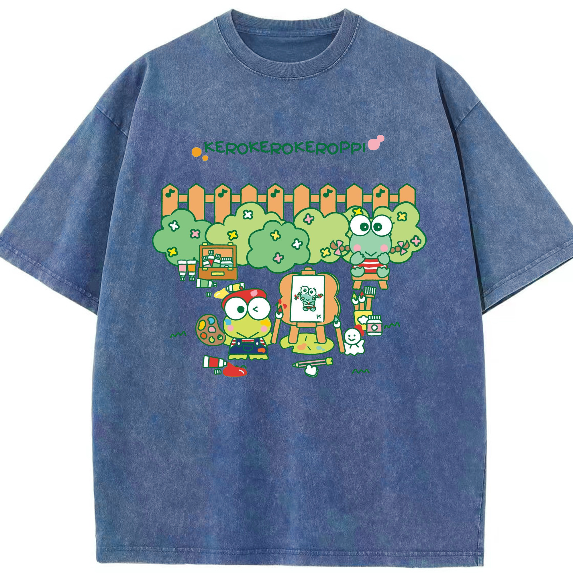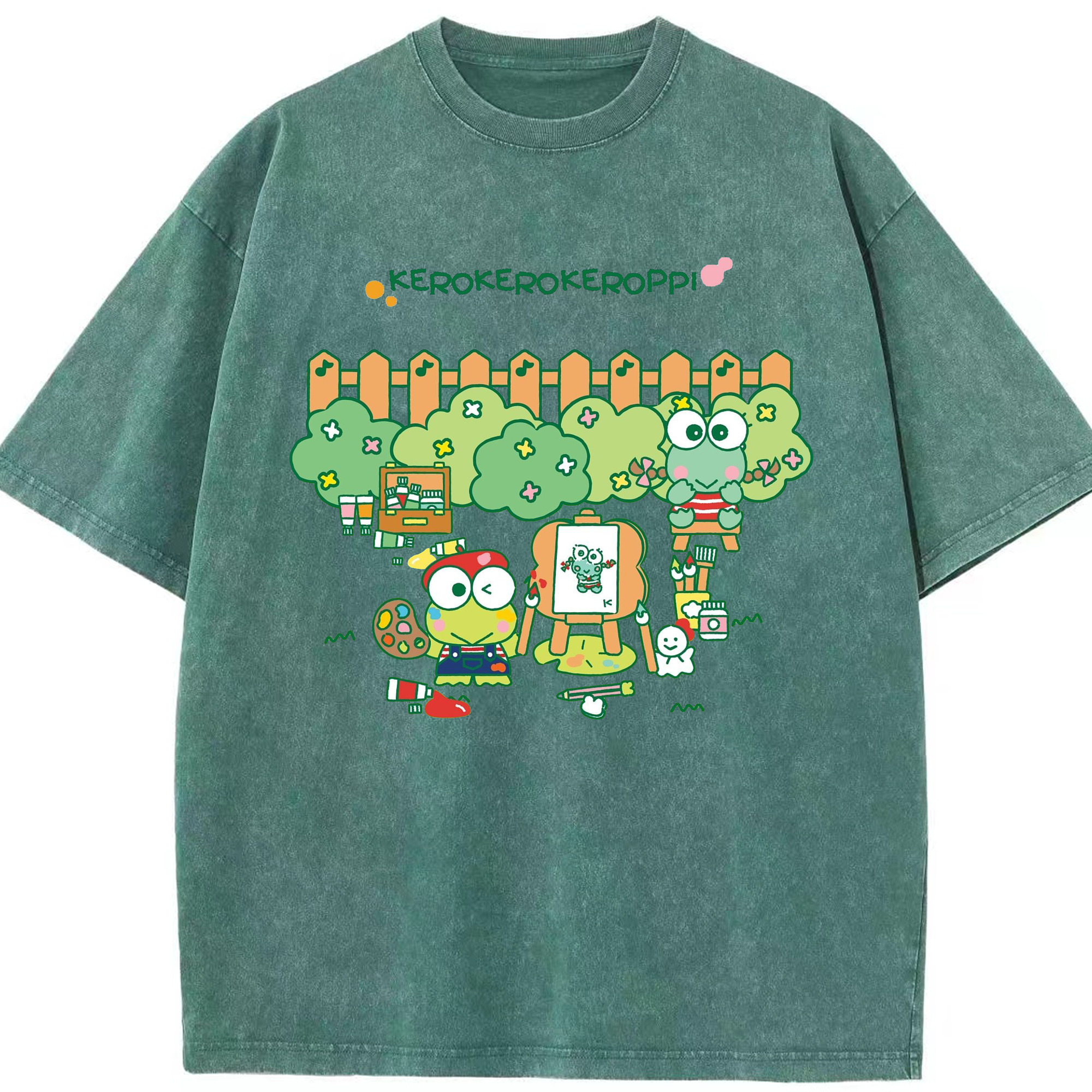 とってもキュートなけろけろけろっぴ - 綿100% 半袖Tシャツ ・ フロントプリント ・ 快適 通気性 ・ 日常使い 散歩 スポーツ用