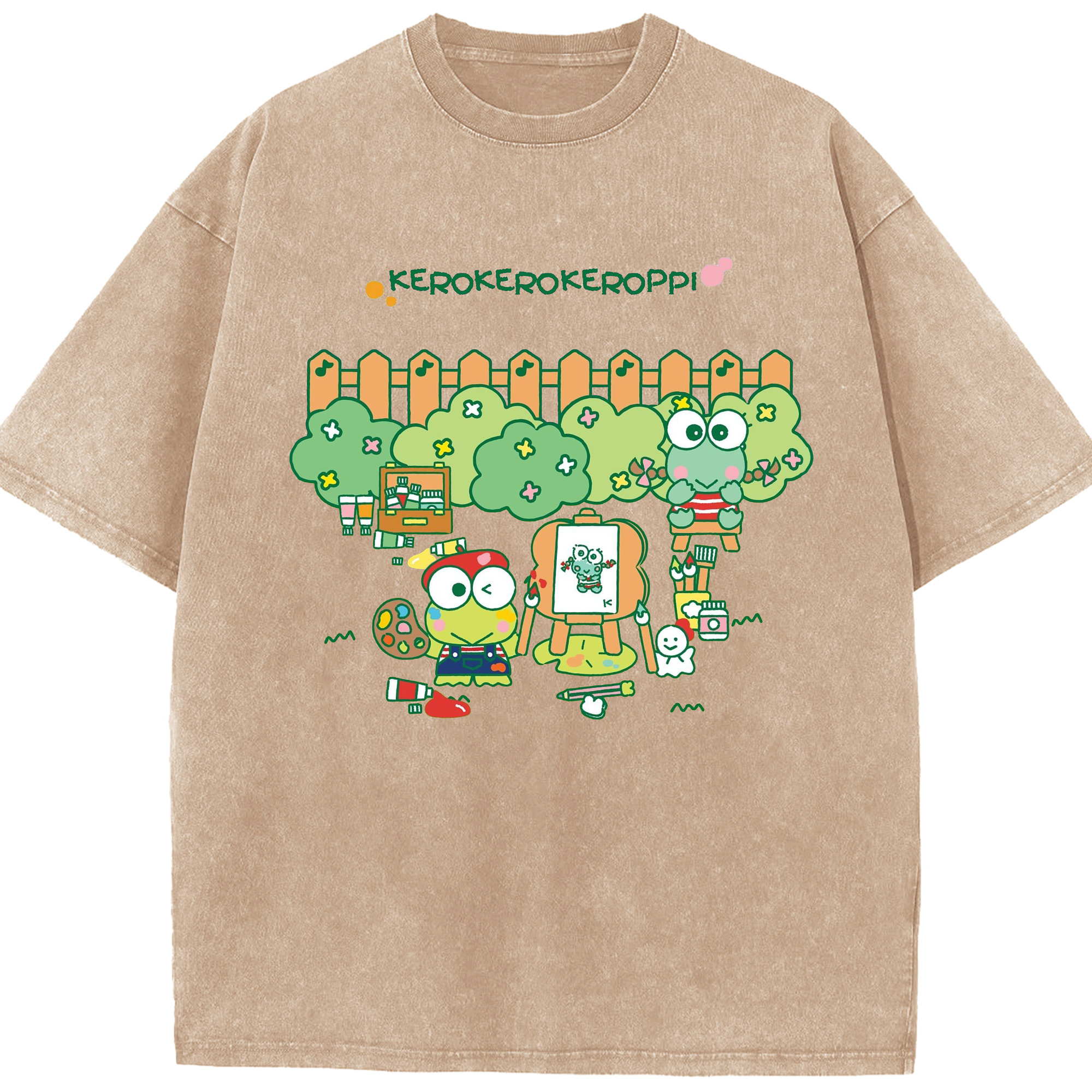 サンリオファミリー新作 - 綿100% ヴィンテージ風 半袖Tシャツ ・ フロントプリント ・ 柔らか肌触り ・ 通気性 快適 ・ スポーツ カジュアル 外出用