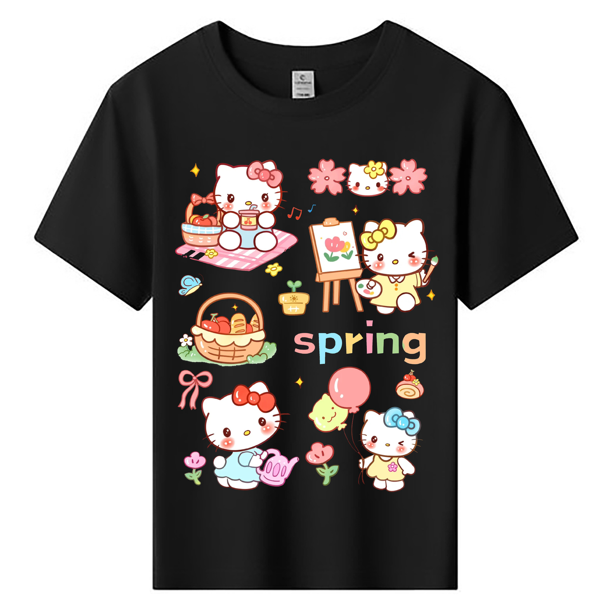 卒業シーズン×サンリオ - 綿100% キッズTシャツ ・ フロントプリント ・ 快適 通気性 ・ スポーツ カジュアル 散歩用