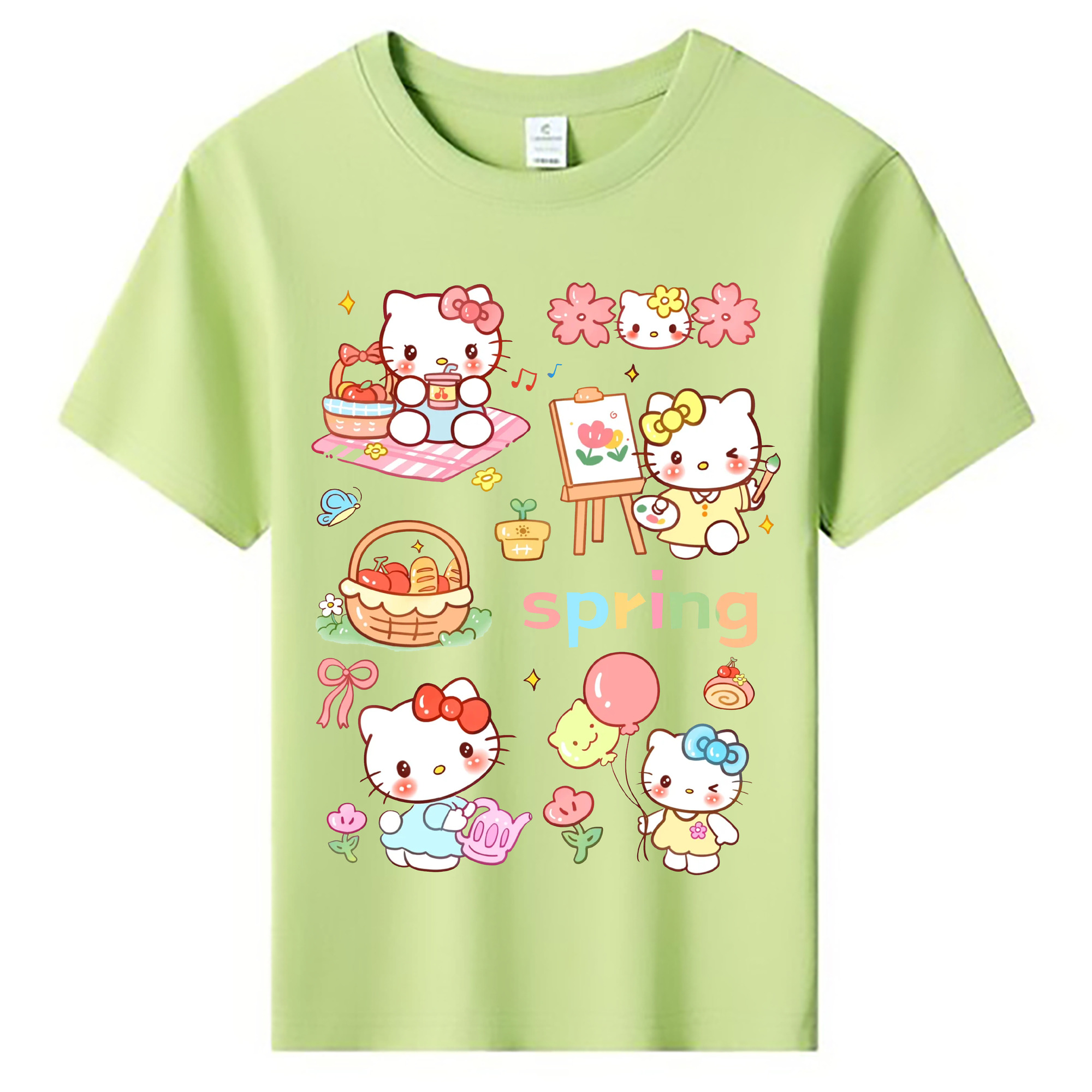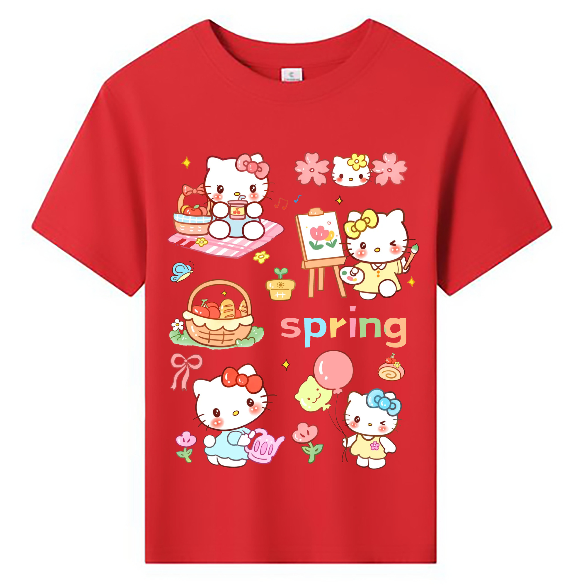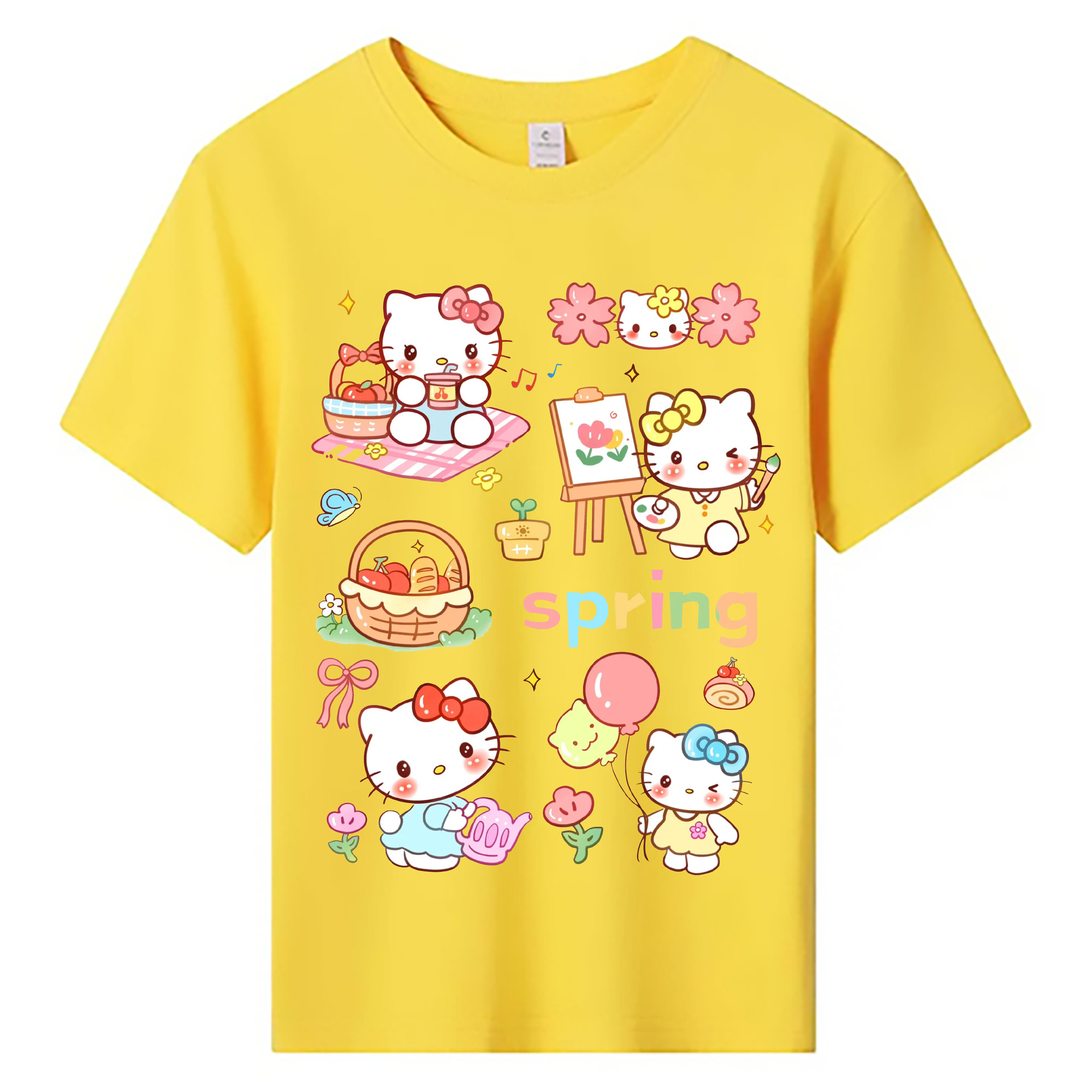 遊び心満載のハローキティ - 綿100% キッズTシャツ ・ フロントプリント ・ 快適 通気性 ・ スポーツ カジュアル 散歩用
