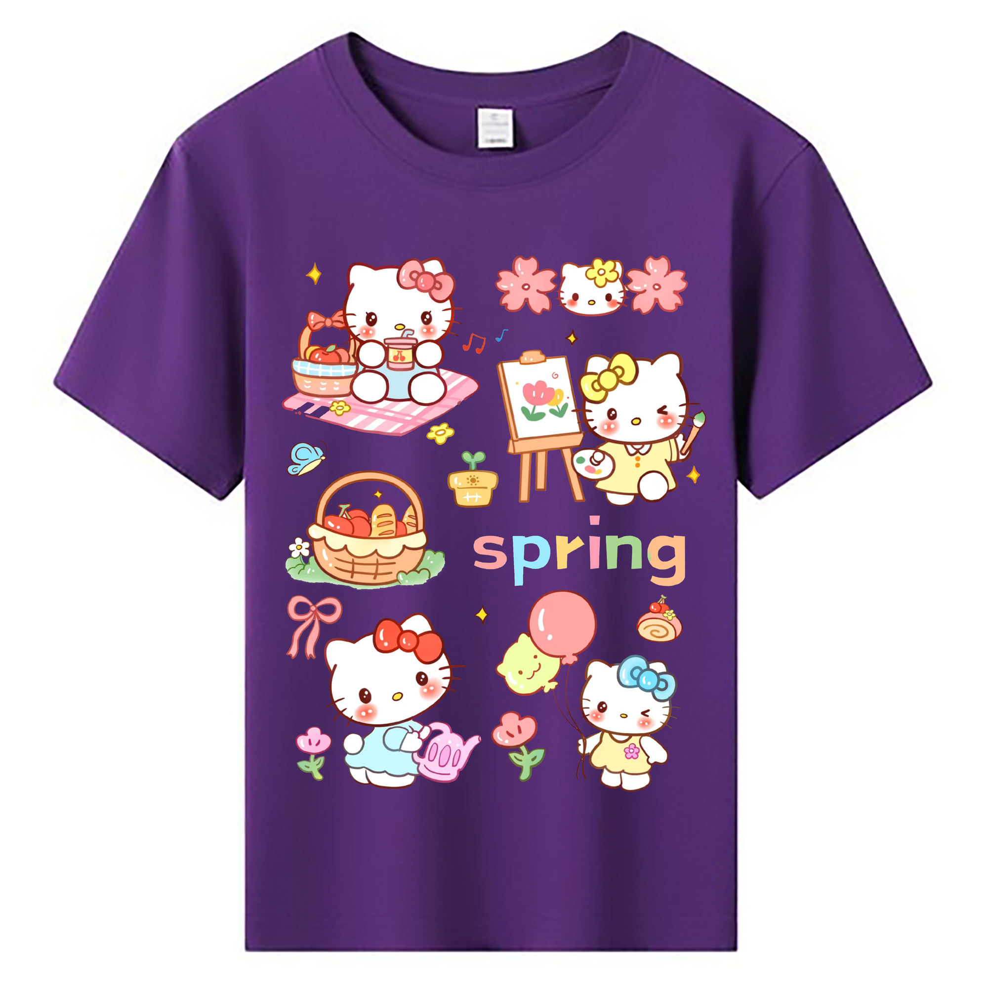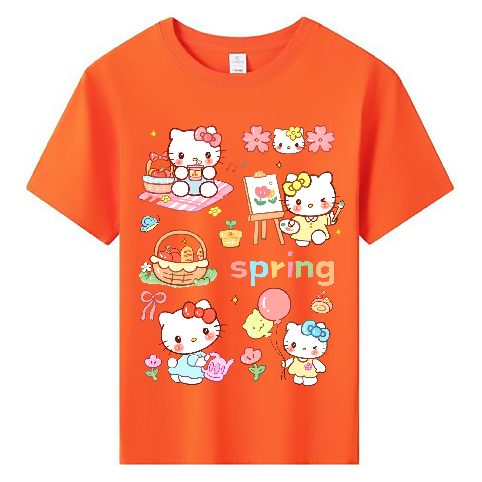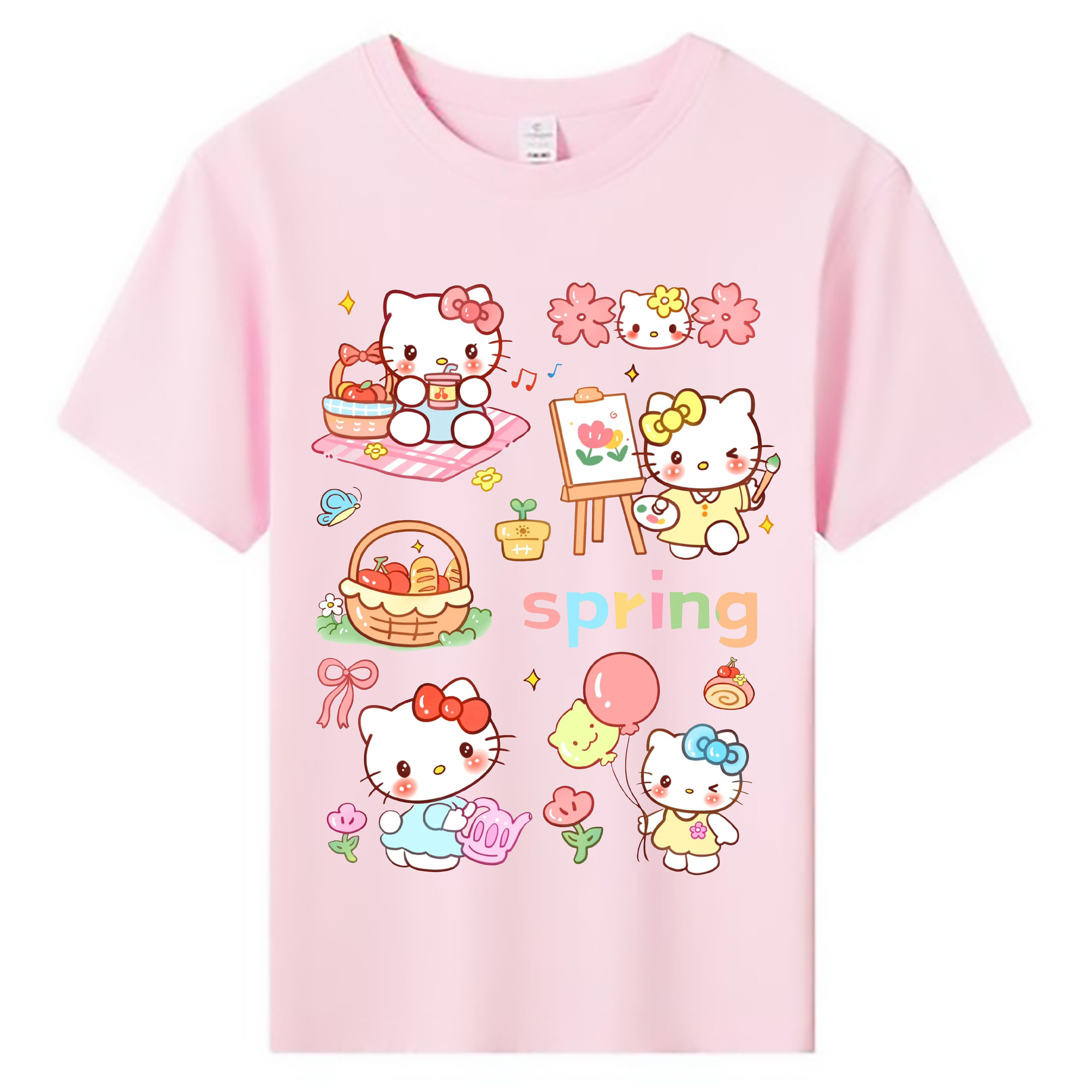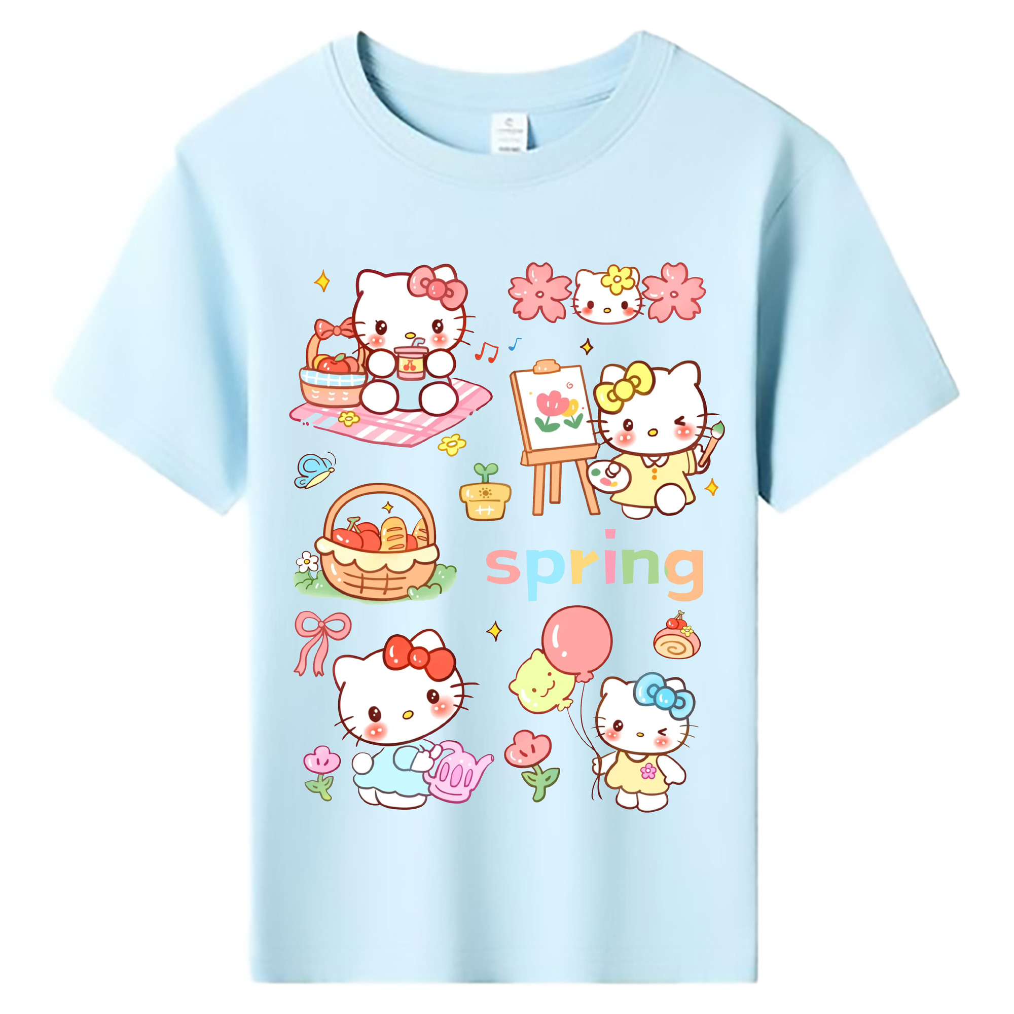 遊び心満載のハローキティ - 綿100% キッズTシャツ ・ フロントプリント ・ 快適 通気性 ・ スポーツ カジュアル 散歩用