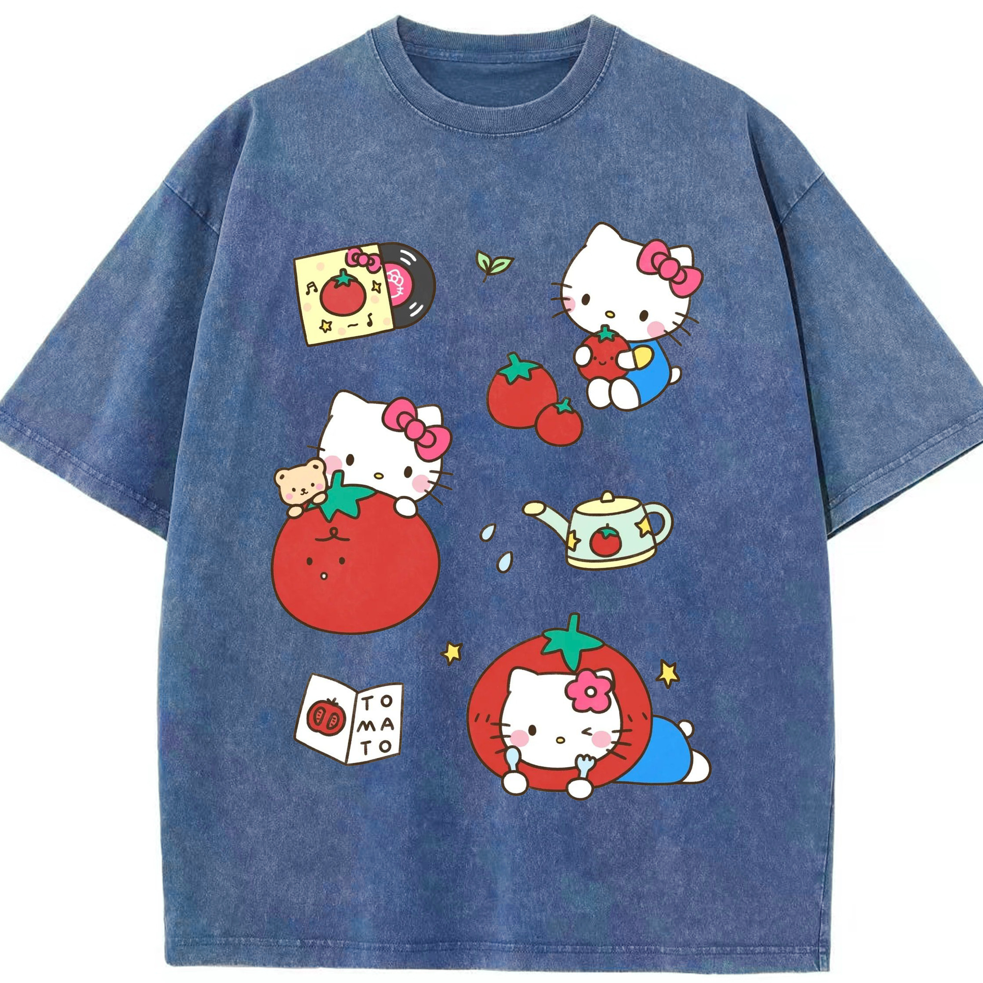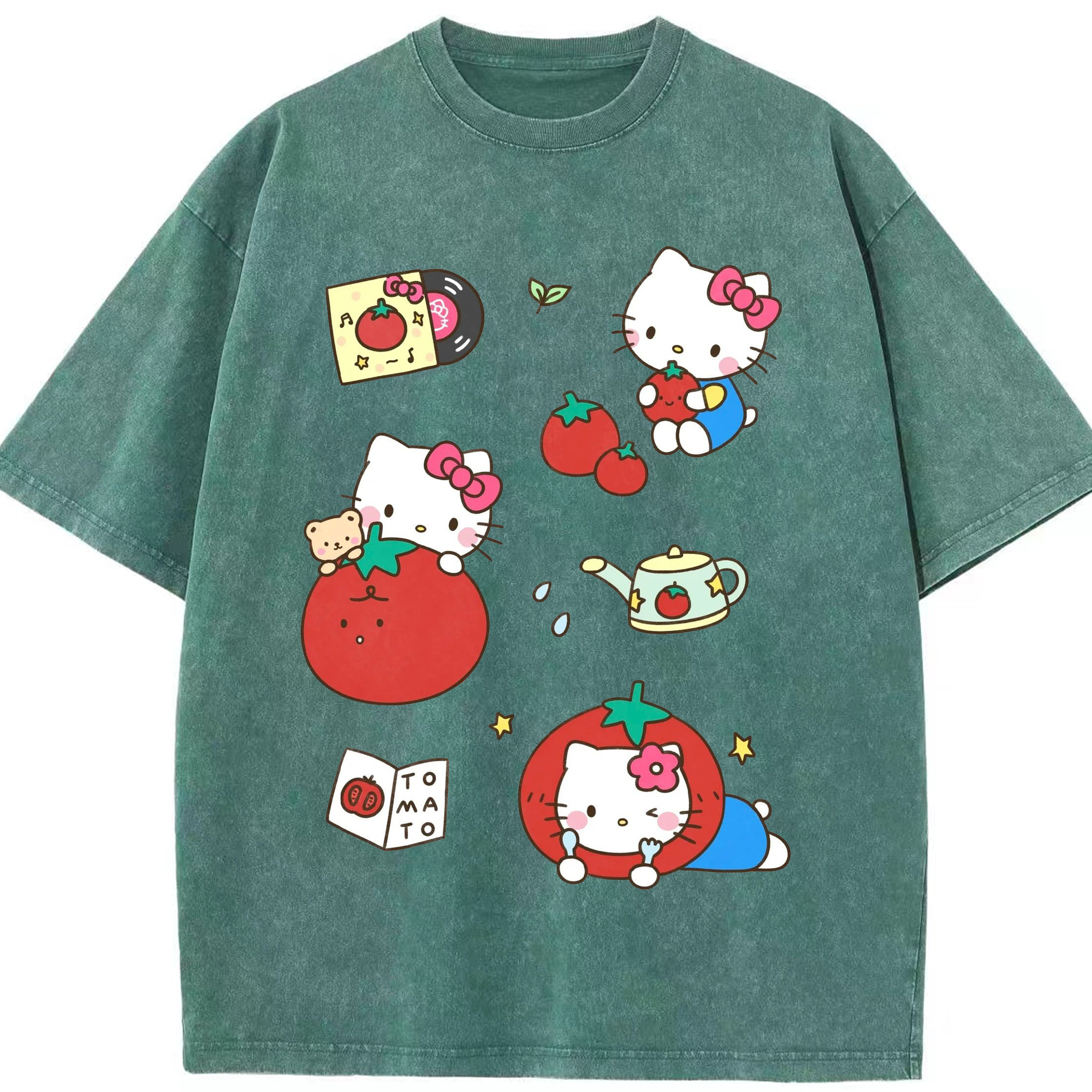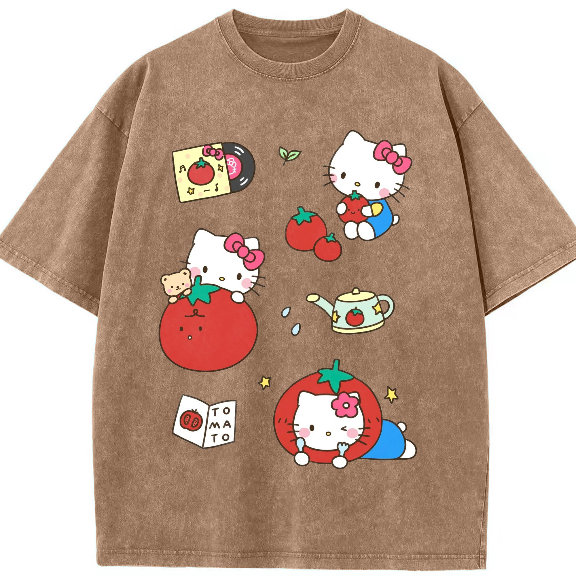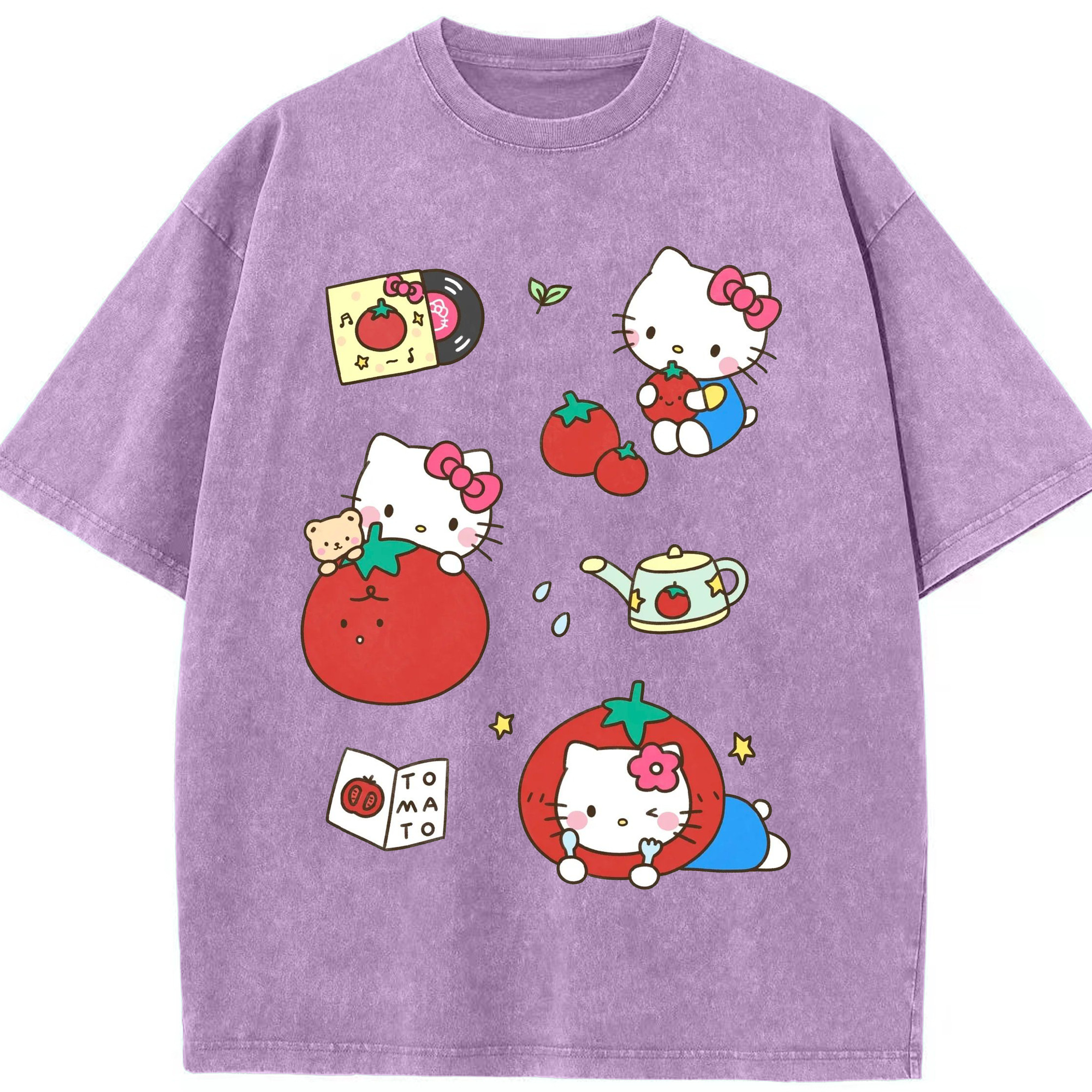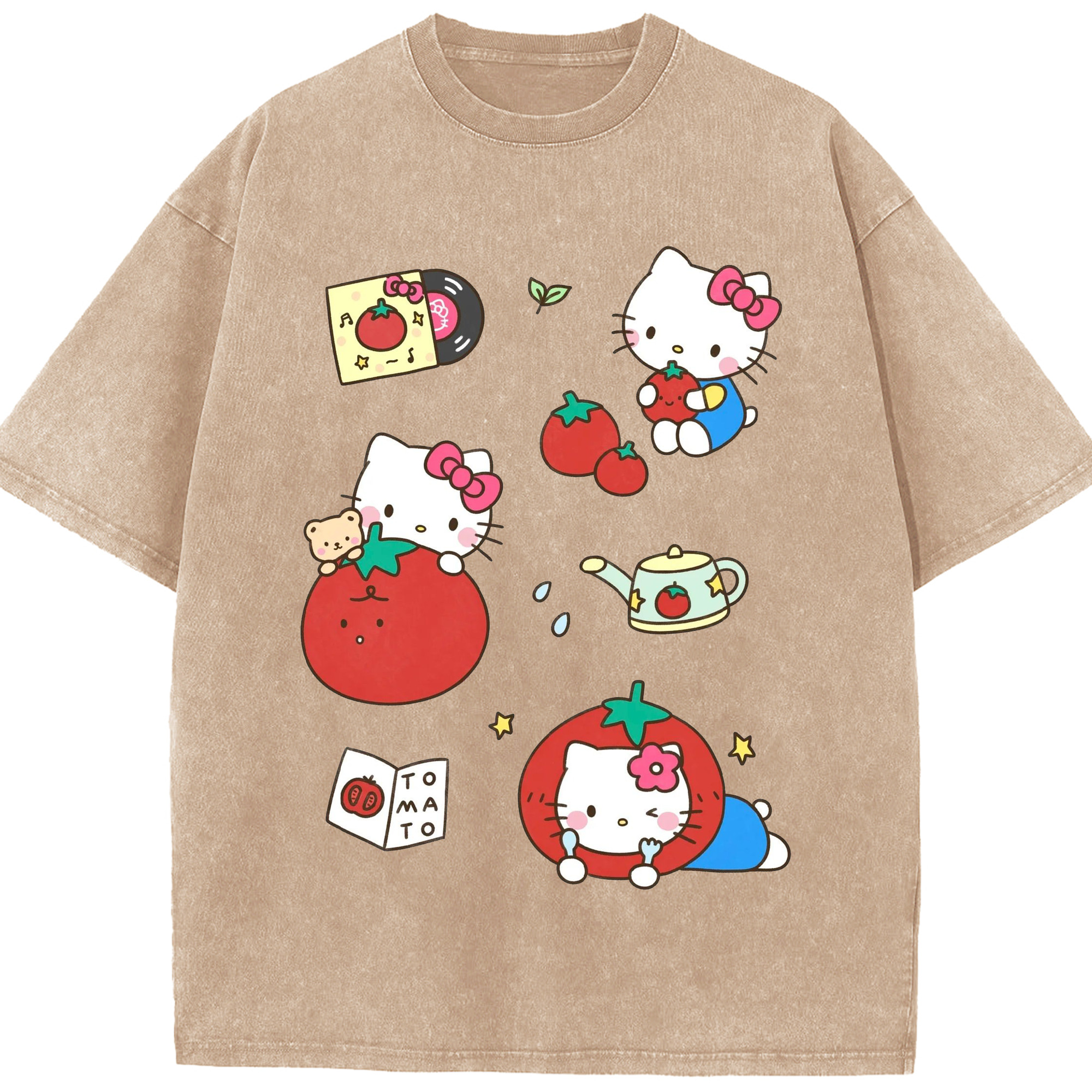 ハローキティ&ちいかわ - 綿100% ヴィンテージ風 半袖Tシャツ ・ フロントプリント ・ 柔らか肌触り ・ 通気性 快適 ・ スポーツ カジュアル 外出用