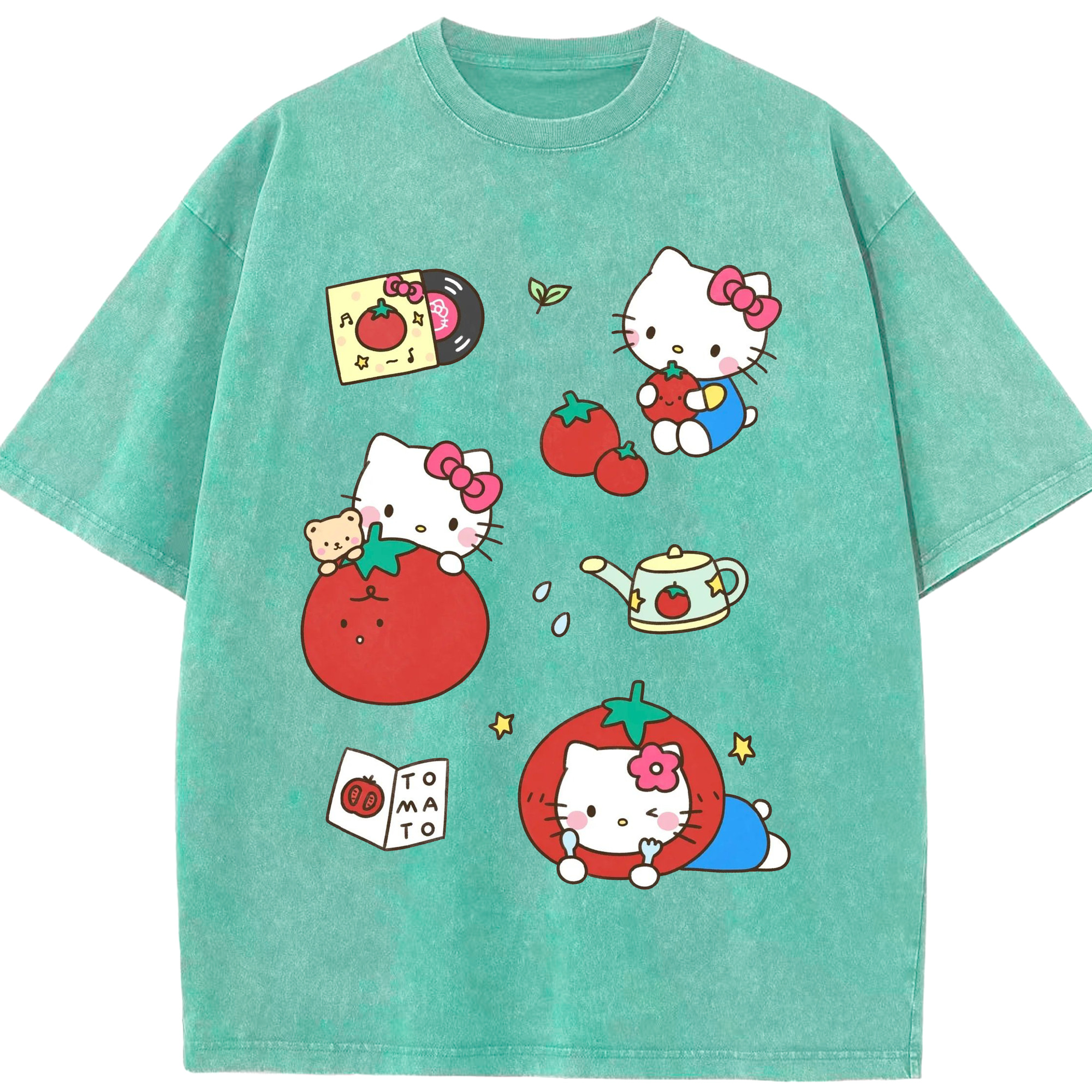 卒業シーズン×サンリオ - 綿100% ヴィンテージ風 半袖Tシャツ ・ フロントプリント ・ 柔らか肌触り ・ 通気性 快適 ・ スポーツ カジュアル 外出用