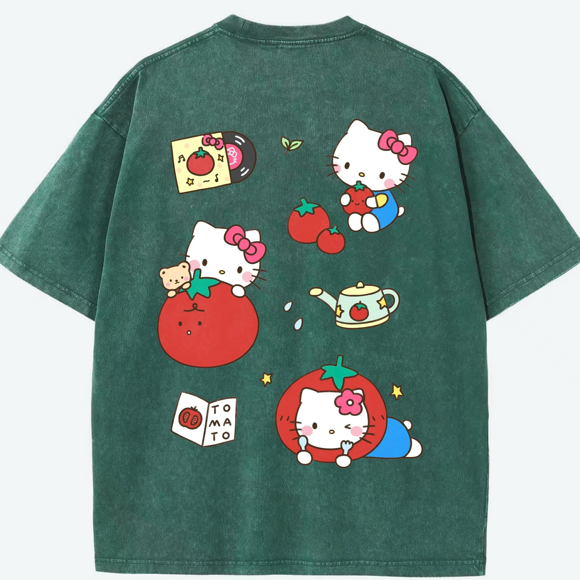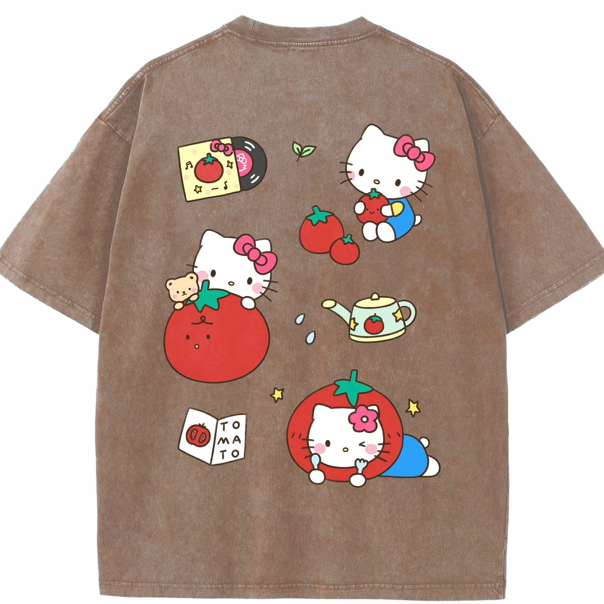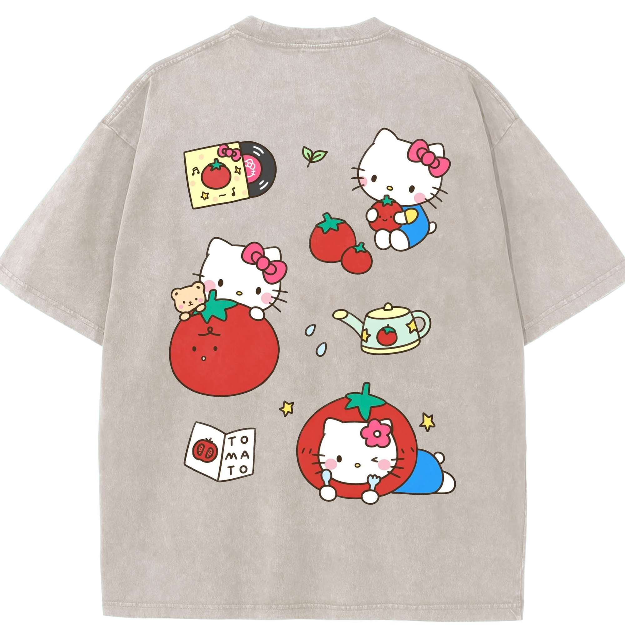 サンリオ - 綿100% ヴィンテージ風 半袖Tシャツ ・ 背面プリント ・ 柔らか肌触り ・ 通気性 快適 ・ スポーツ カジュアル 外出用