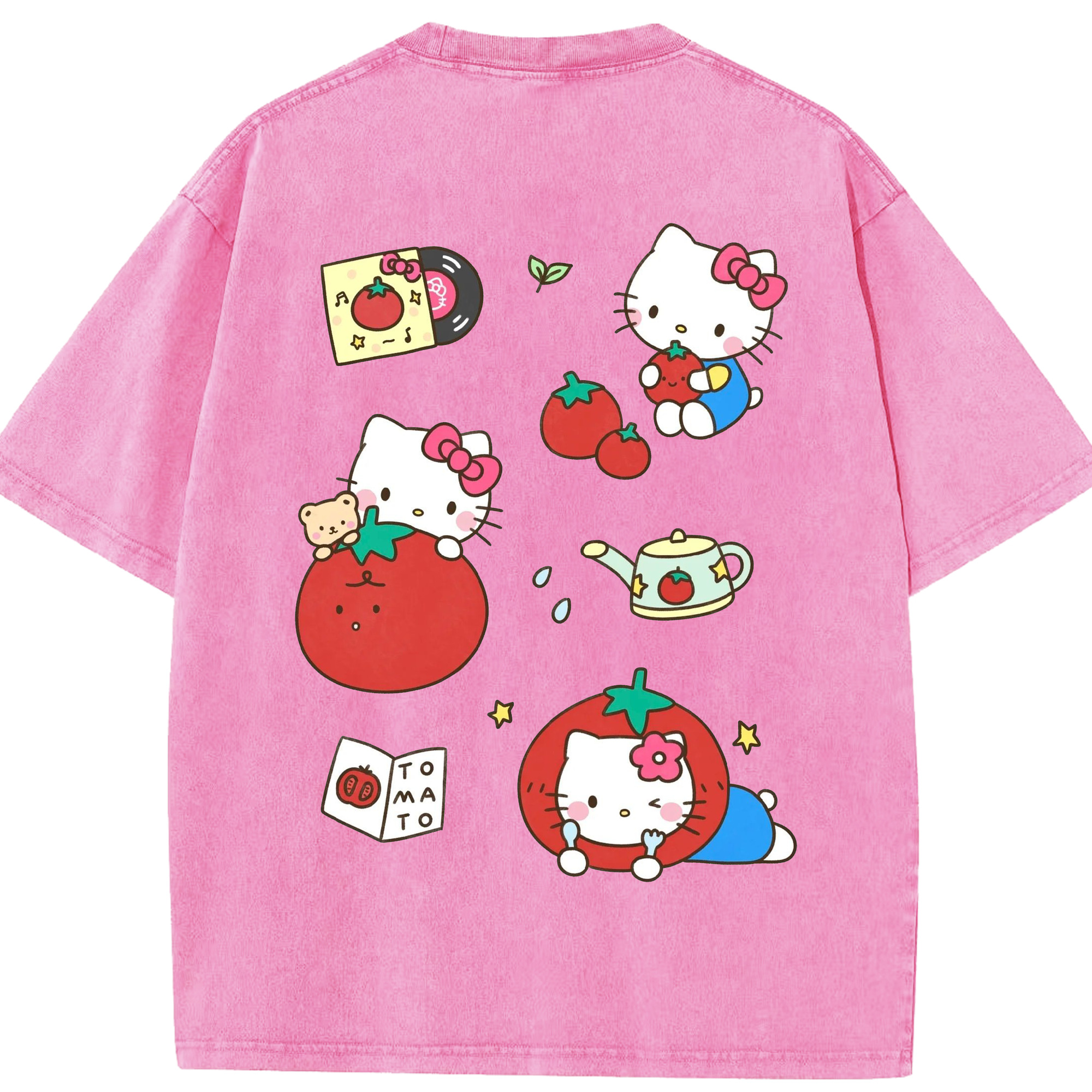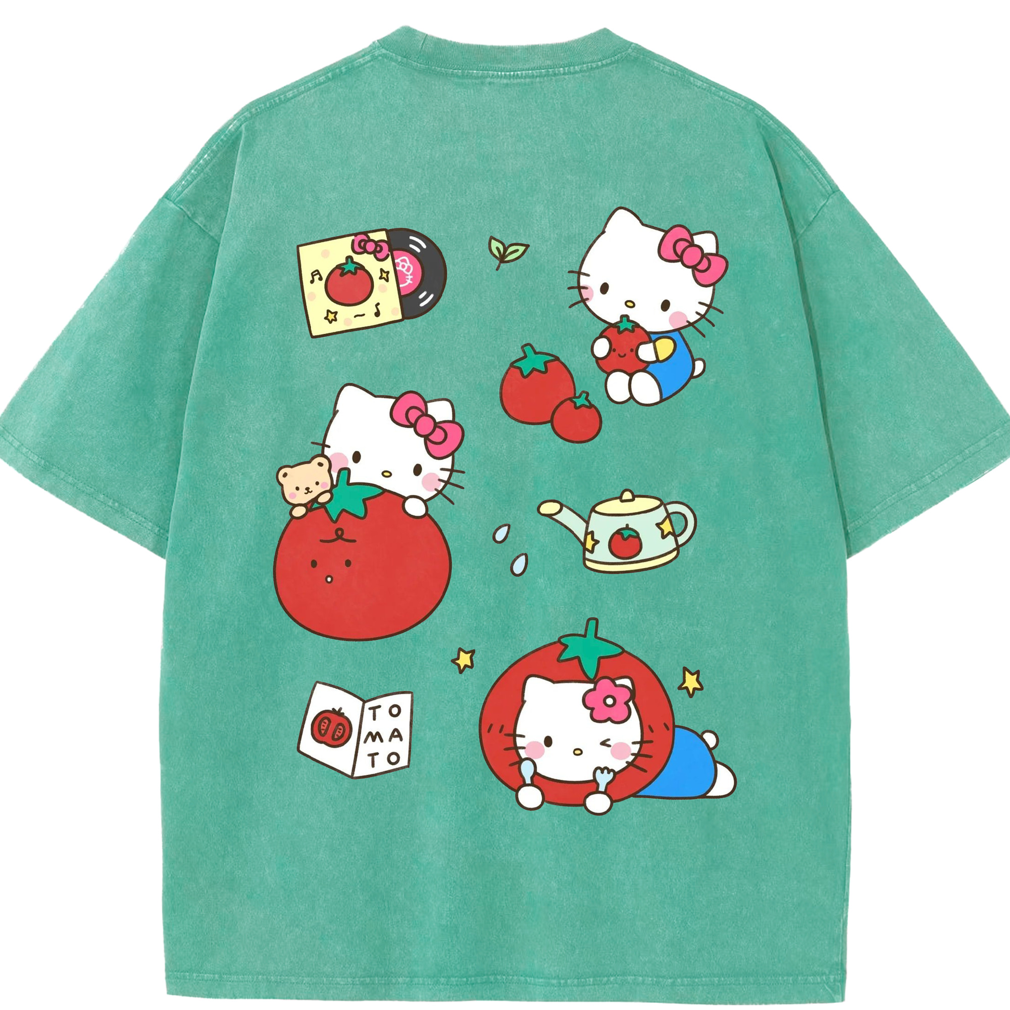 かわいい系サンリオ - 綿100% ヴィンテージ風 半袖Tシャツ ・ 背面プリント ・ 柔らか肌触り ・ 通気性 快適 ・ スポーツ カジュアル 外出用
