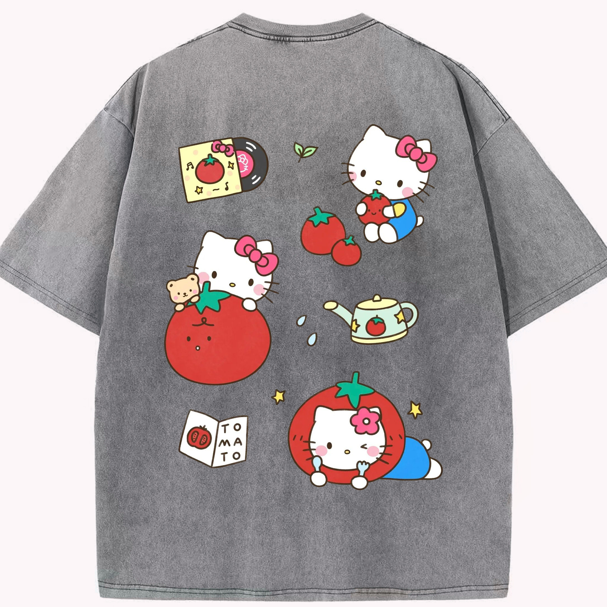 毎日着たい♪カジュアルサンリオ - 綿100% ヴィンテージ風 半袖Tシャツ ・ 背面プリント ・ 柔らか肌触り ・ 通気性 快適 ・ スポーツ カジュアル 外出用