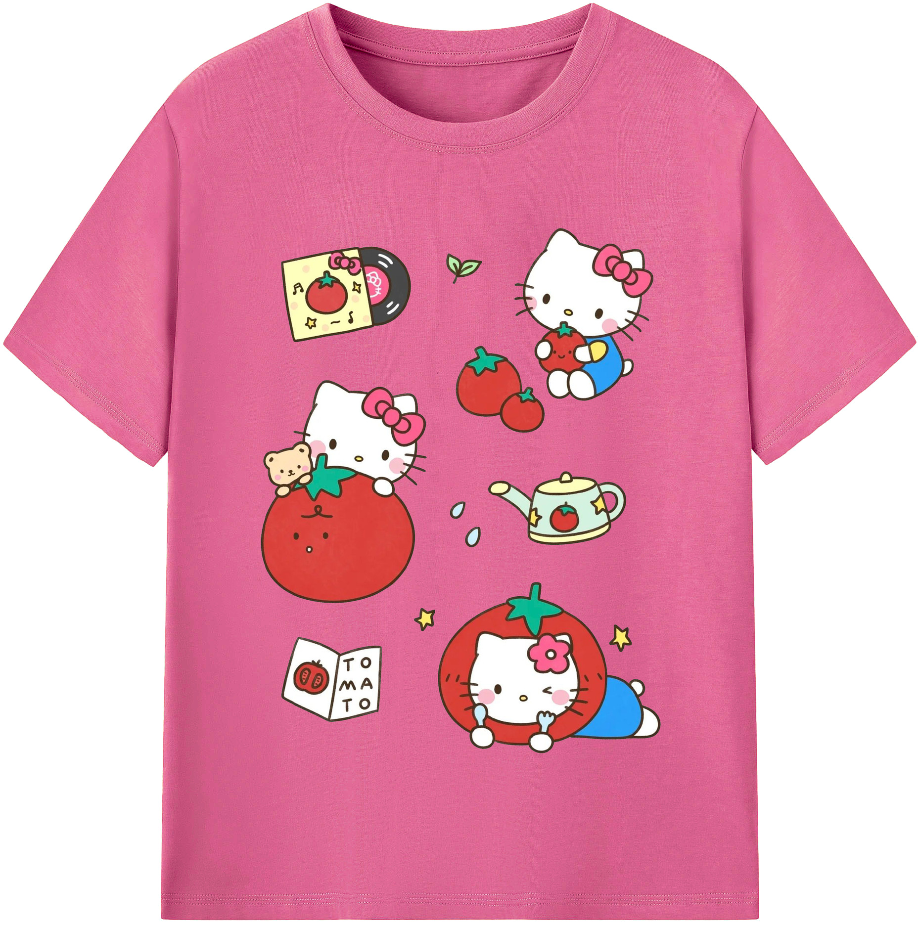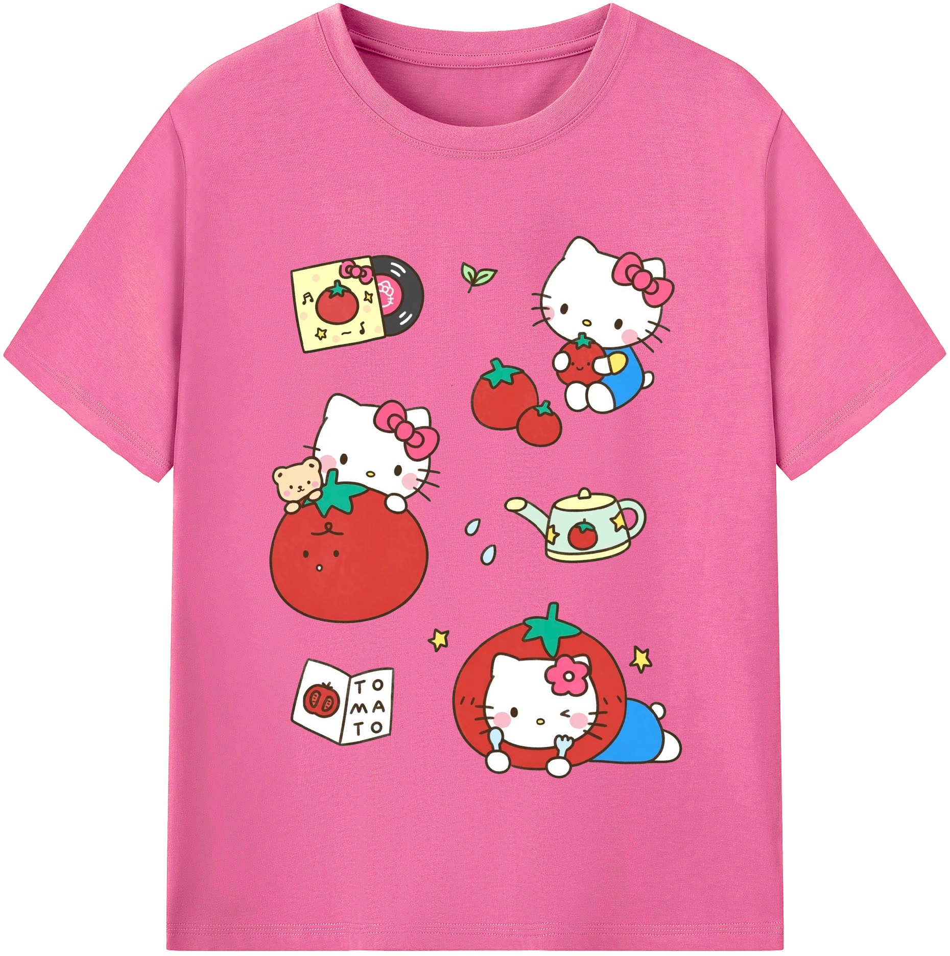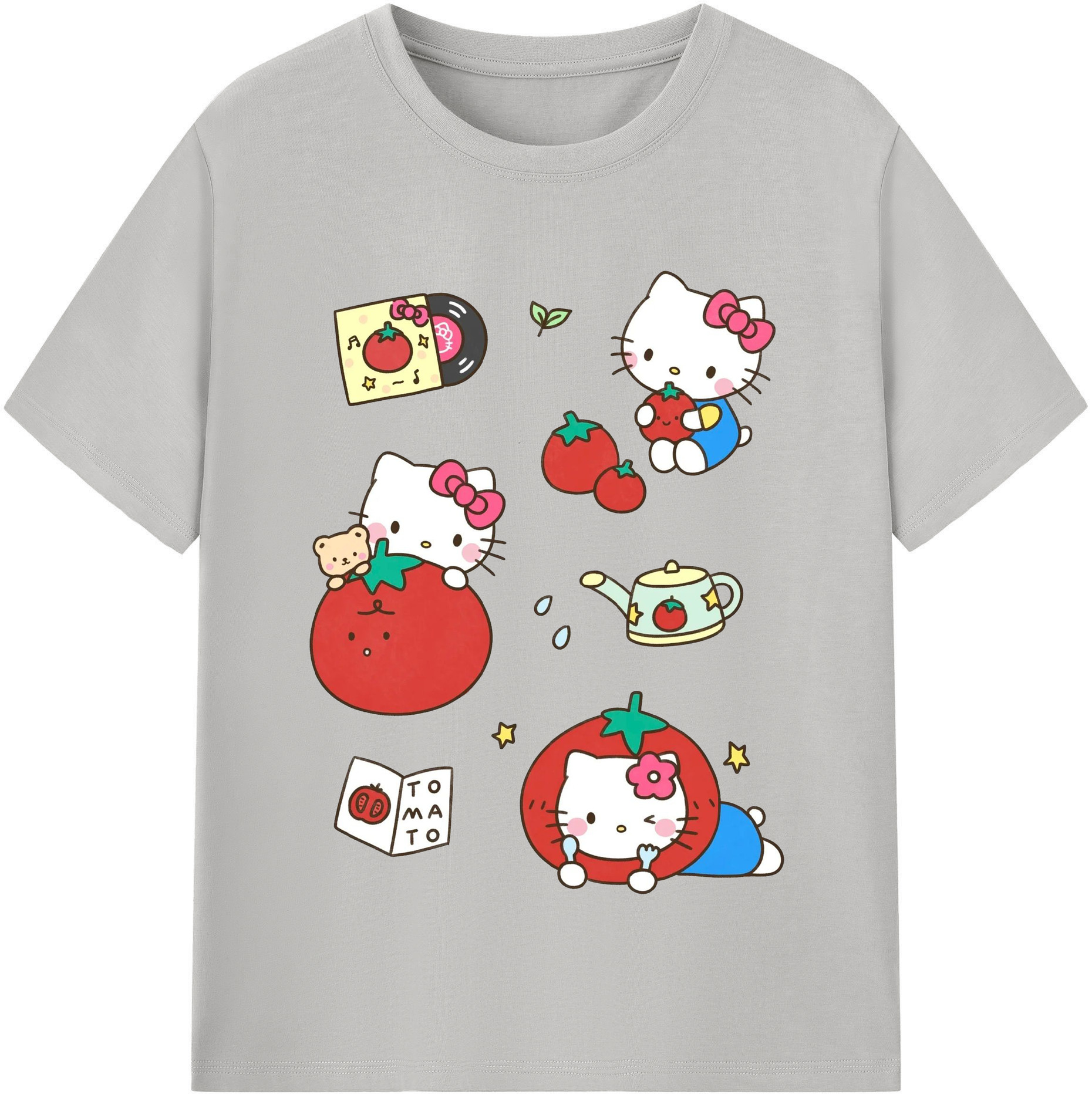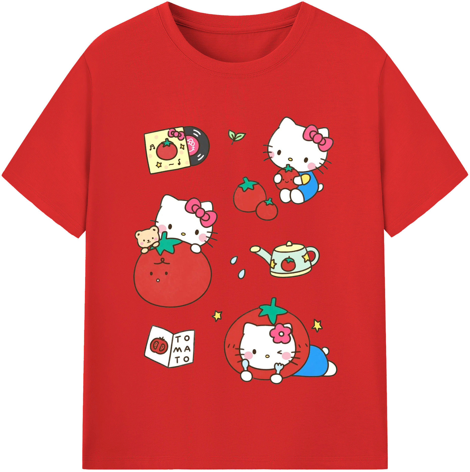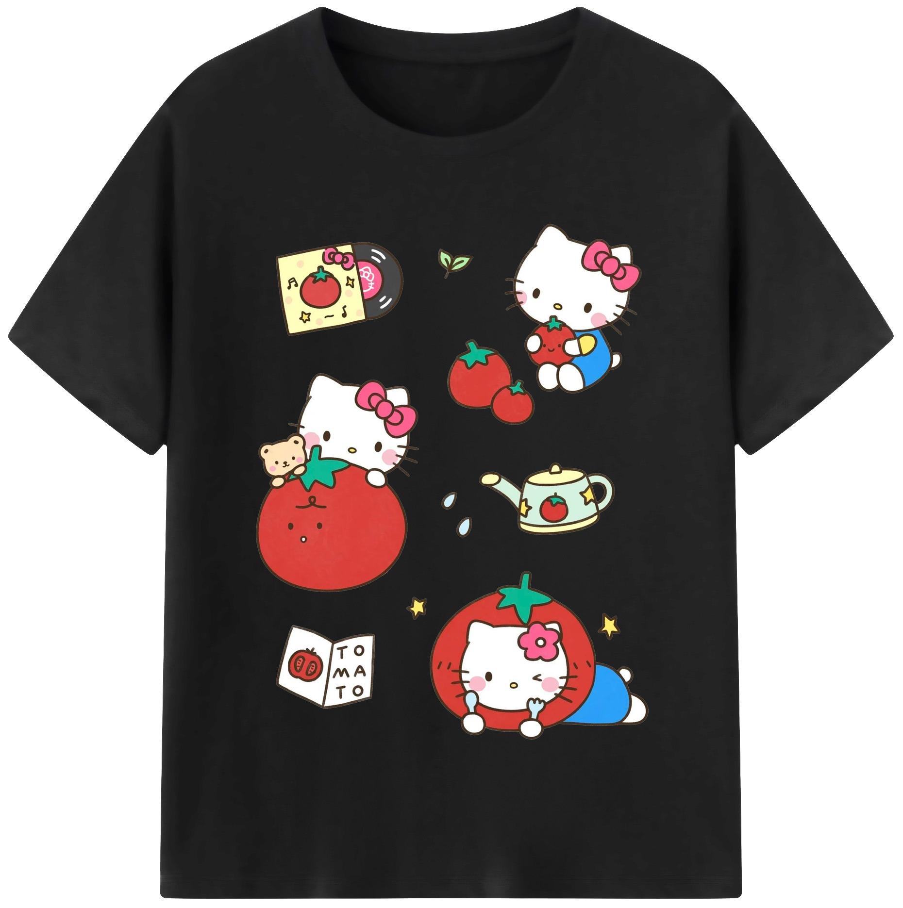 とびきりキュートなハローキティ - レディースカジュアルプリントTシャツ ・ 綿100% ・ クルーネック ・ フロントプリント ・ 柔らかく快適 ・ フィットネス カジュアル 旅行用