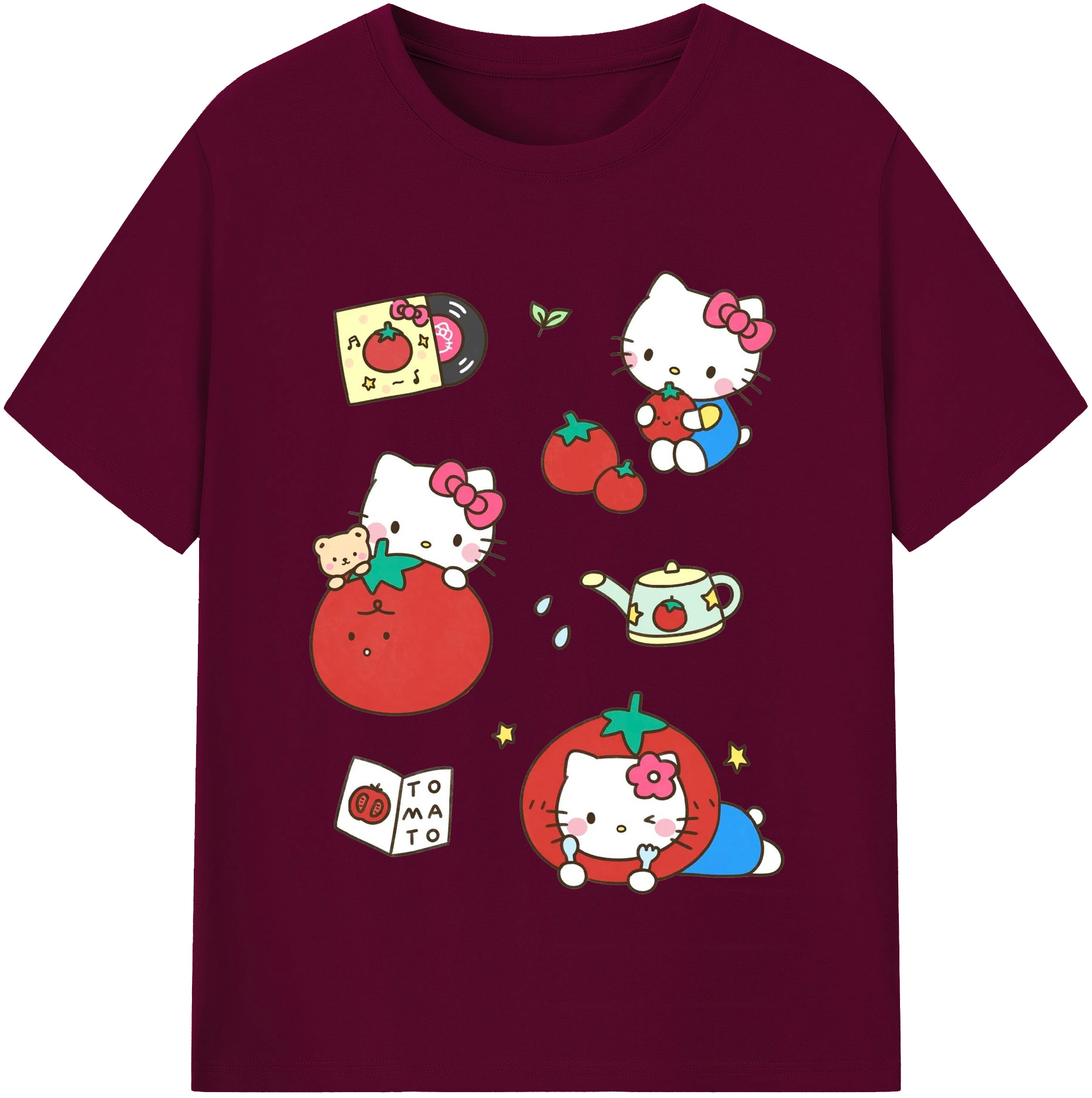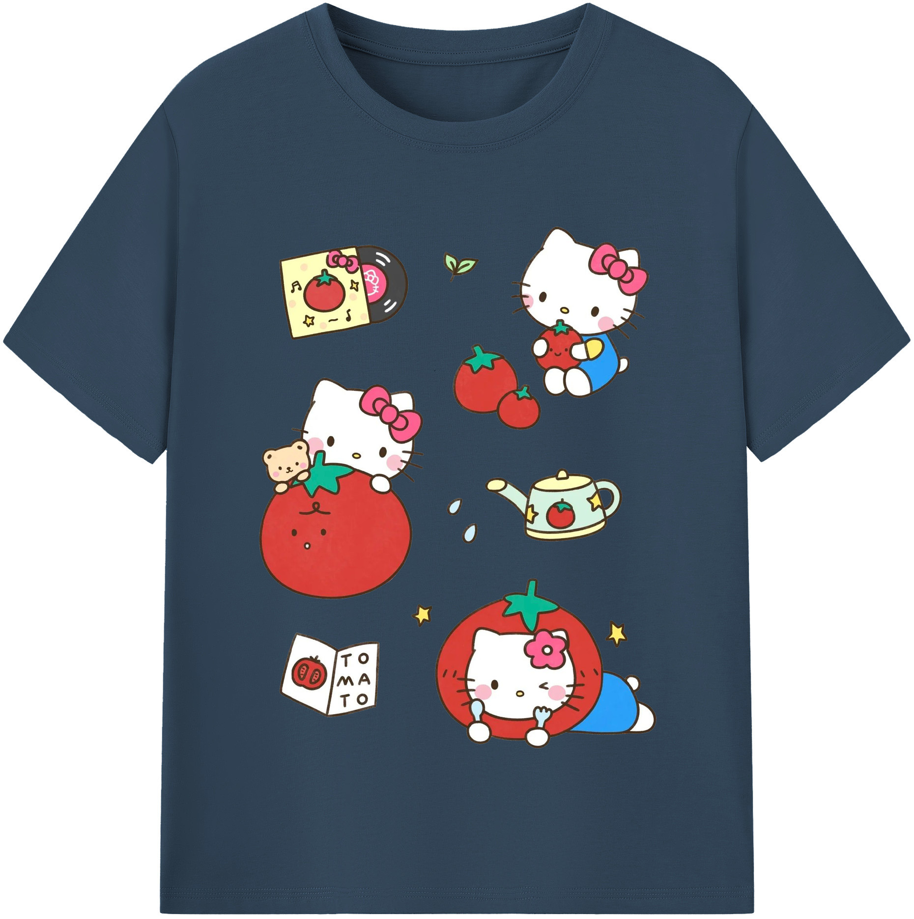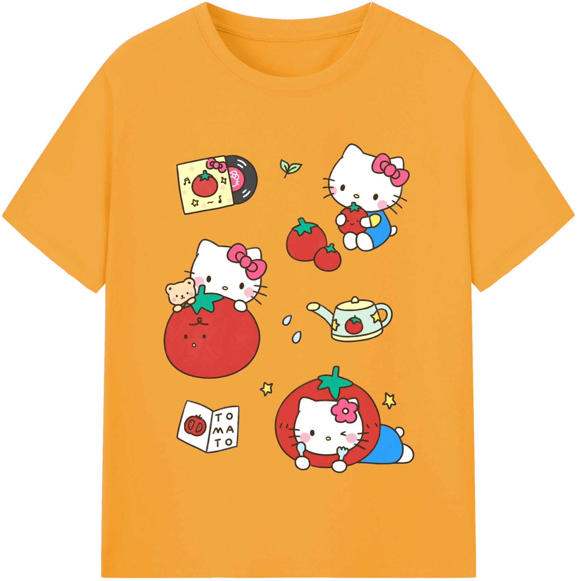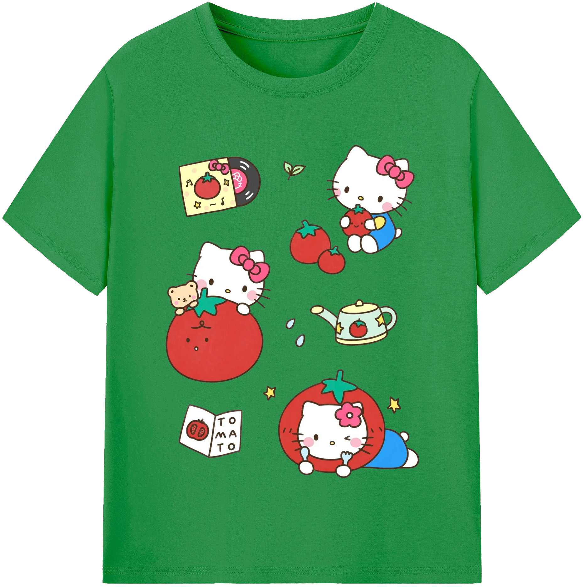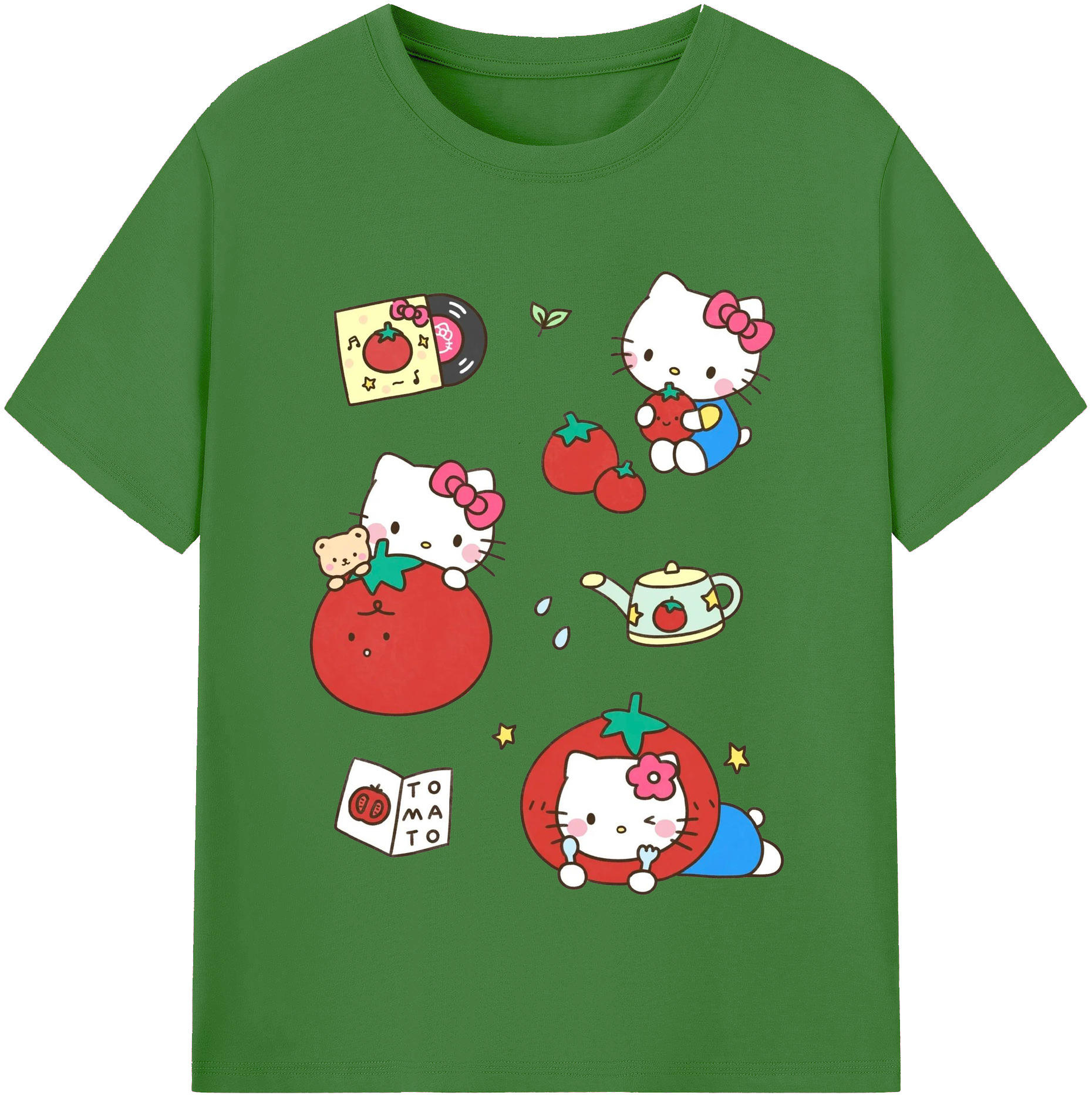 とびきりキュートなハローキティ - レディースカジュアルプリントTシャツ ・ 綿100% ・ クルーネック ・ フロントプリント ・ 柔らかく快適 ・ フィットネス カジュアル 旅行用