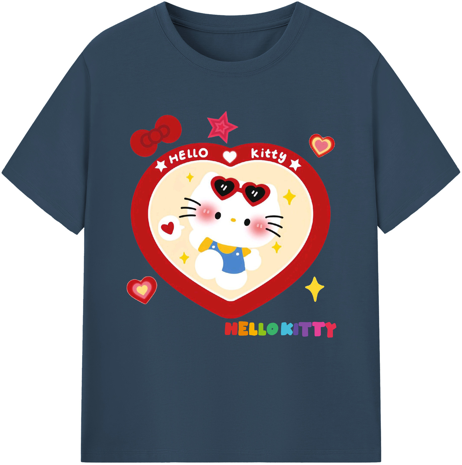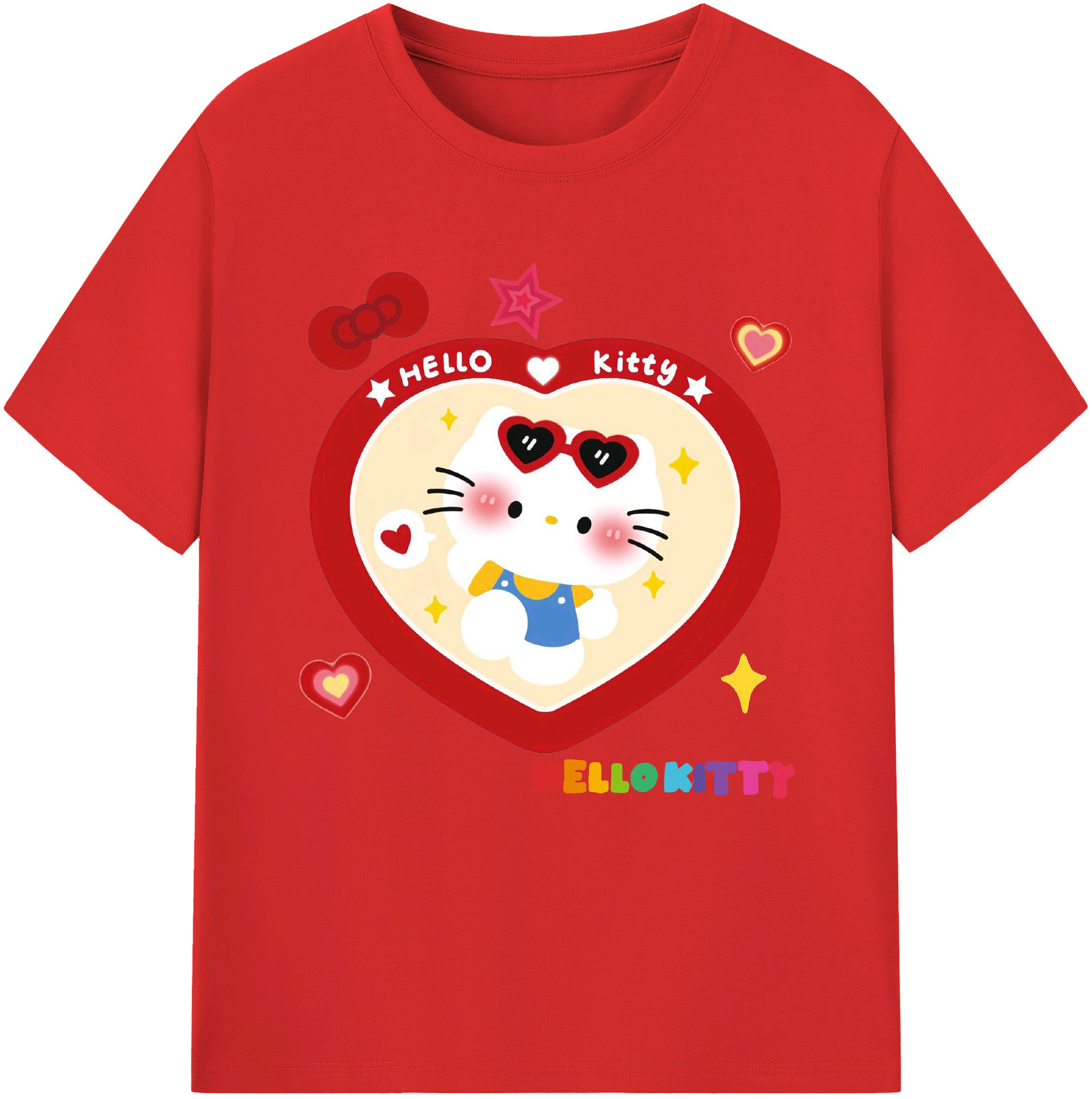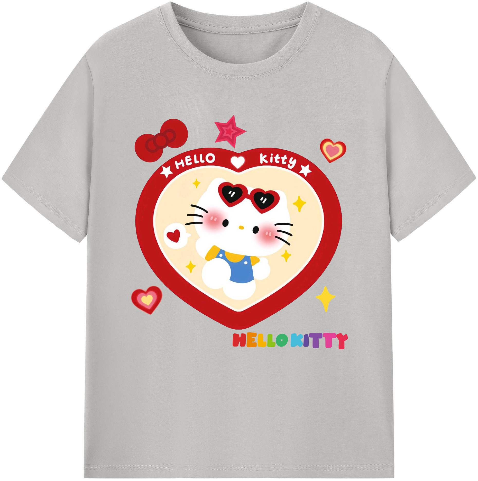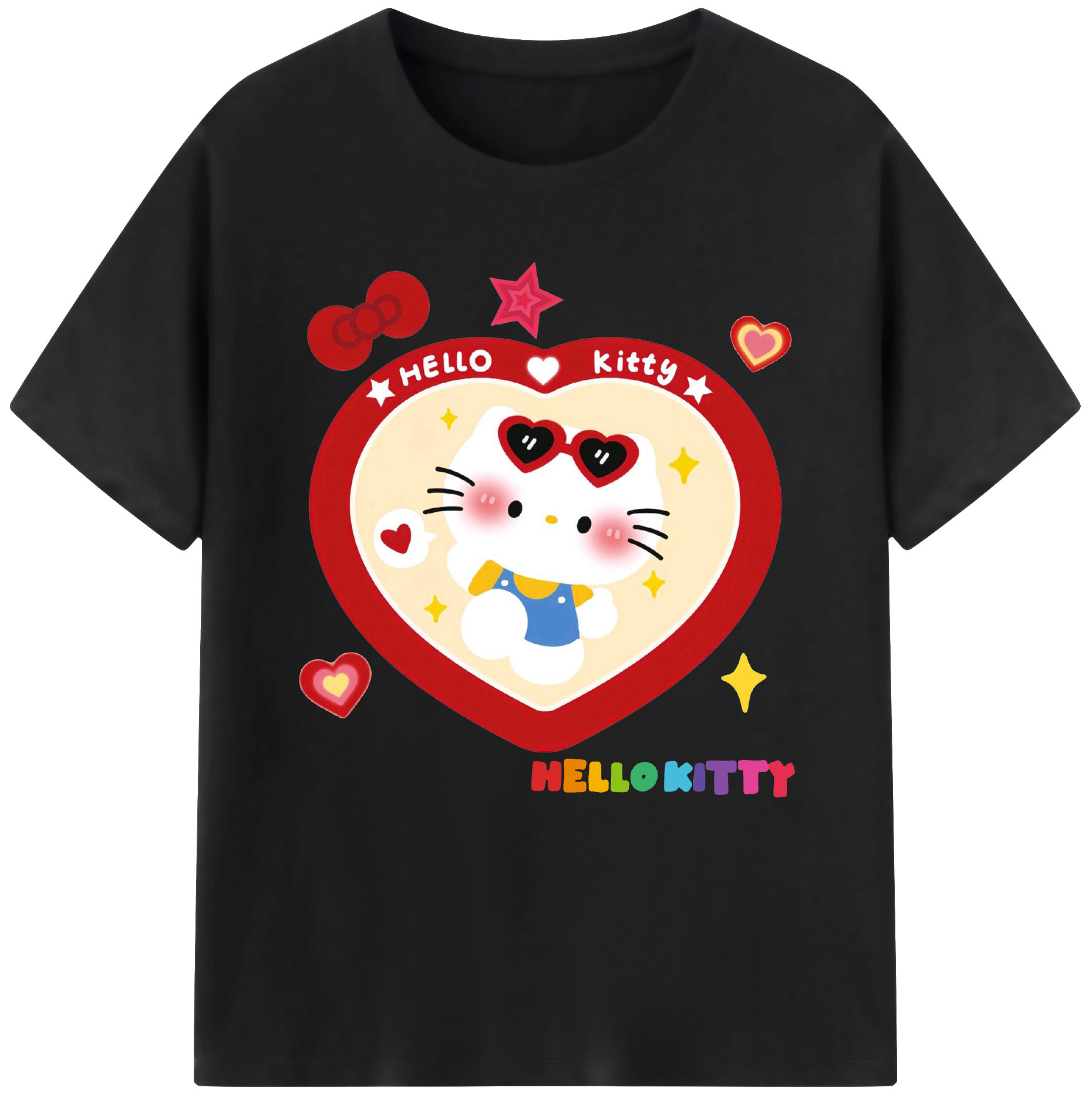 とびきりキュートなハローキティ - レディースカジュアルプリントTシャツ ・ 綿100% ・ クルーネック ・ フロントプリント ・ 柔らかく快適 ・ フィットネス カジュアル 旅行用