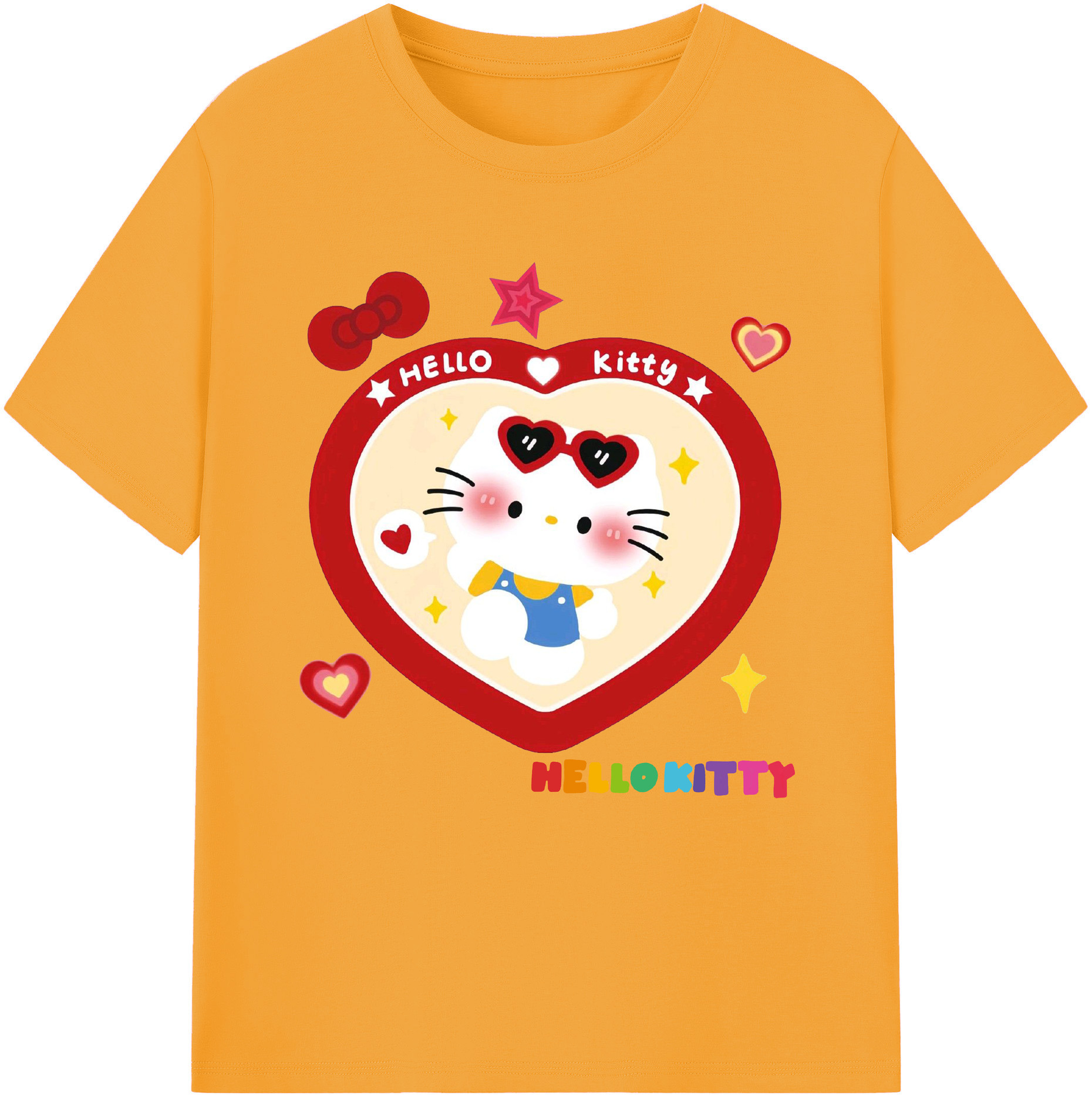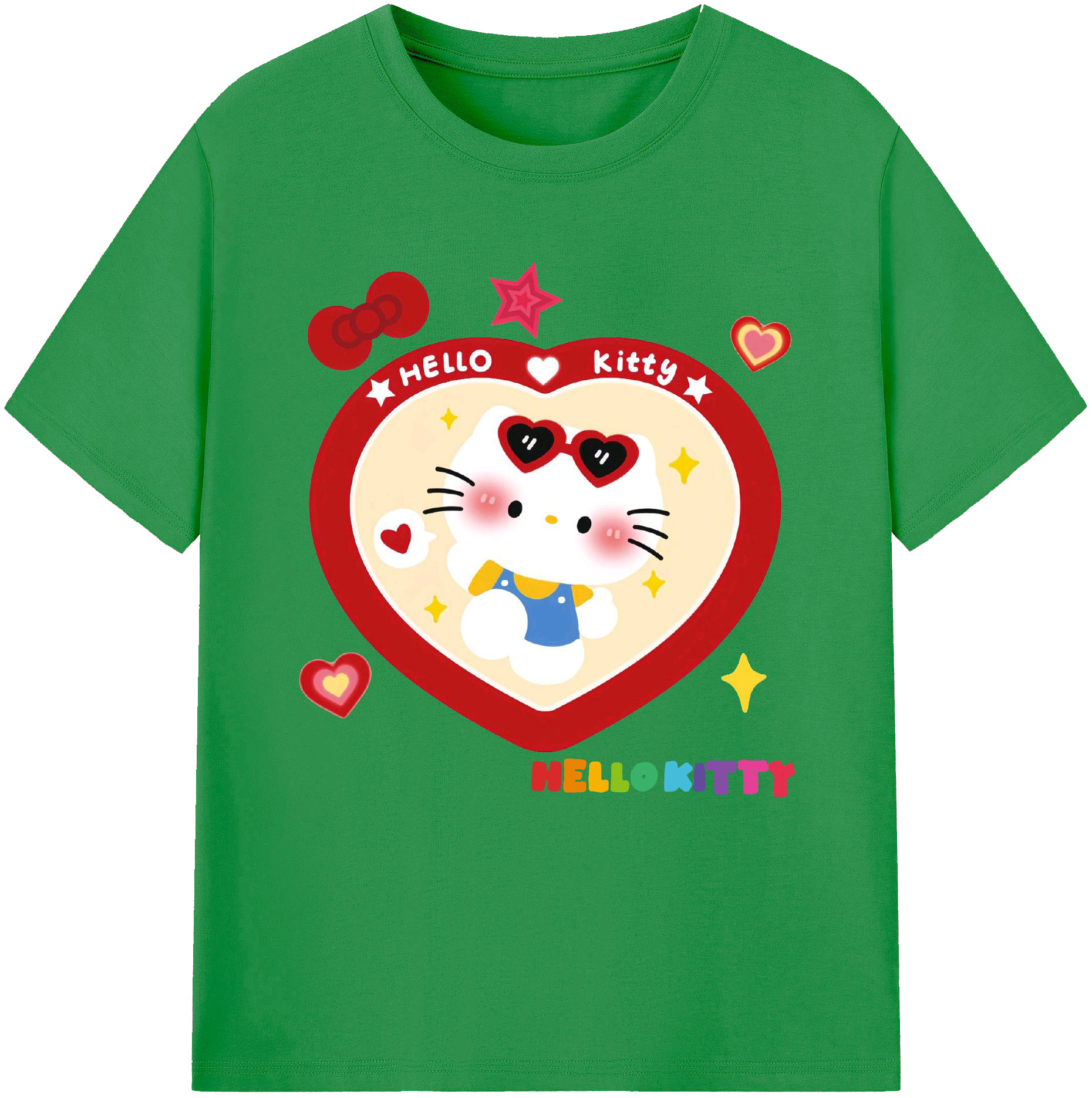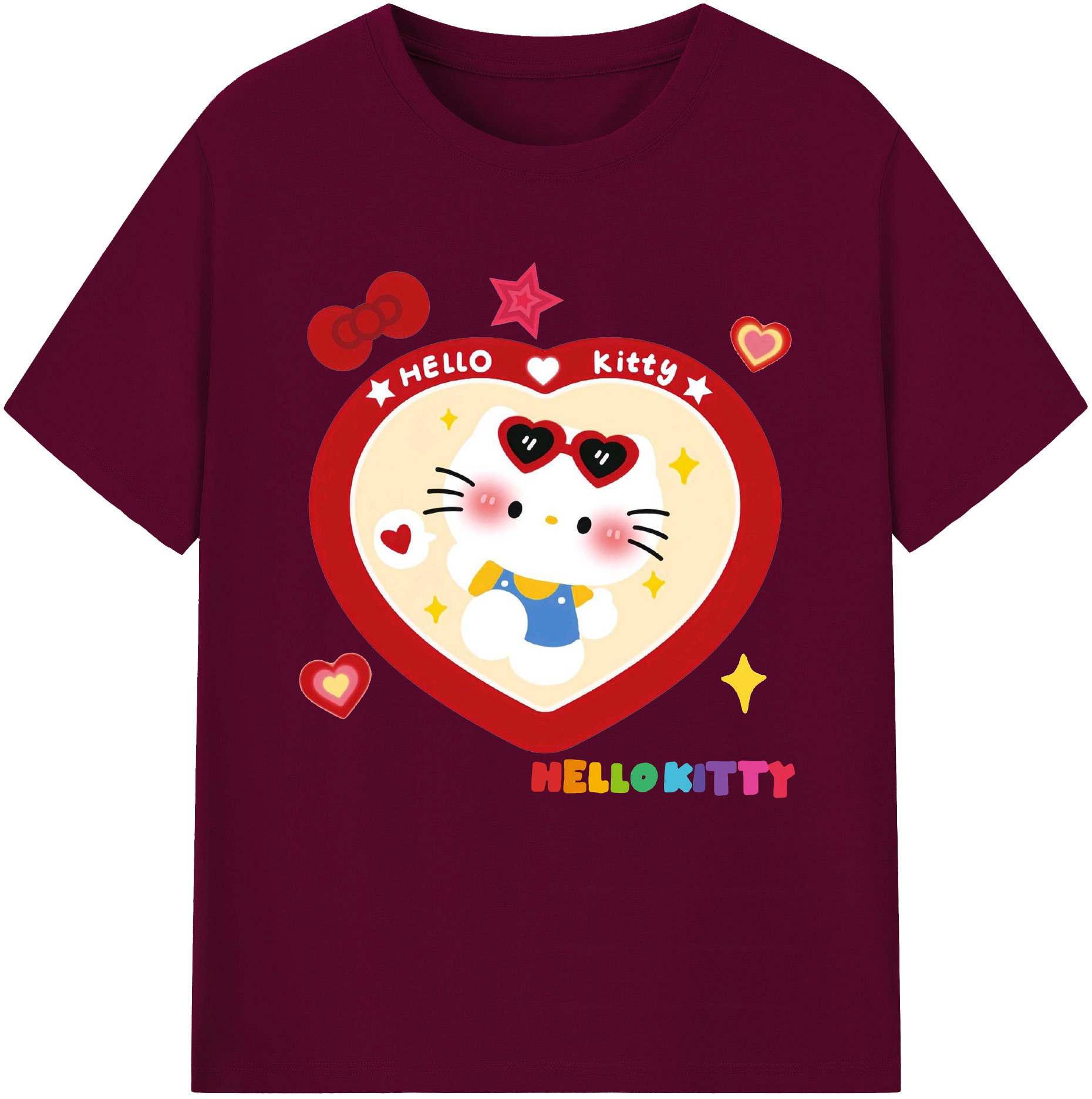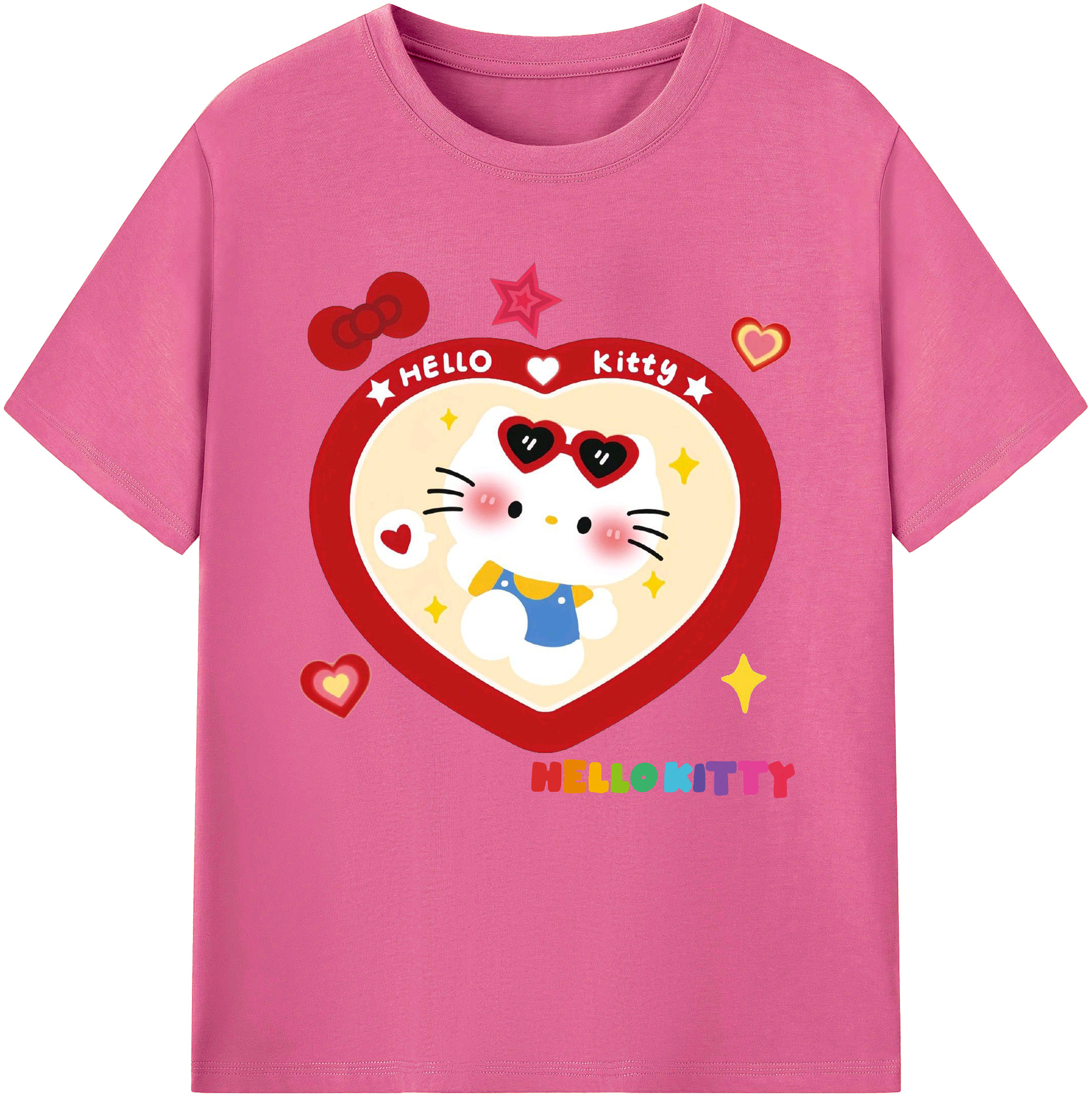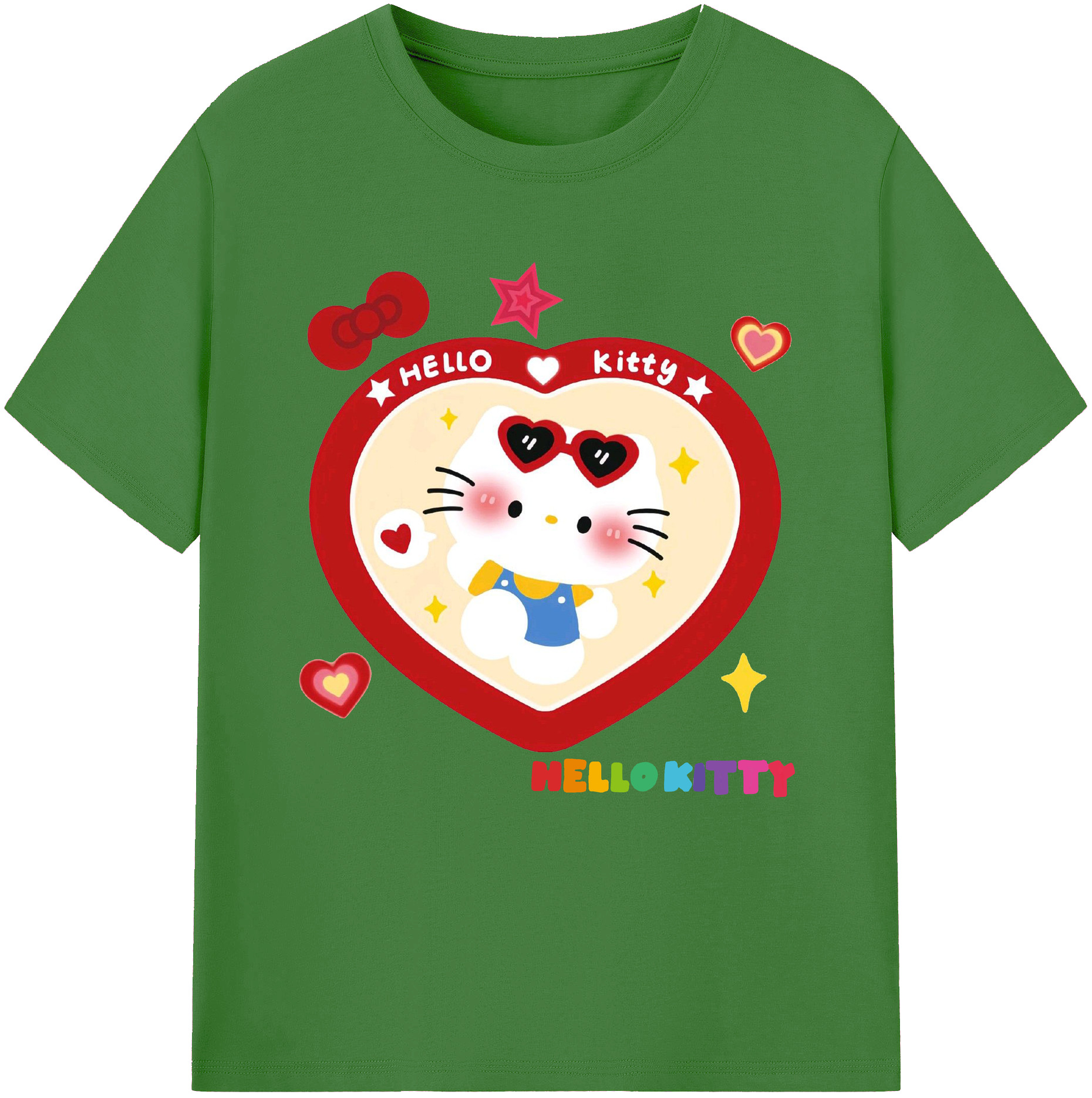 とびきりキュートなハローキティ - レディースカジュアルプリントTシャツ ・ 綿100% ・ クルーネック ・ フロントプリント ・ 柔らかく快適 ・ フィットネス カジュアル 旅行用