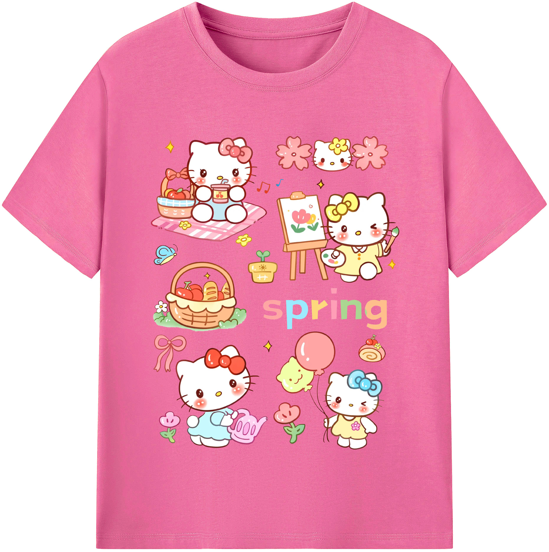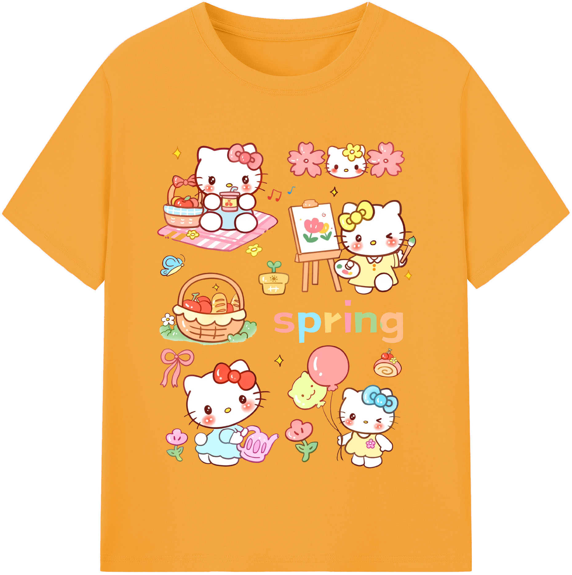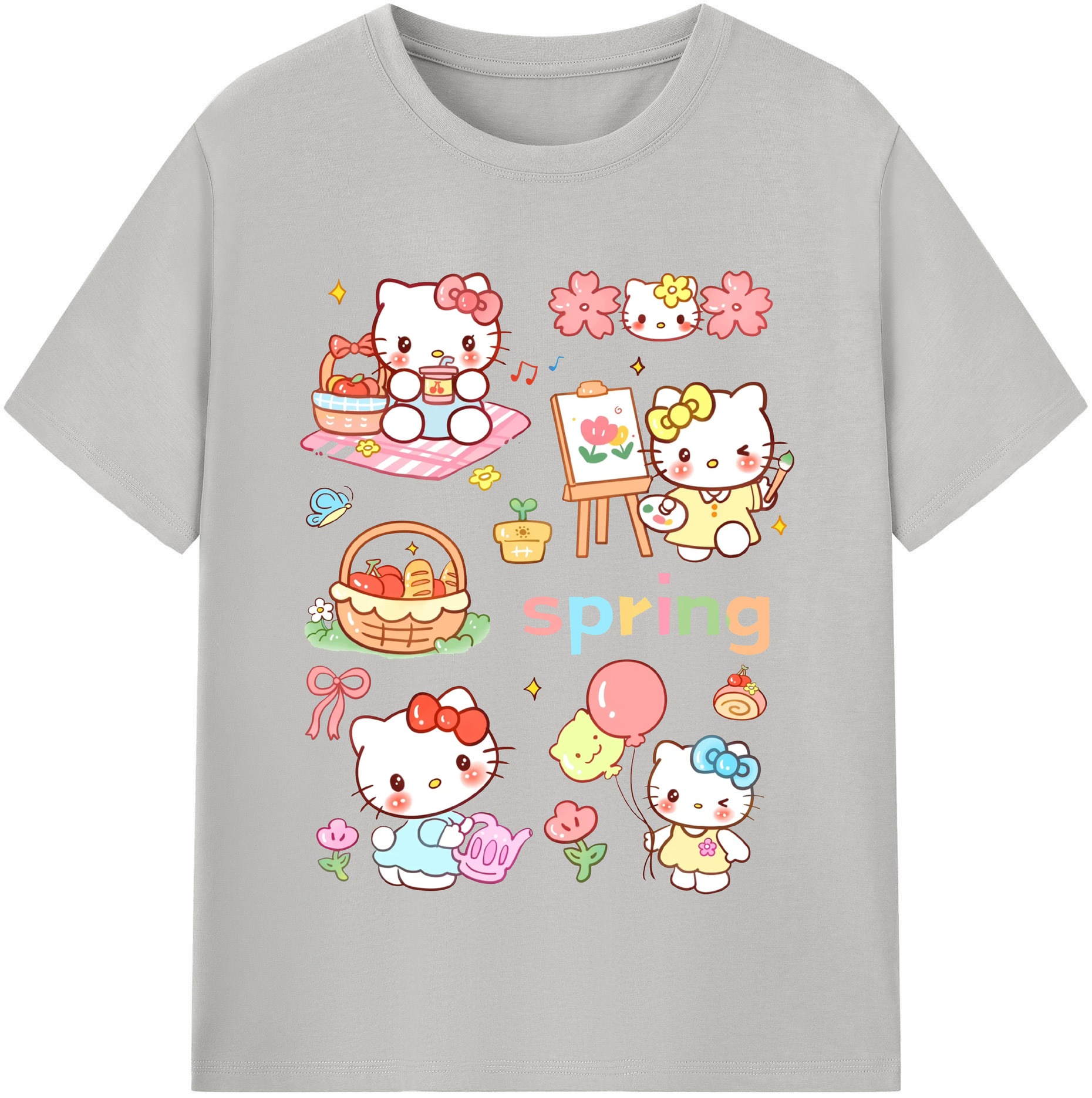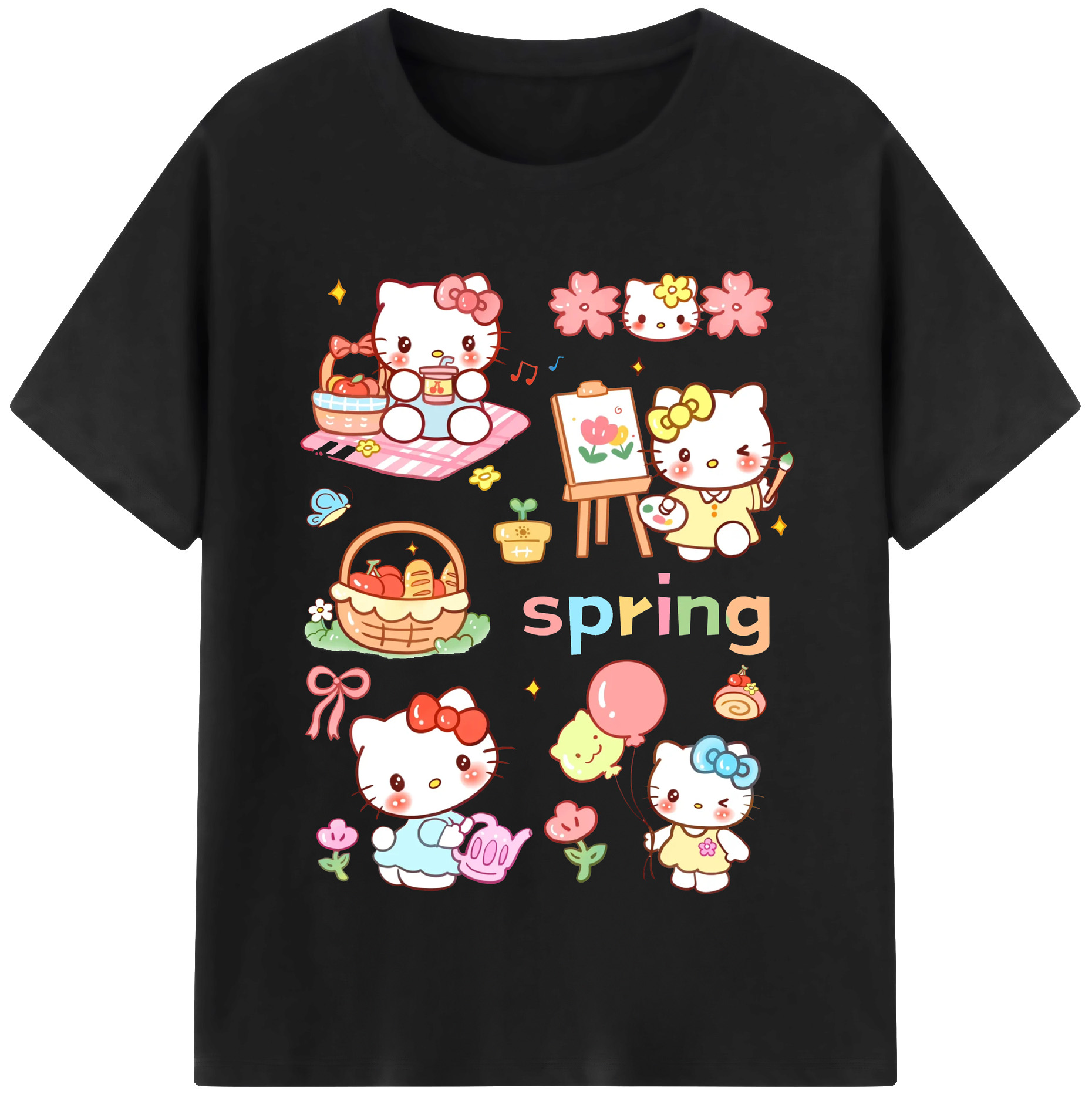 とびきりキュートなハローキティ - レディースカジュアルプリントTシャツ ・ 綿100% ・ クルーネック ・ フロントプリント ・ 柔らかく快適 ・ フィットネス カジュアル 旅行用
