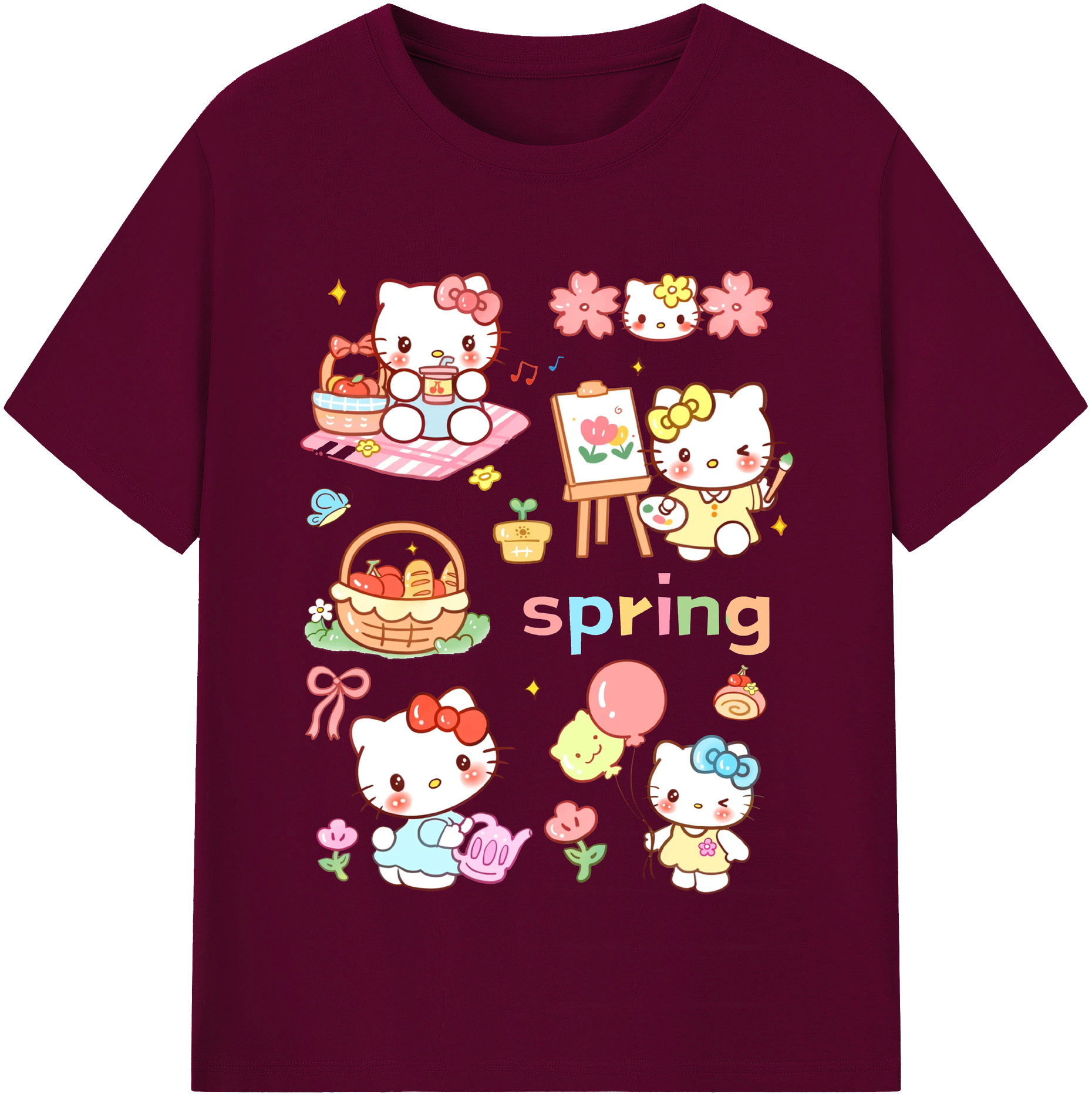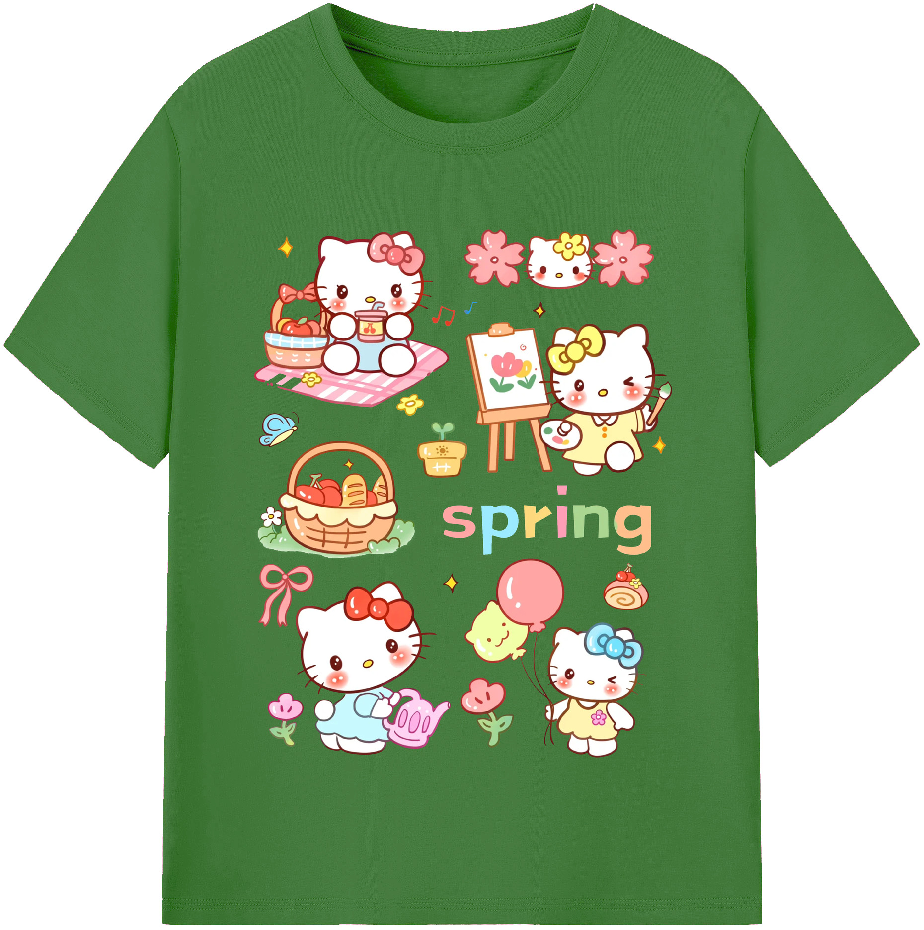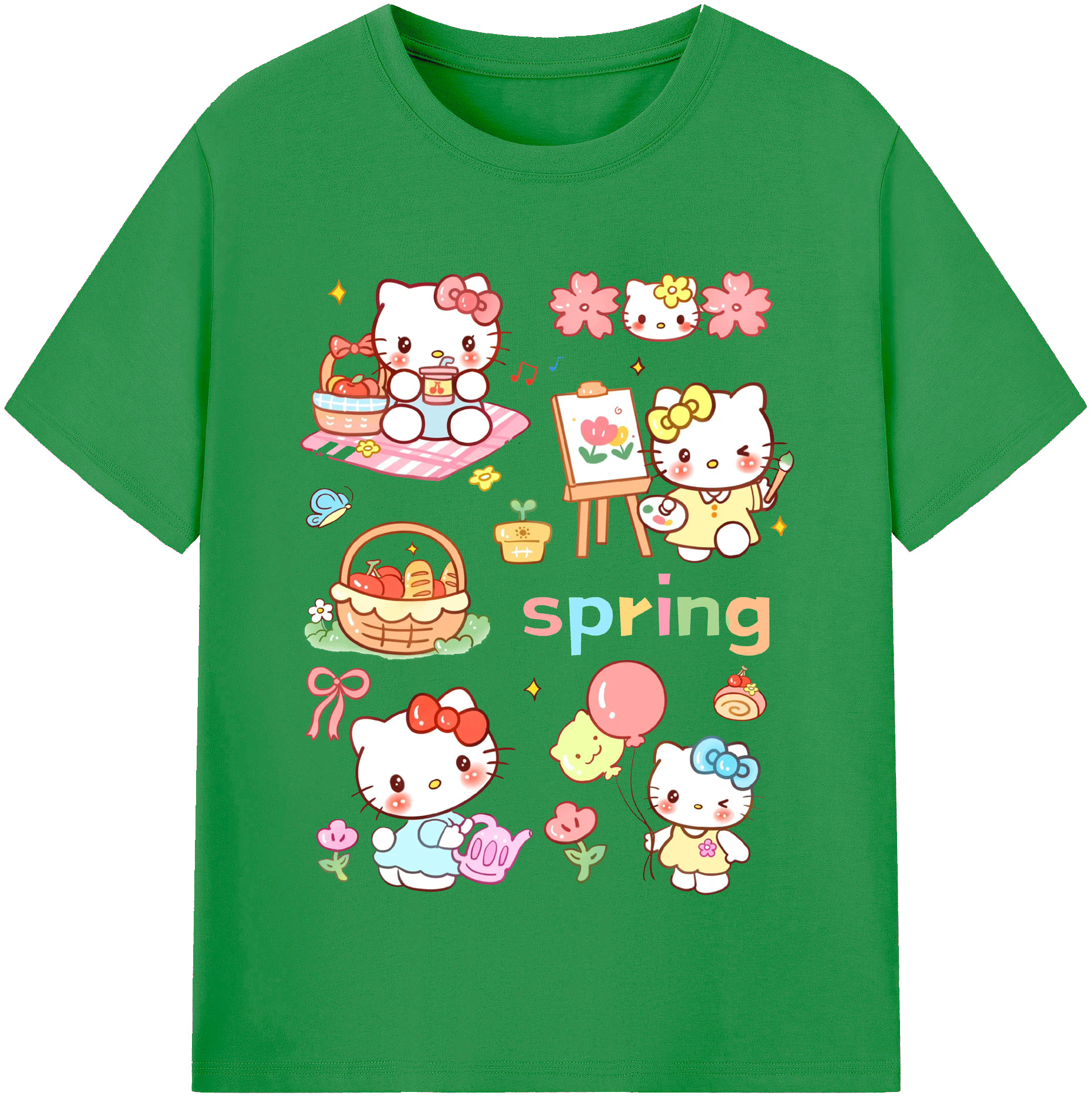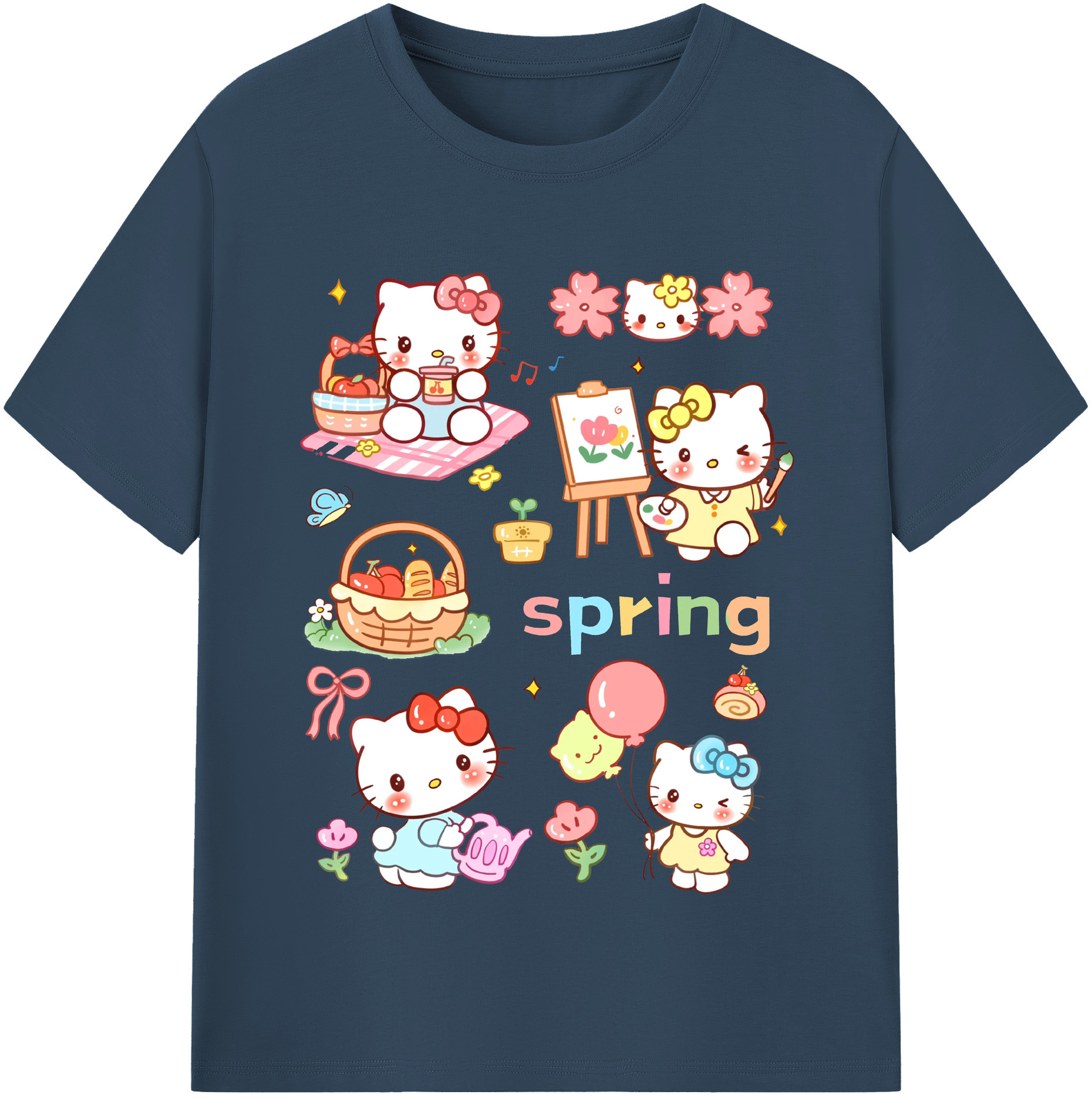 とびきりキュートなハローキティ - レディースカジュアルプリントTシャツ ・ 綿100% ・ クルーネック ・ フロントプリント ・ 柔らかく快適 ・ フィットネス カジュアル 旅行用