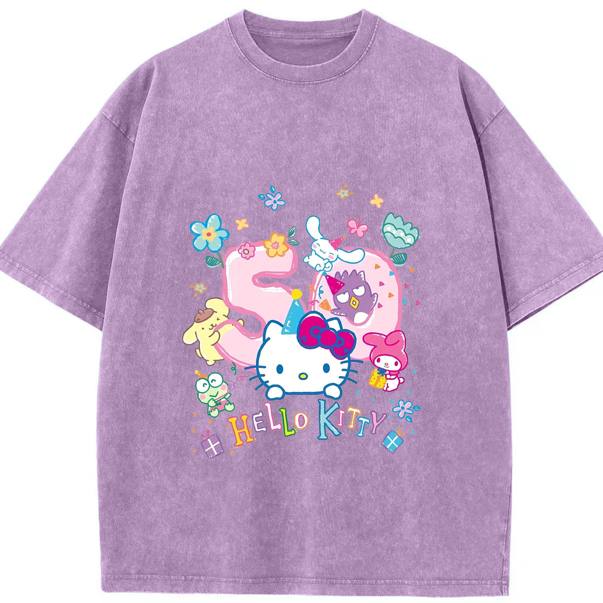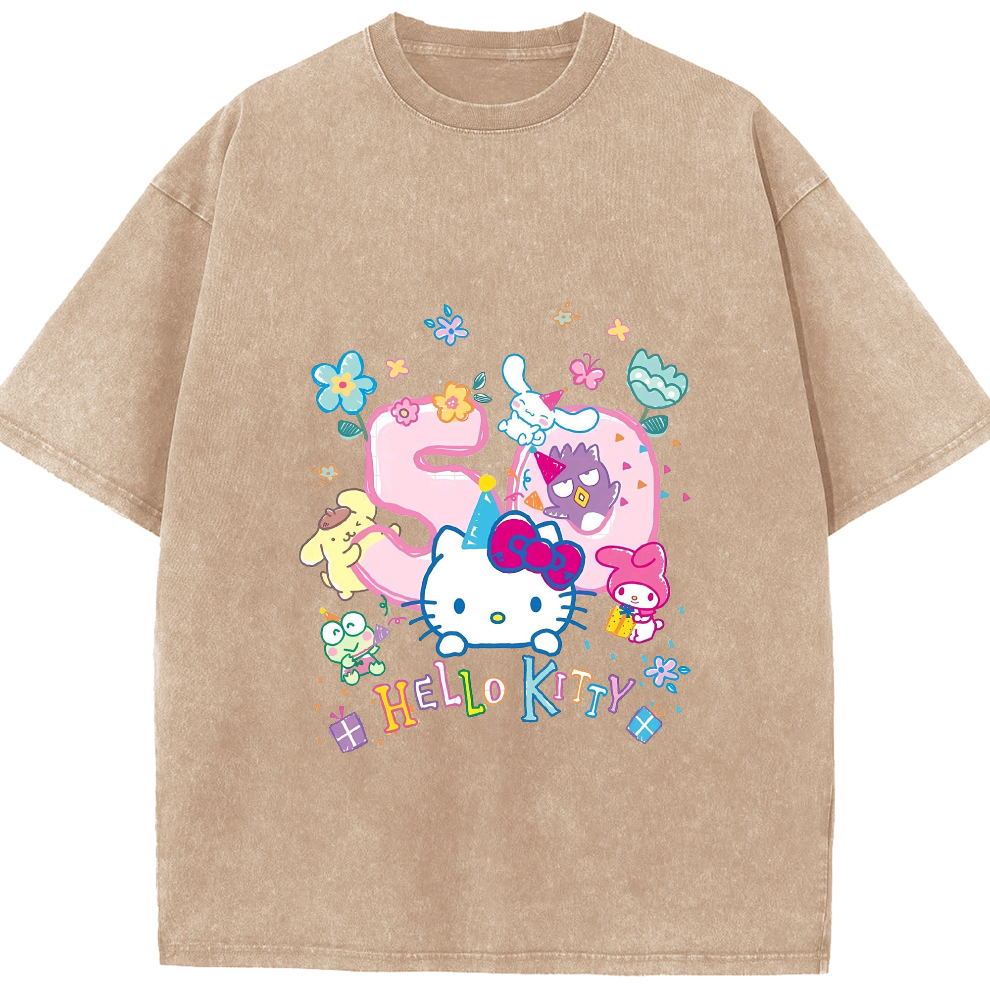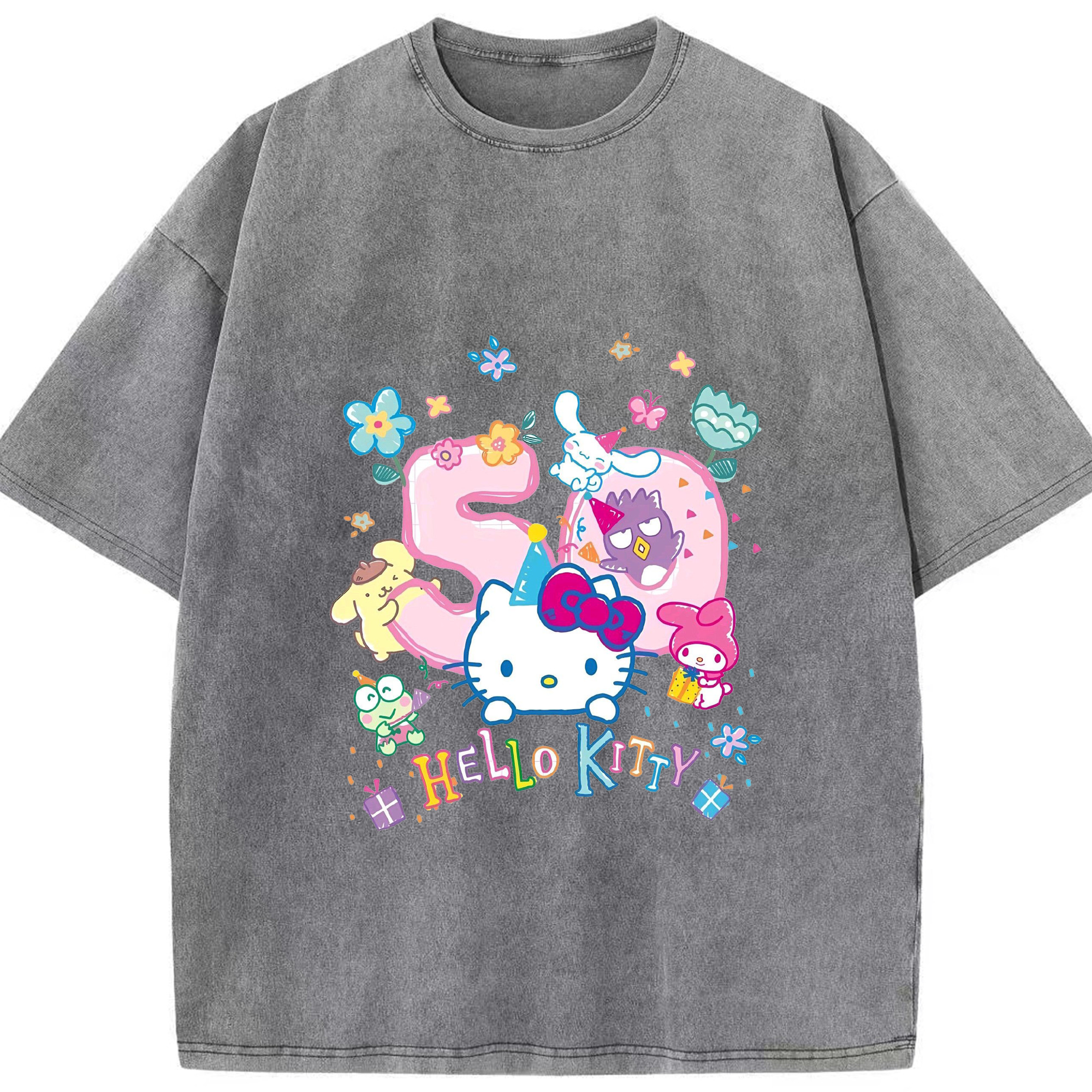 スイート系サンリオ - 綿100% ヴィンテージ風 半袖Tシャツ ・ フロントプリント ・ 柔らか肌触り ・ 通気性 快適 ・ スポーツ カジュアル 外出用