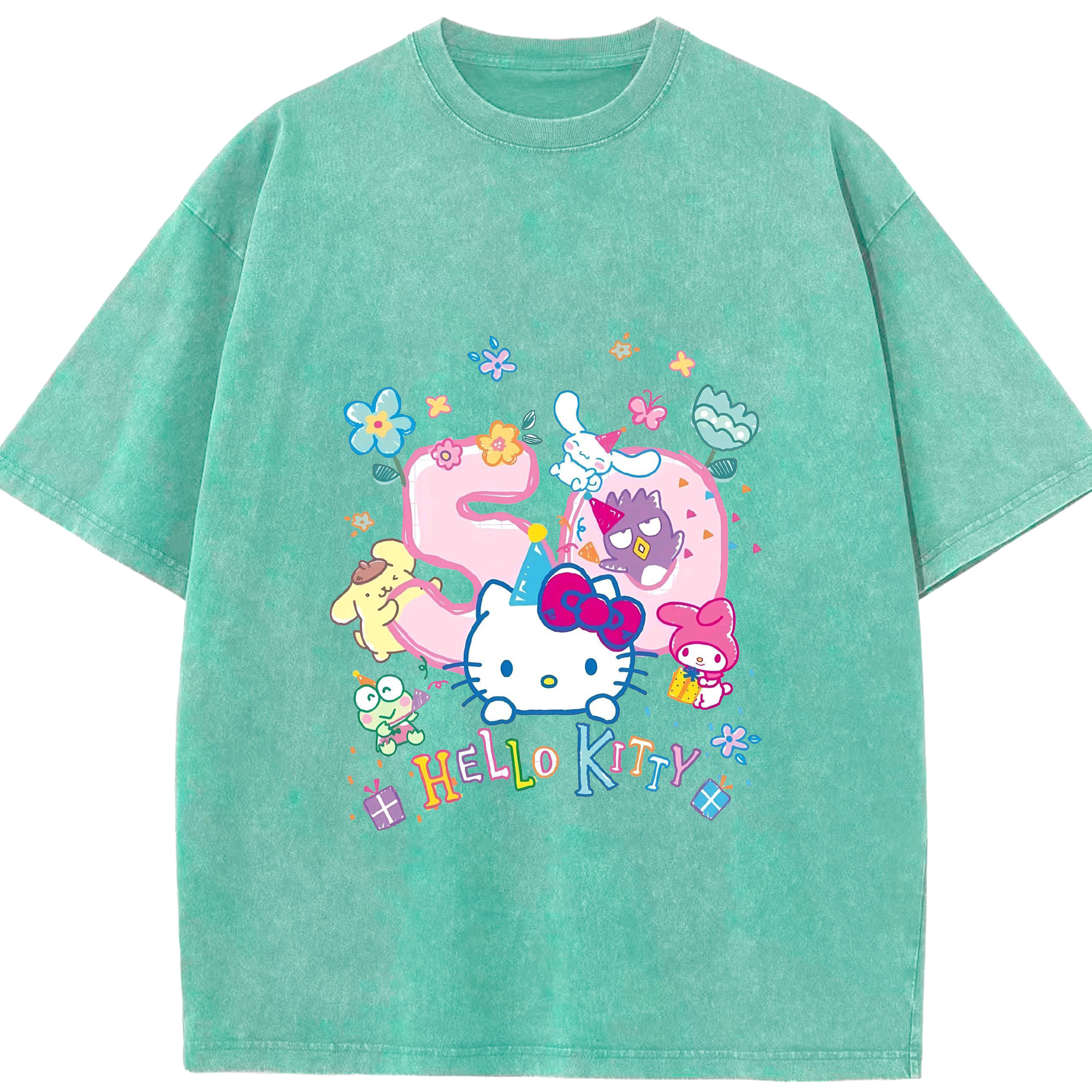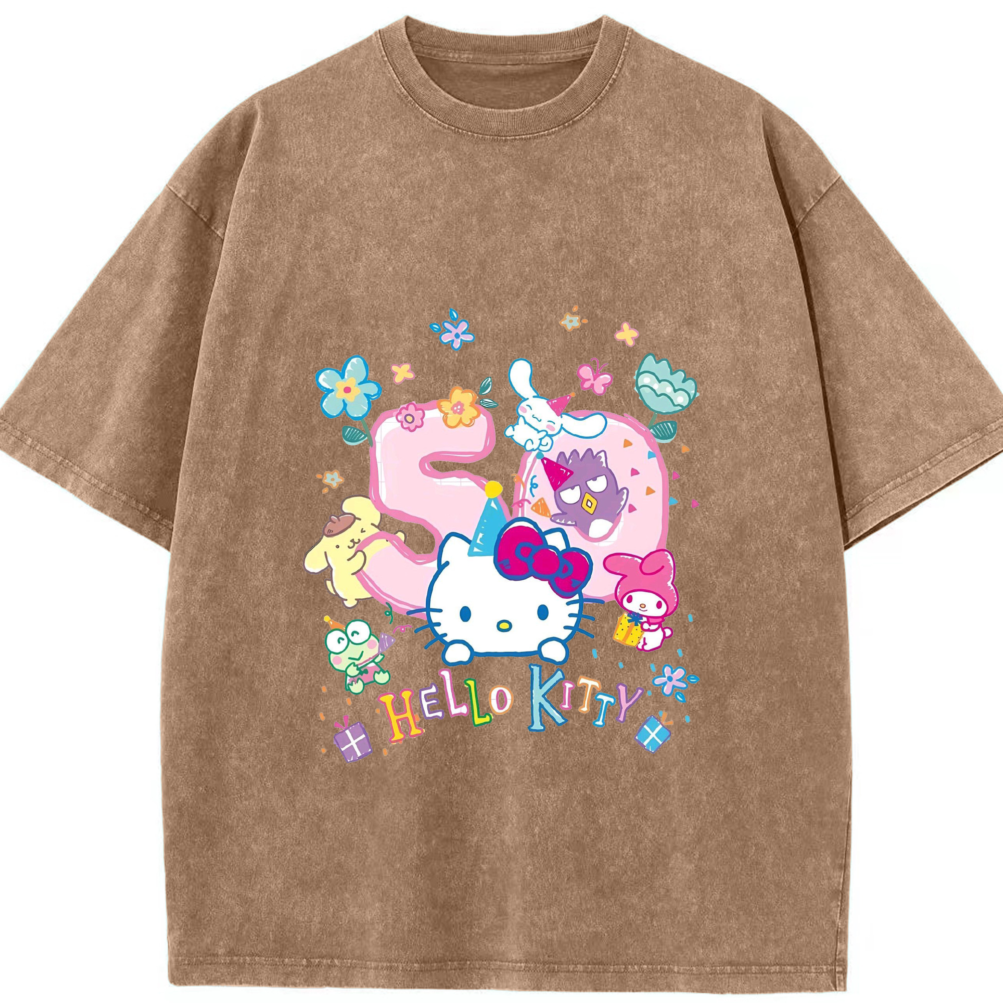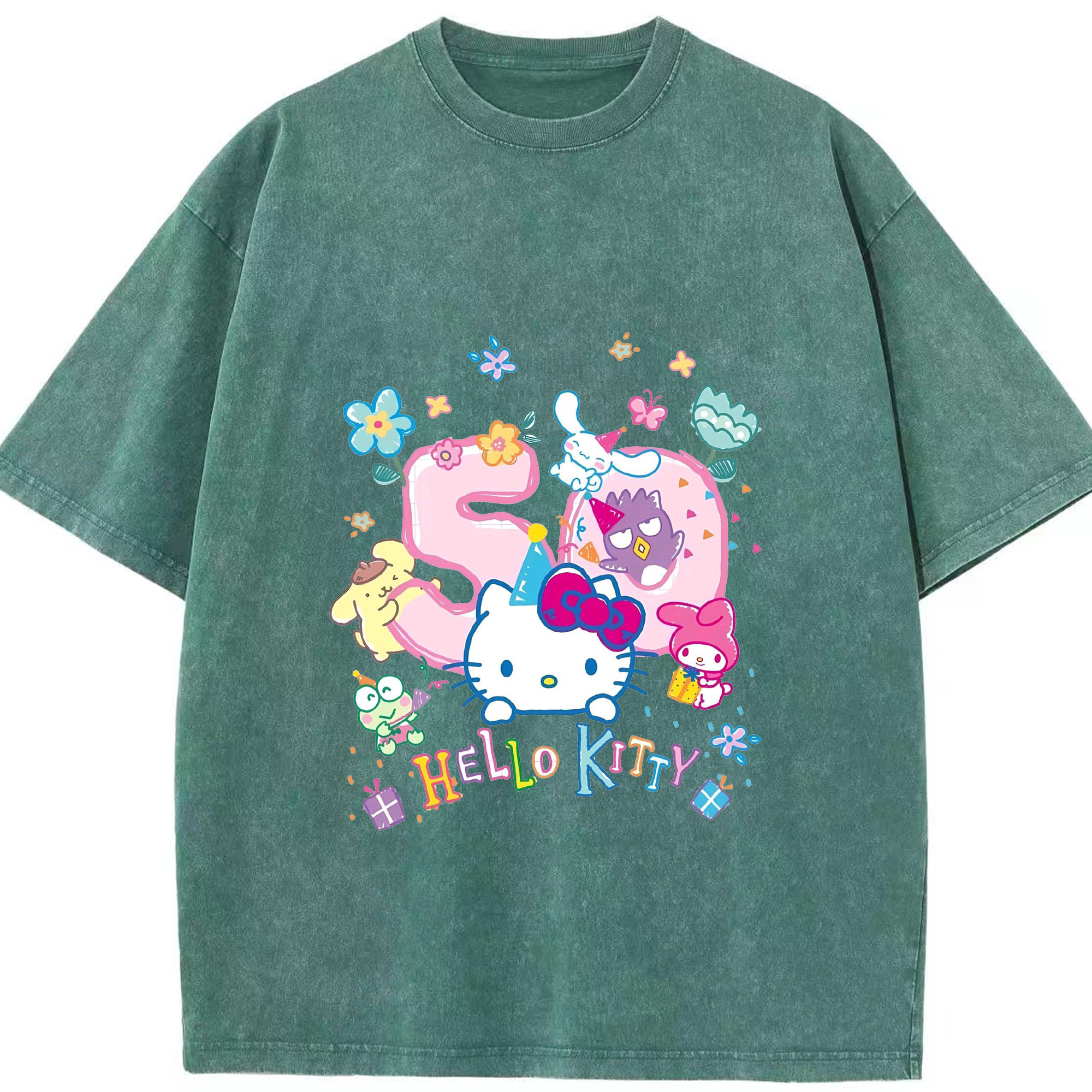 スイート系サンリオ - 綿100% ヴィンテージ風 半袖Tシャツ ・ フロントプリント ・ 柔らか肌触り ・ 通気性 快適 ・ スポーツ カジュアル 外出用