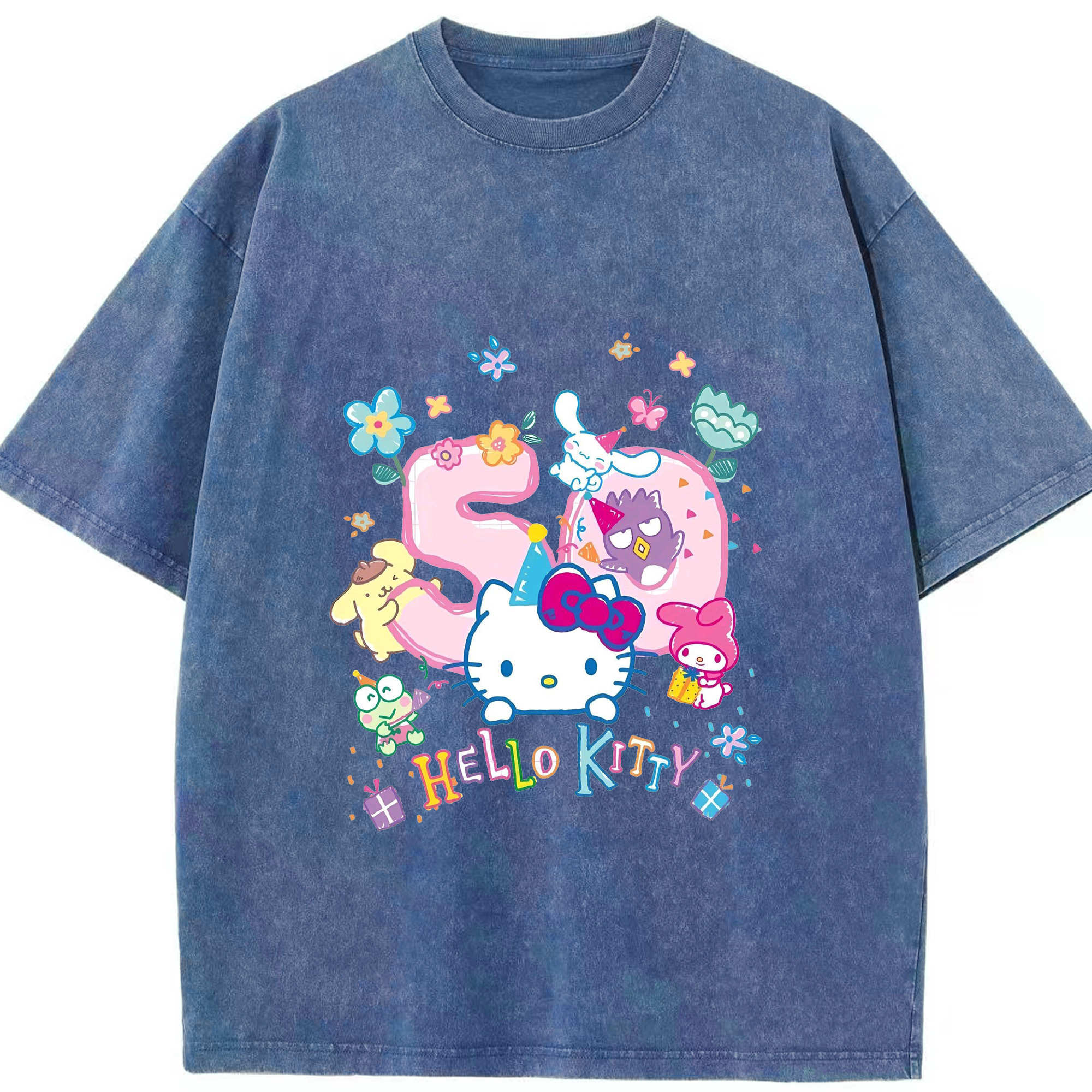 サンリオ - 綿100% ヴィンテージ風 半袖Tシャツ ・ フロントプリント ・ 柔らか肌触り ・ 通気性 快適 ・ スポーツ カジュアル 外出用