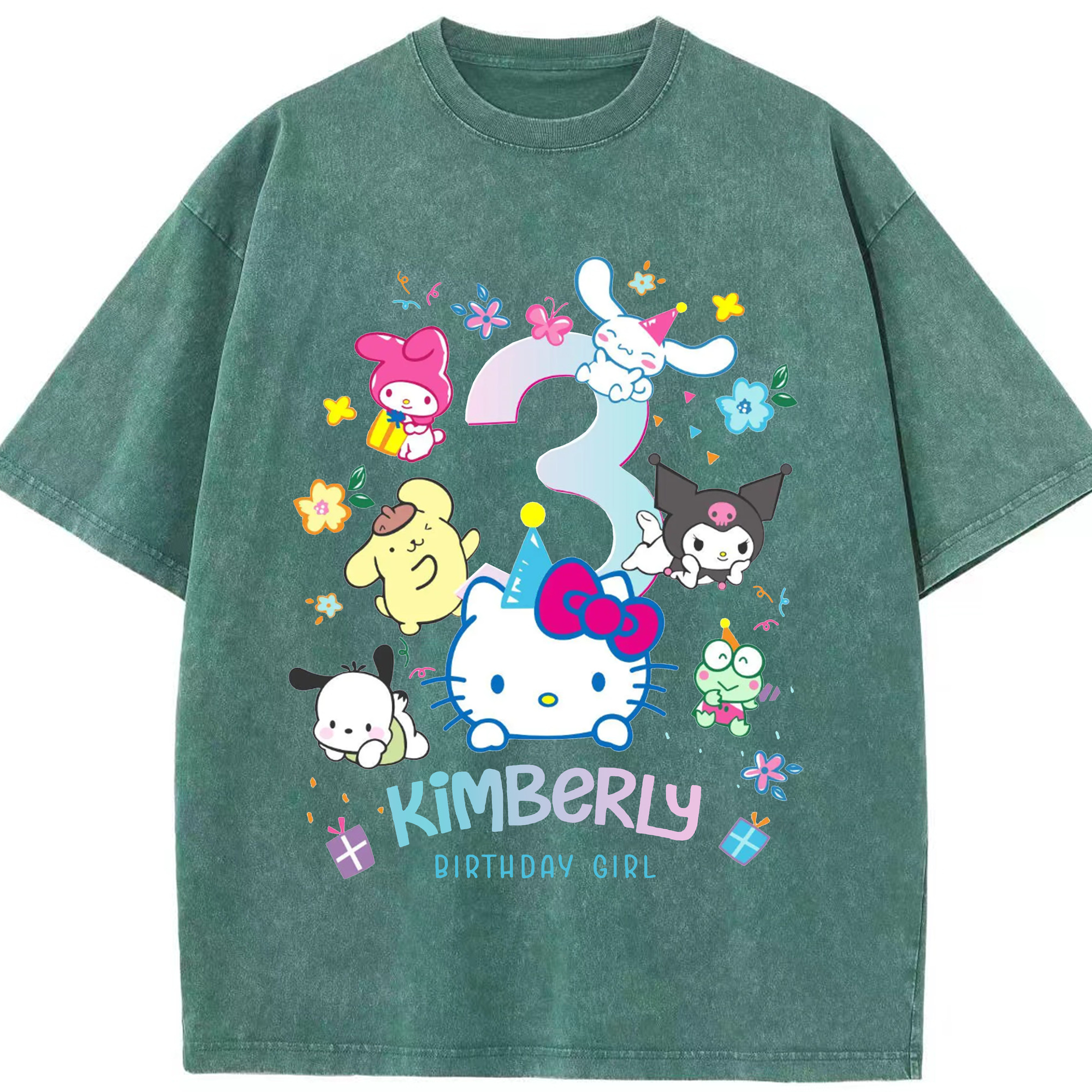キティちゃんとなかまたち大集合♪ - 綿100% ヴィンテージ風 半袖Tシャツ ・ 背面プリント ・ 柔らか肌触り ・ 通気性 快適 ・ スポーツ カジュアル 外出用
