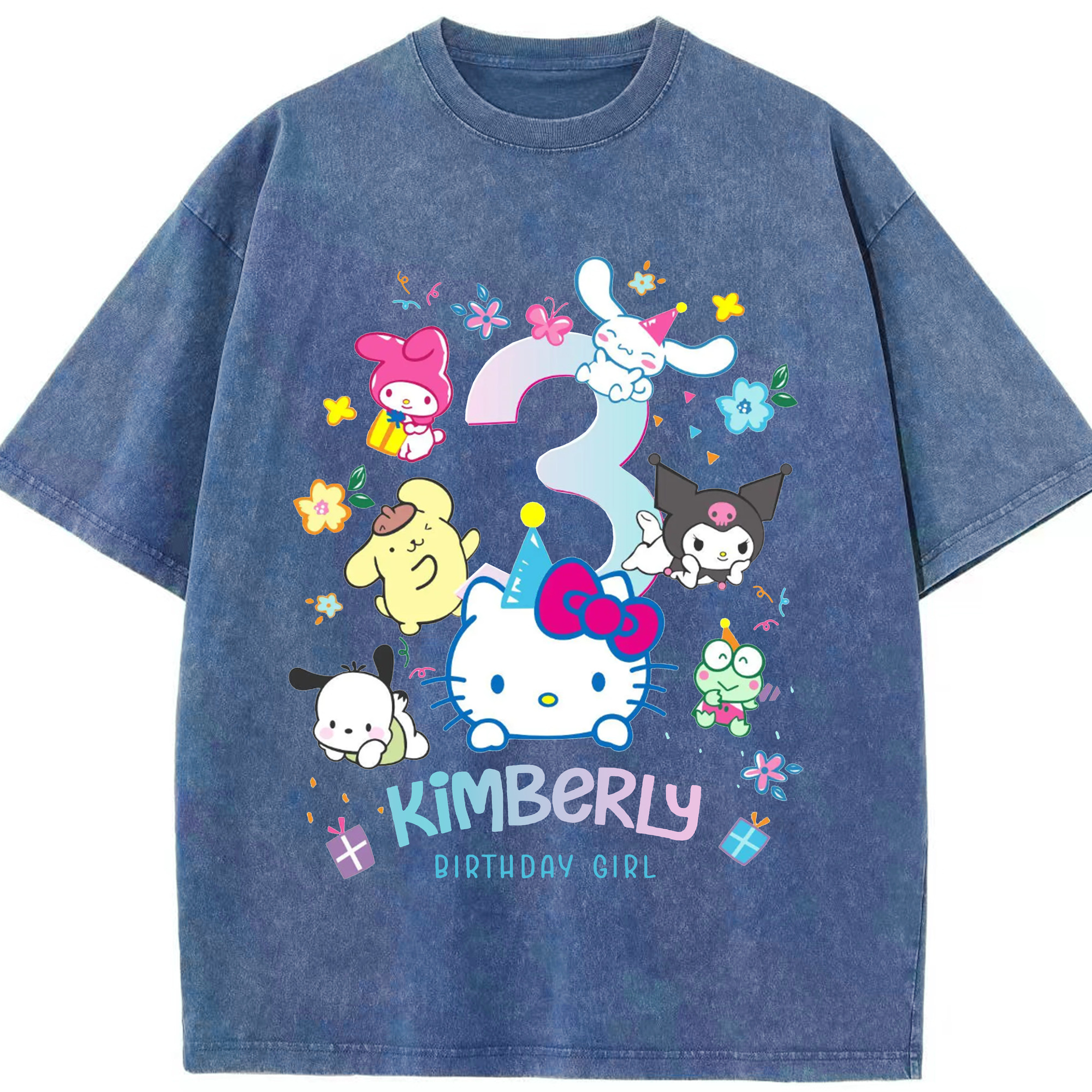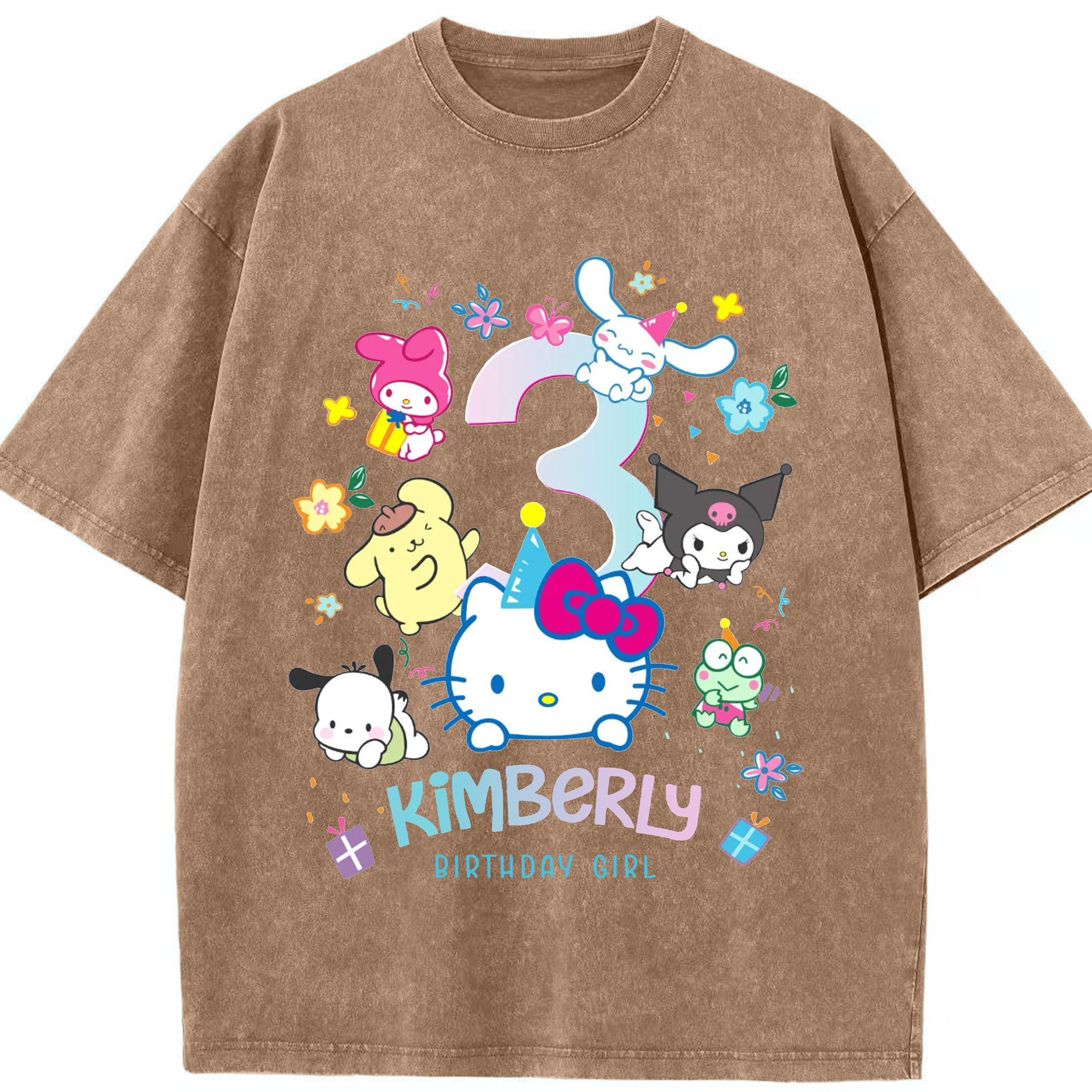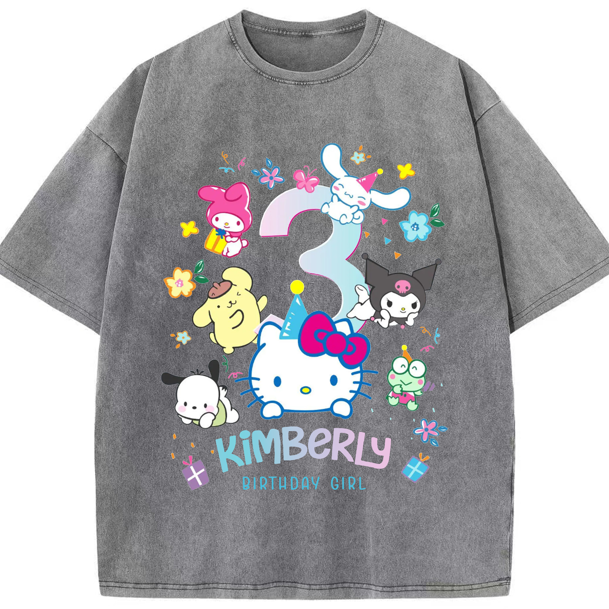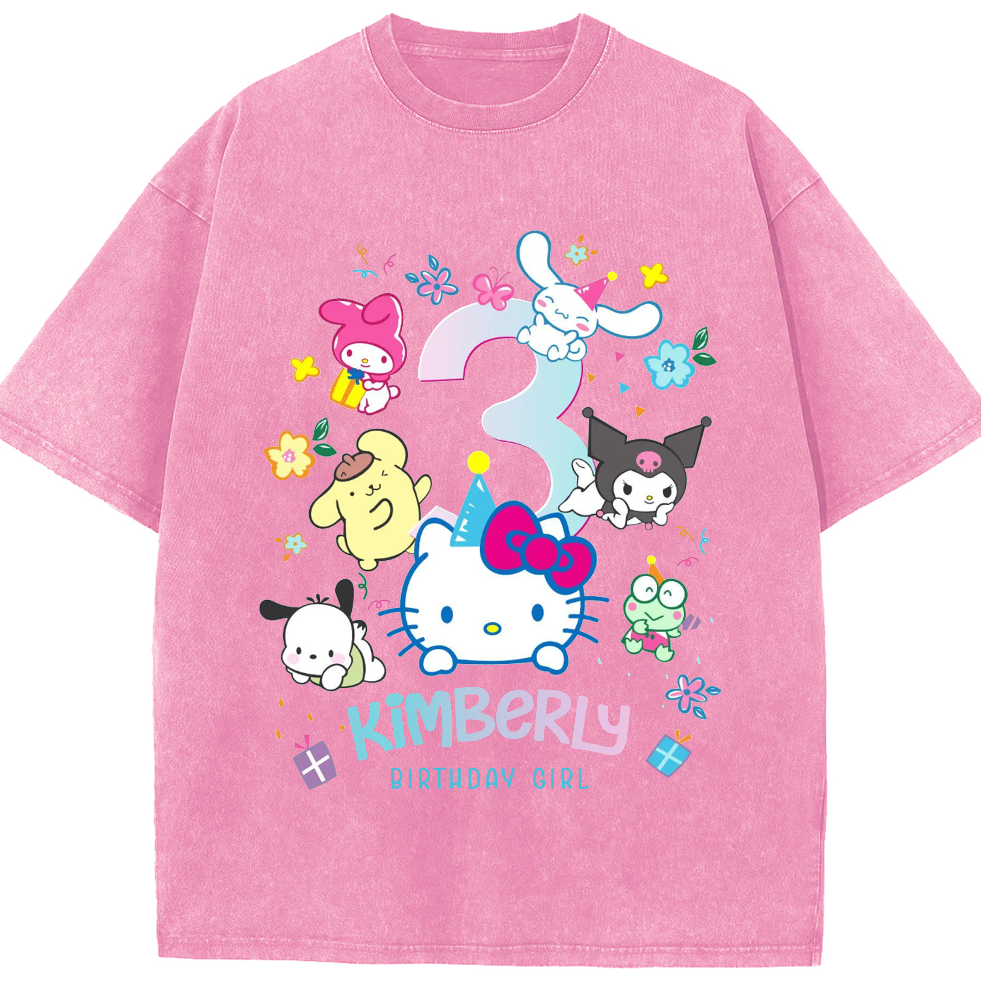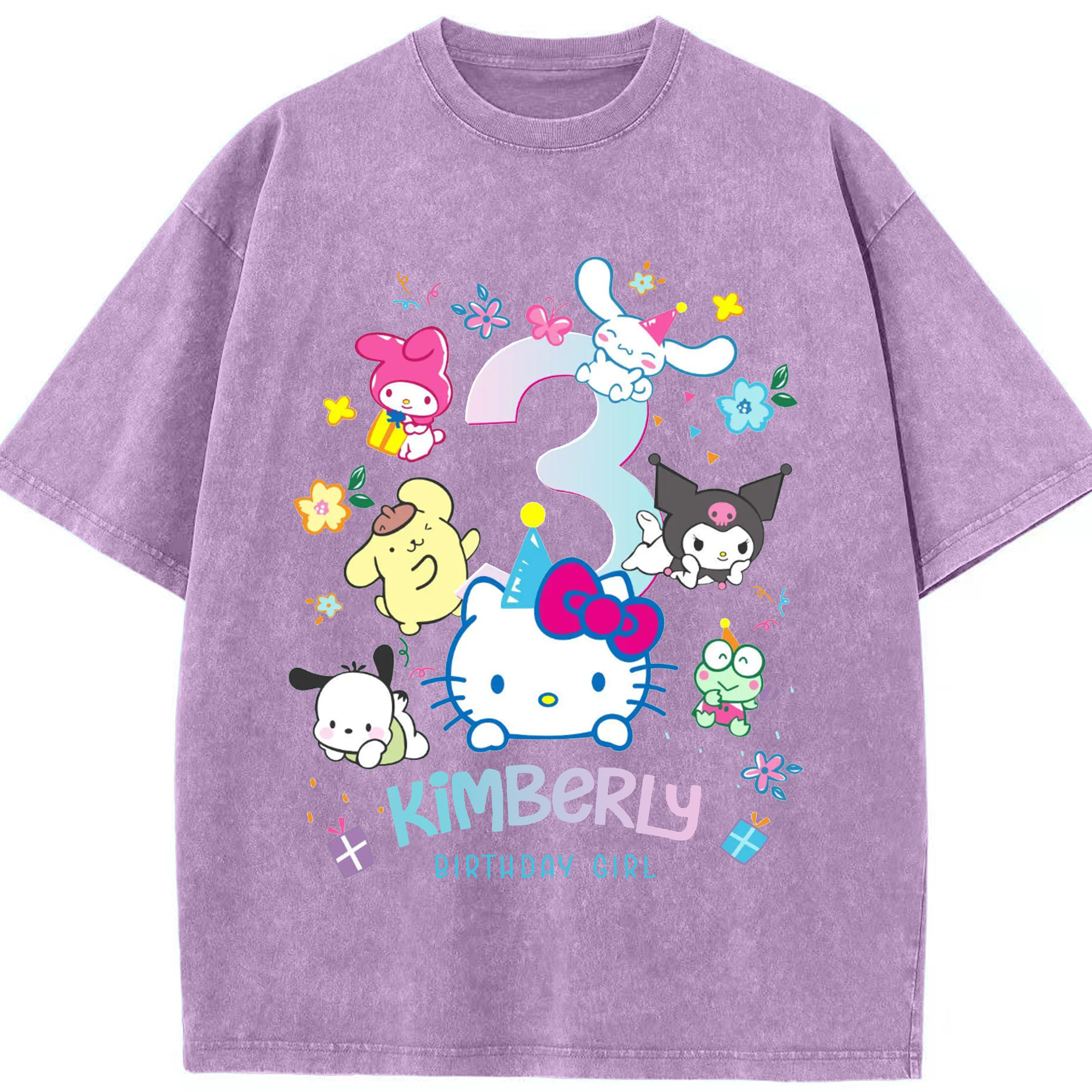 サンリオファミリー - 綿100% ヴィンテージ風 半袖Tシャツ ・ フロントプリント ・ 柔らか肌触り ・ 通気性 快適 ・ スポーツ カジュアル 外出用