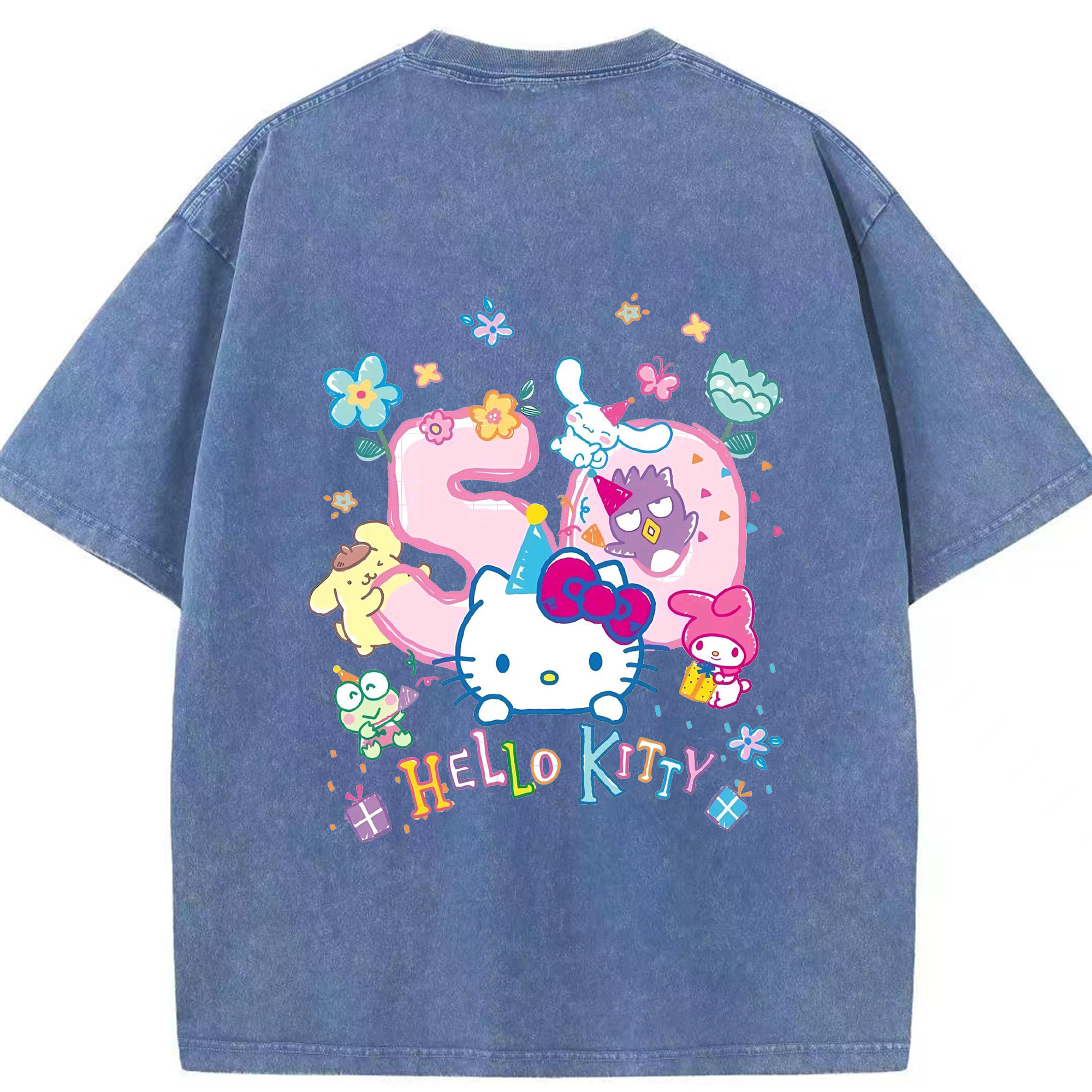 サンリオハローキティ - 綿100% ヴィンテージ風 半袖Tシャツ ・ 背面プリント ・ 柔らか肌触り ・ 通気性 快適 ・ スポーツ カジュアル 外出用