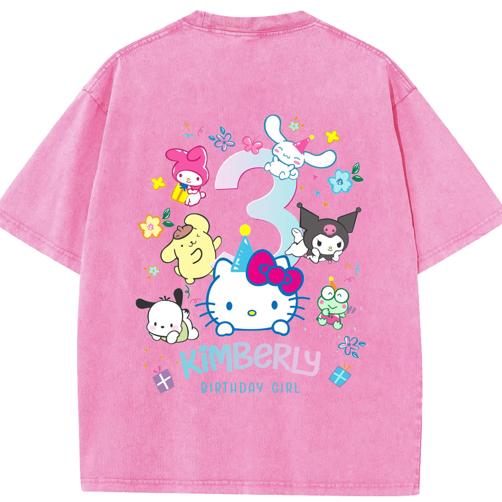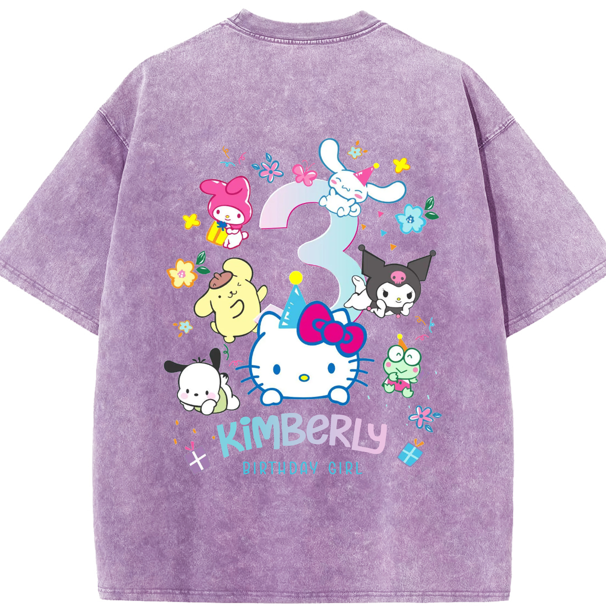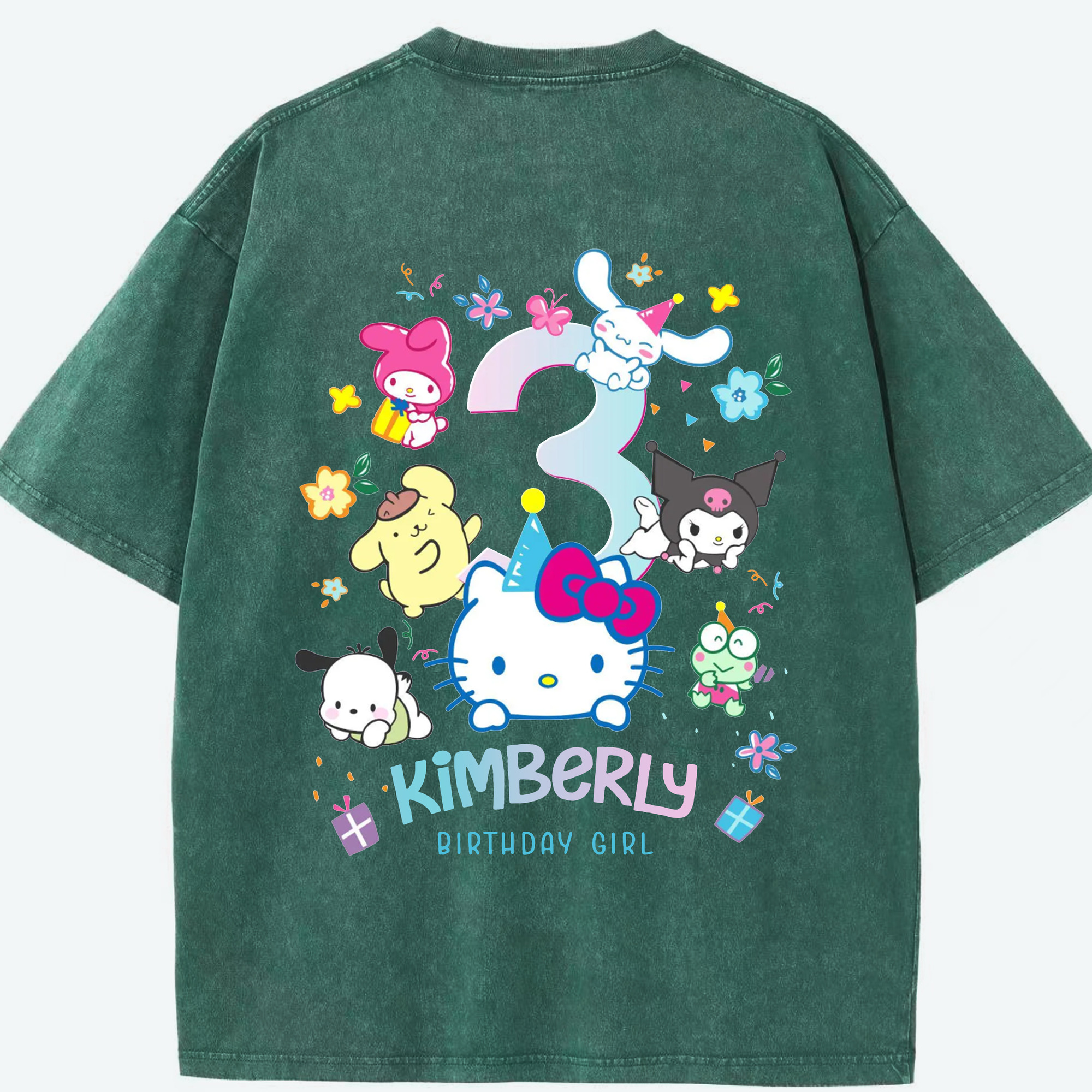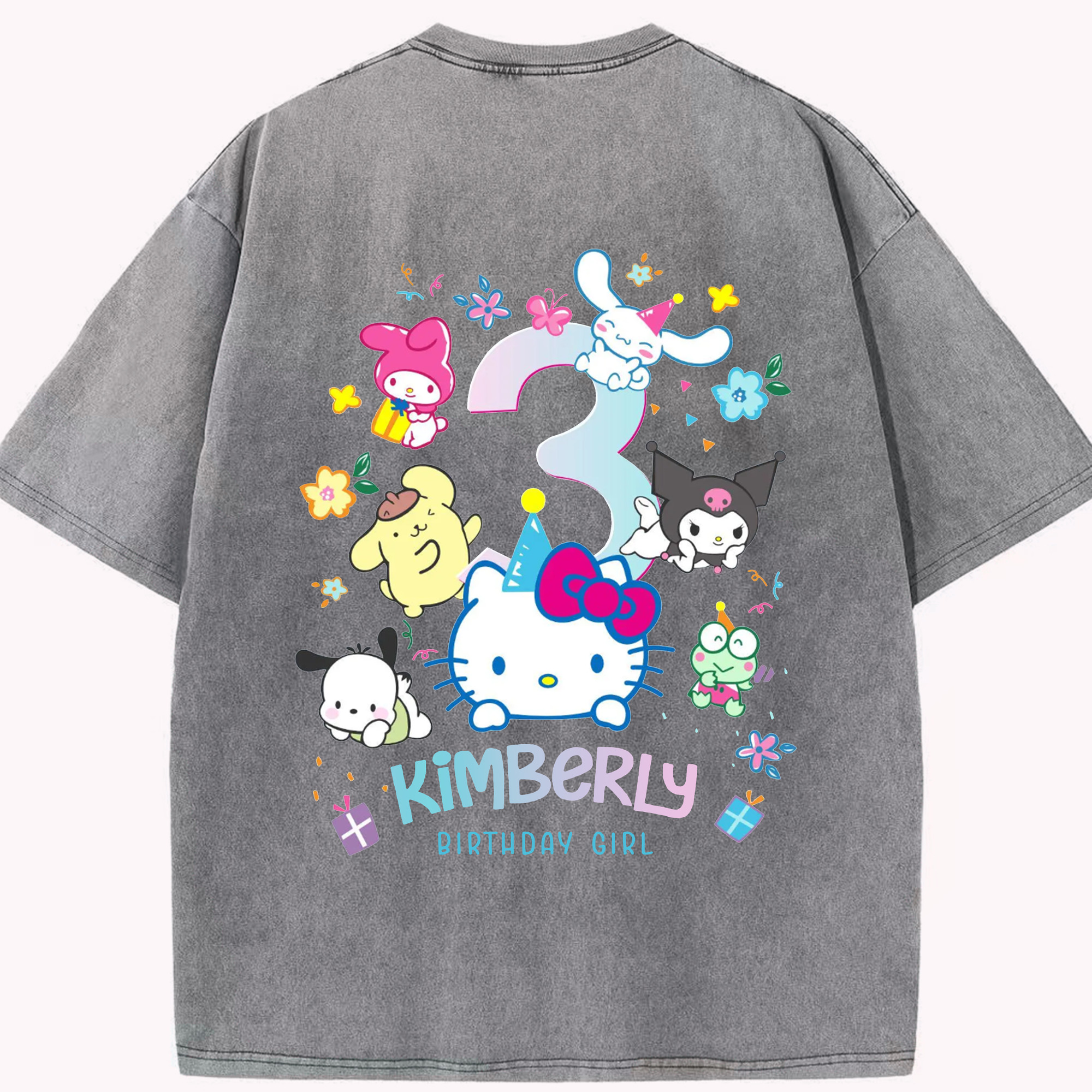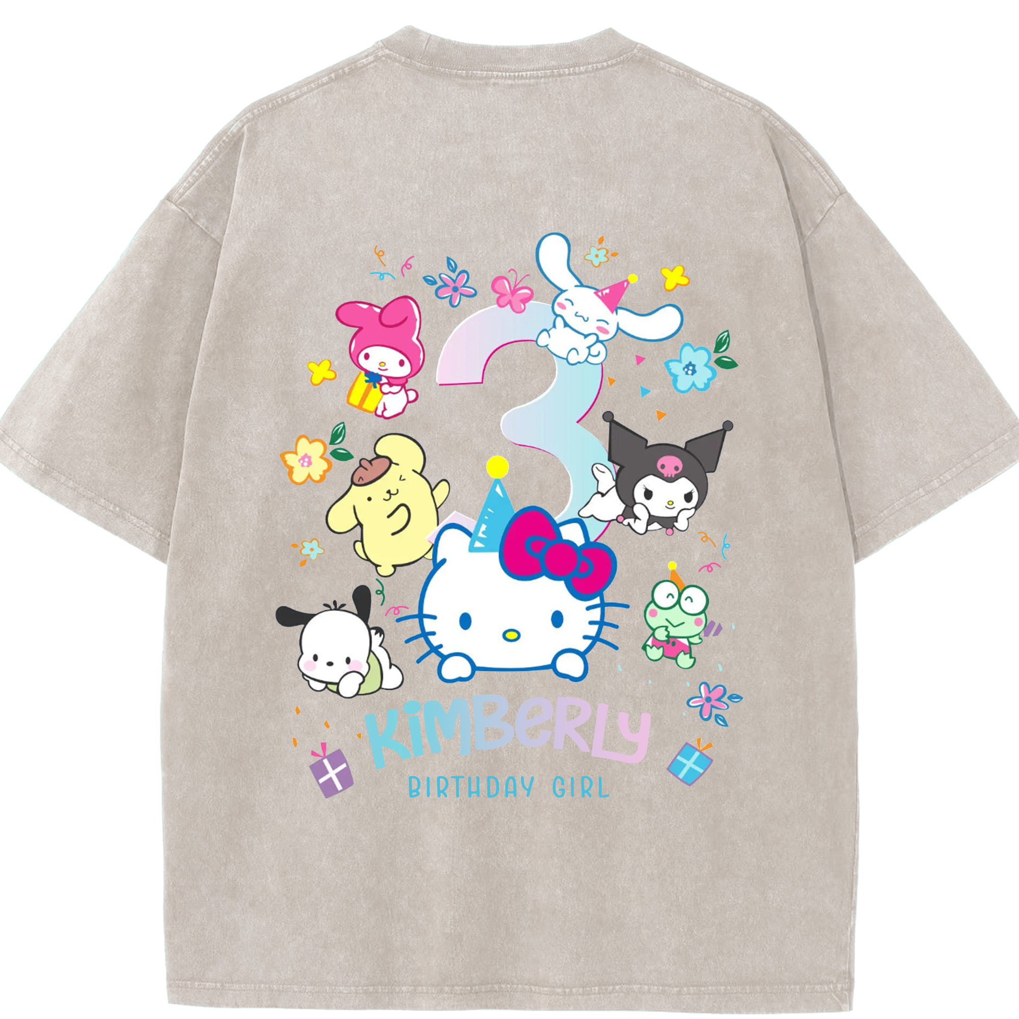 サンリオファミリー新作 - 綿100% ヴィンテージ風 半袖Tシャツ ・ 背面プリント ・ 柔らか肌触り ・ 通気性 快適 ・ スポーツ カジュアル 外出用