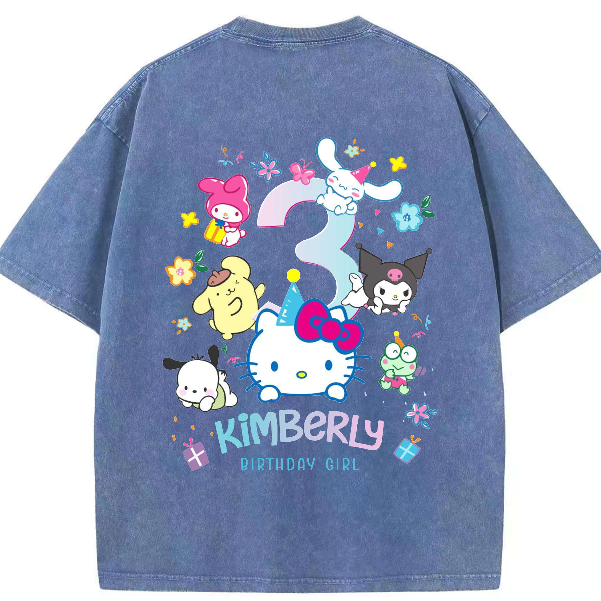 キティちゃんとなかまたち大集合♪ - 綿100% ヴィンテージ風 半袖Tシャツ ・ フロントプリント ・ 柔らか肌触り ・ 通気性 快適 ・ スポーツ カジュアル 外出用